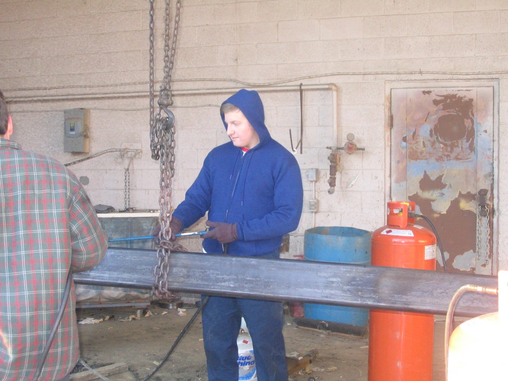 The cold got here quick and it barely gets above freezing today. This building has radiant heat so it is much more comfortable than the old Shop but it still gets cold every time a big door gets opened. We finish some work for two of our biggest regulars, Ackerman and Baynes and Miscellaneous Metals, and some angles that will be used for constructing a Diamond Auto Spa in Winchester, VA. I’m not sure what an auto spa is but it sounds expensive.