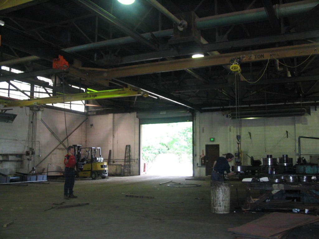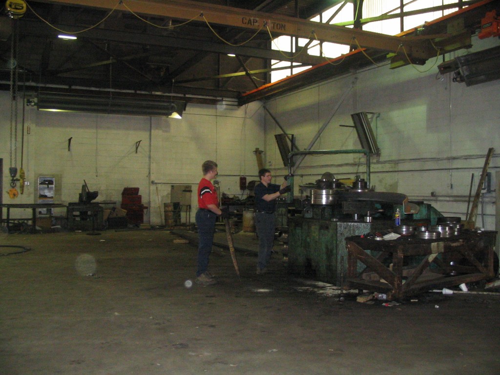 We’ve been back to work for nearly a week in our new building. This will be our first full year at 8100 Lynhurst Road and so far, the reviews have been good. Having everything on one floor, the proper overhead crane system and easier access for trucks has all contributed to a more efficient operation. Of course, I also like that we’re just a few minutes from my house. The Shop has a couple of weeks of work on the books to start the year. Today a job is picked up for the Army Corps of Engineers. The order was for several large pipe elbows for a repair at the Washington Aqueduct. We also roll some angles, some rods and a tight pipe coil.
