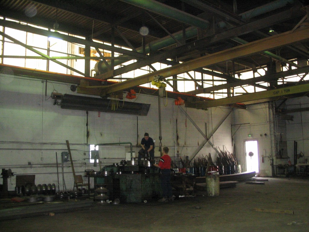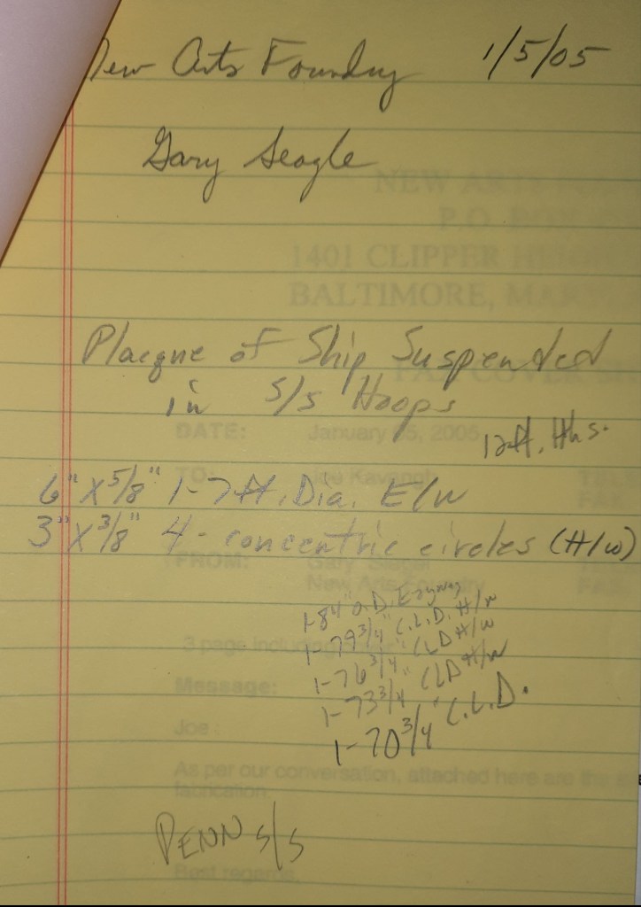 I stand at the open front garage door and stare out. It’s not the same view as the corner of Central and Pratt but I see traffic going by on Old North Point Road. I can hear the sounds of industry from our neighbors Titan Contracting. It’s different but familiar. I’m feeling better about A.J. He is walking on his own now. He’s a little unsteady but he’s walking. The Shop has been very busy since the guys got back from vacation. The crew finishes some brass pieces for A.K. Metal and a number of big structural items for some of our fabrication customers.