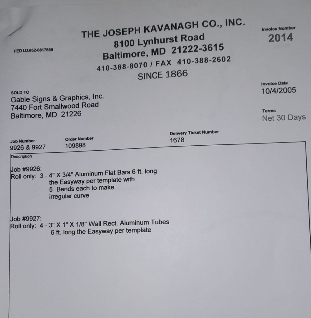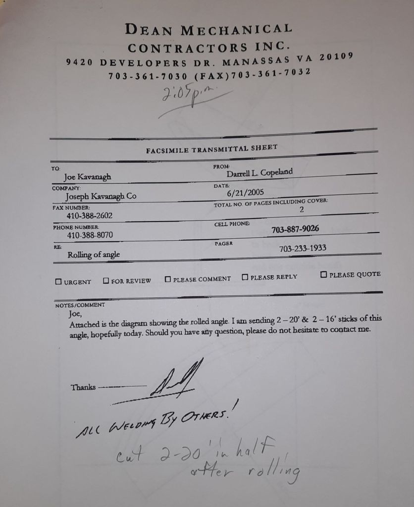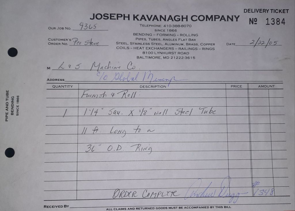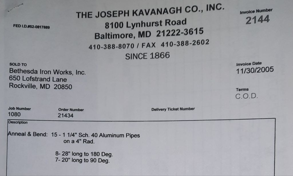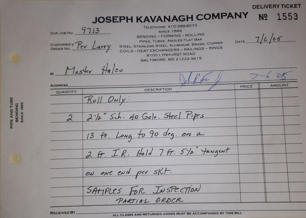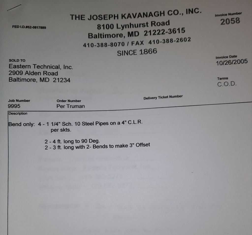I sit at my desk and check for emails. I have a few. The website with emails is a success to me. The biggest positive is customers can send me a drawing or a picture or even a rendering. Being able to see any version of what the customer wants is a great help to my job. It’s like getting a fax only faster. I can decide if it’s something we should bid in a matter of moments. The items we clearly can’t do can be dismissed with a polite reply. Most of my dealing with vendors and buyers is via the phone but I think that will change. The internet will change that but we still have to bend and roll. Do our jobs. The Shop rolls along with more channels for the Bureau of Engraving and Printing, some tubes for a ship repair, pipes for the Hagerstown Wastewater Treatment Plant and some pool parts for Five Oaks Swim Club.