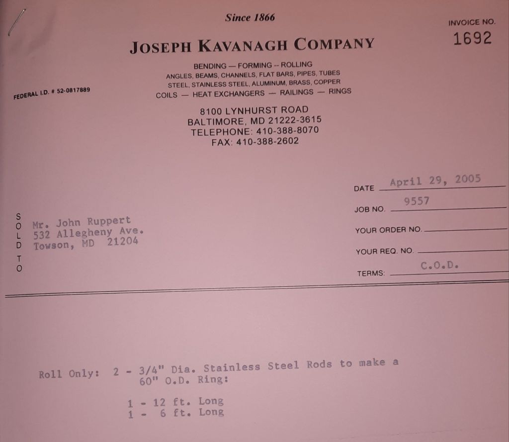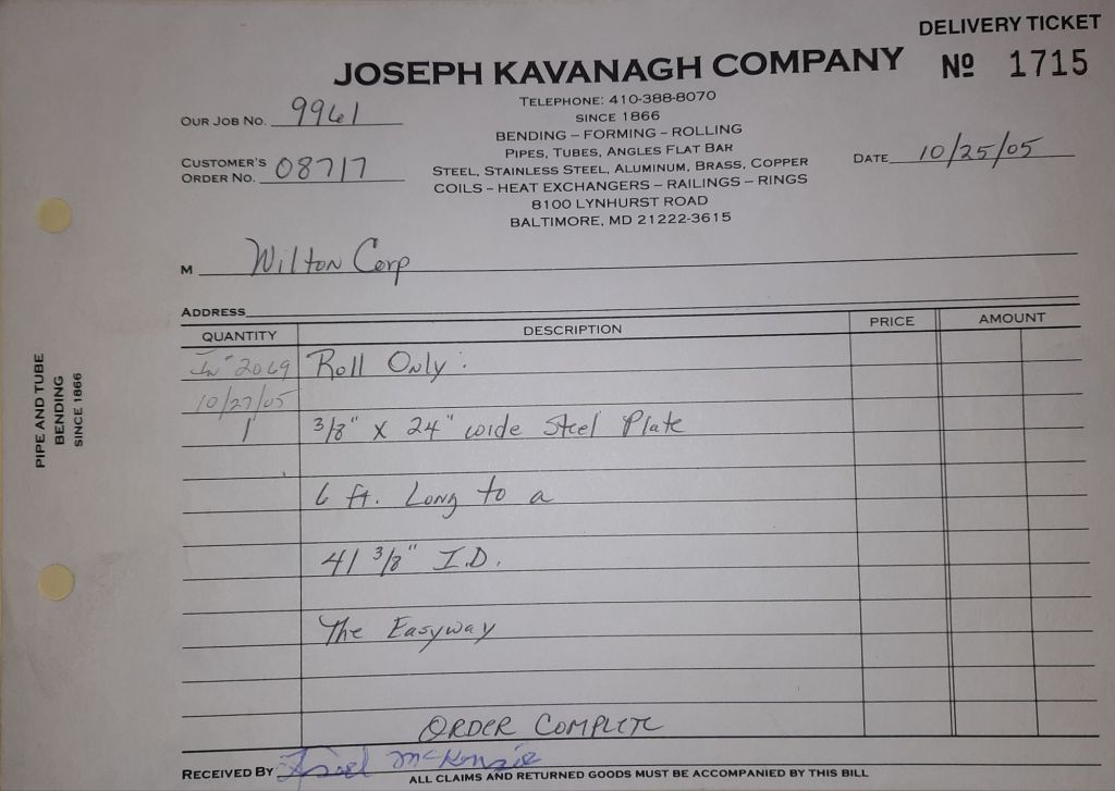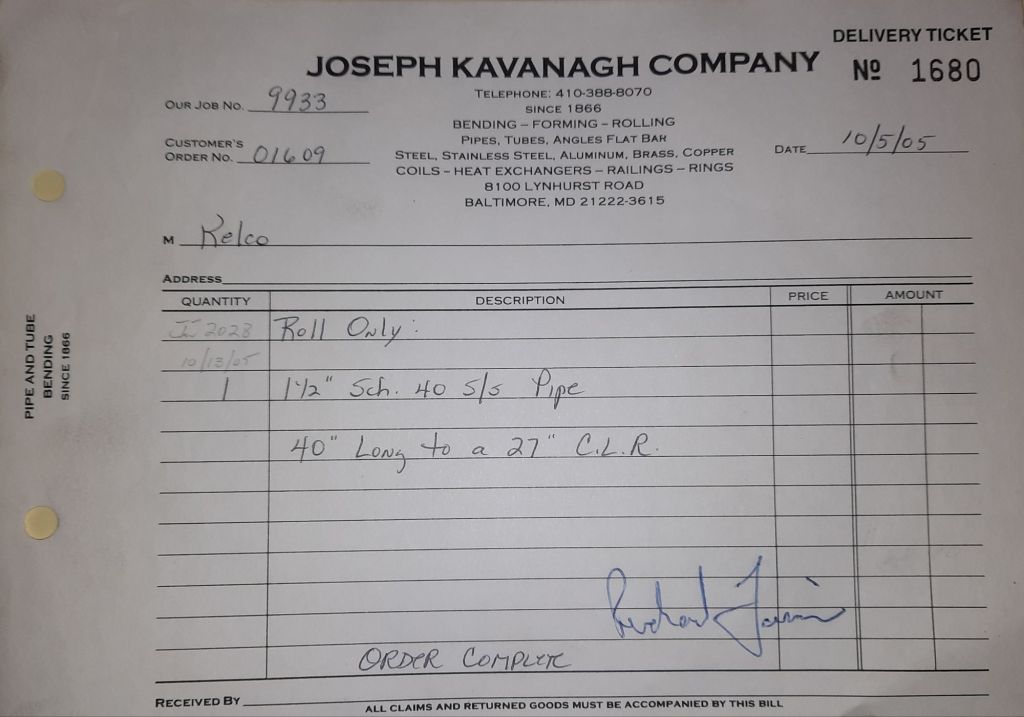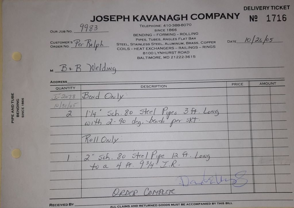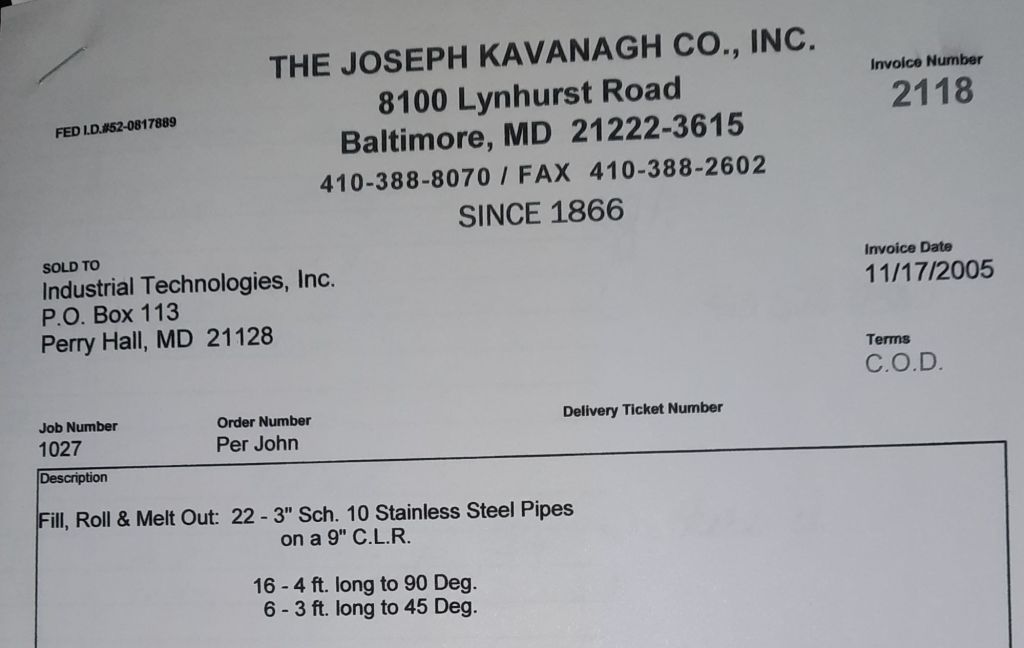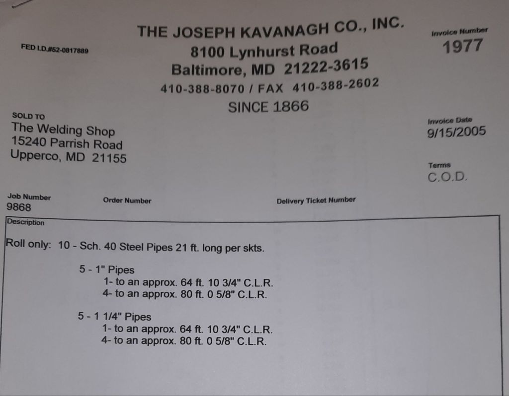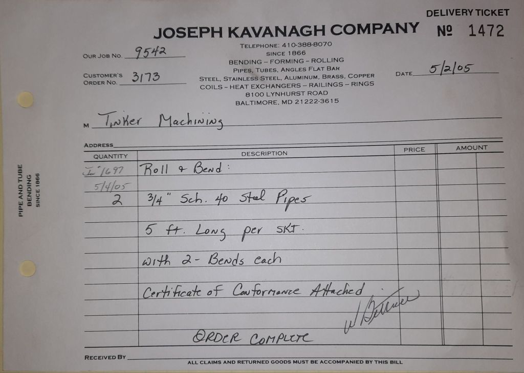 I sit at my desk and check for emails. I have a few. The website with emails is a success to me. The biggest positive is customers can send me a drawing or a picture or even a rendering. Being able to see any version of what the customer wants is a great help to my job. It’s like getting a fax only faster. I can decide if it’s something we should bid in a matter of moments. The items we clearly can’t do can be dismissed with a polite reply. Most of my dealing with vendors and buyers is via the phone but I think that will change. The internet will change that but we still have to bend and roll. Do our jobs. The Shop rolls along with more channels for the Bureau of Engraving and Printing, some tubes for a ship repair, pipes for the Hagerstown Wastewater Treatment Plant and some pool parts for Five Oaks Swim Club.