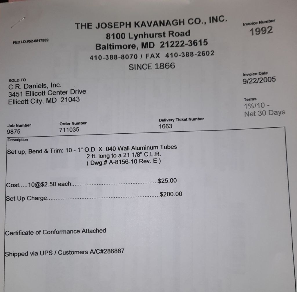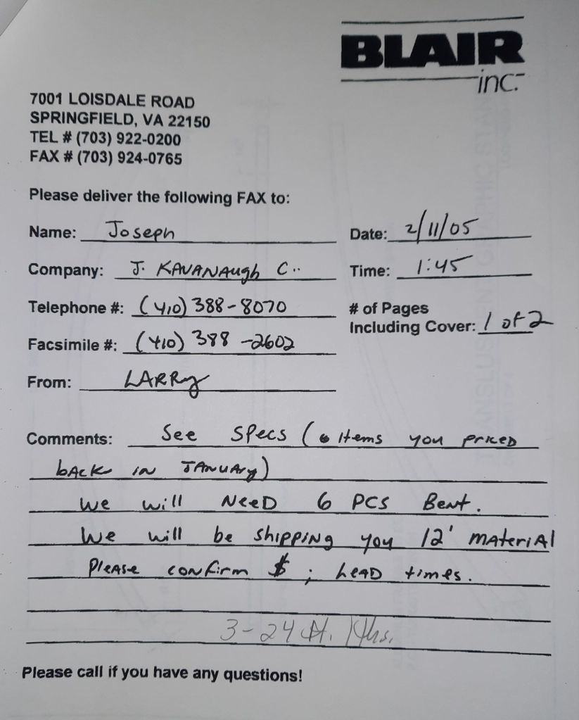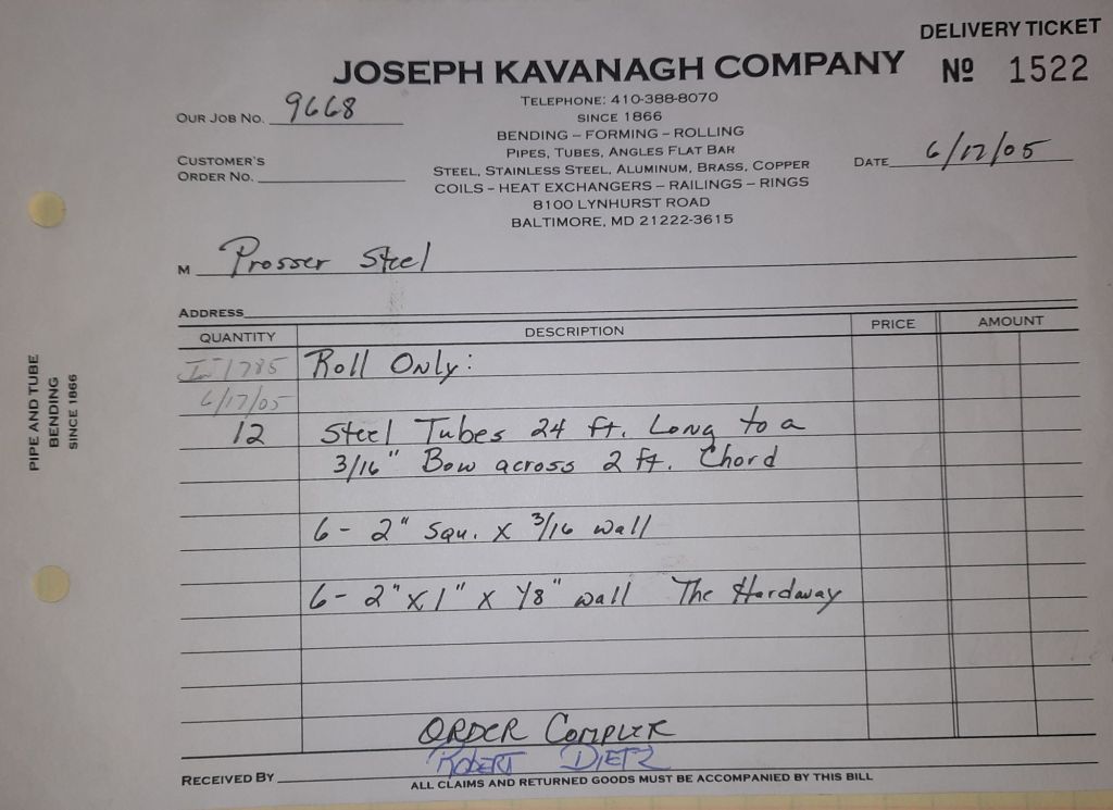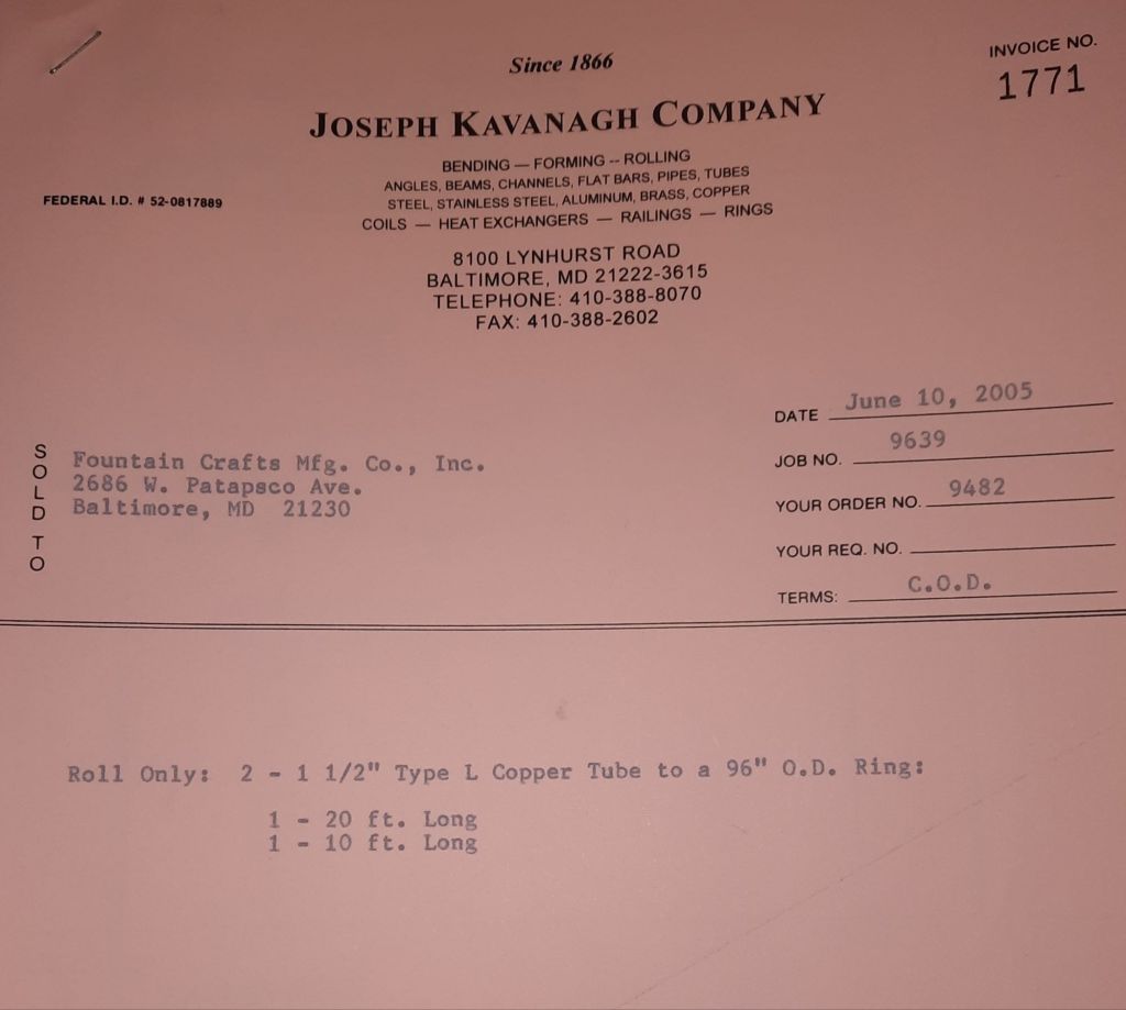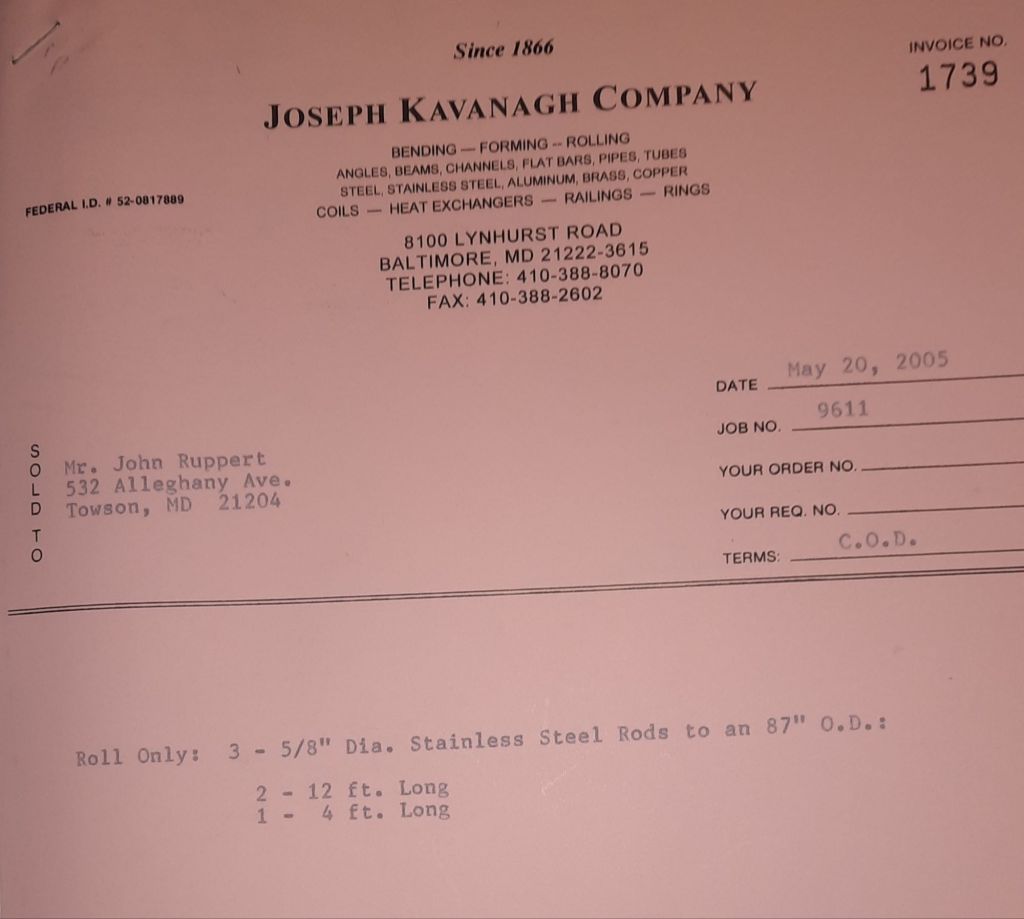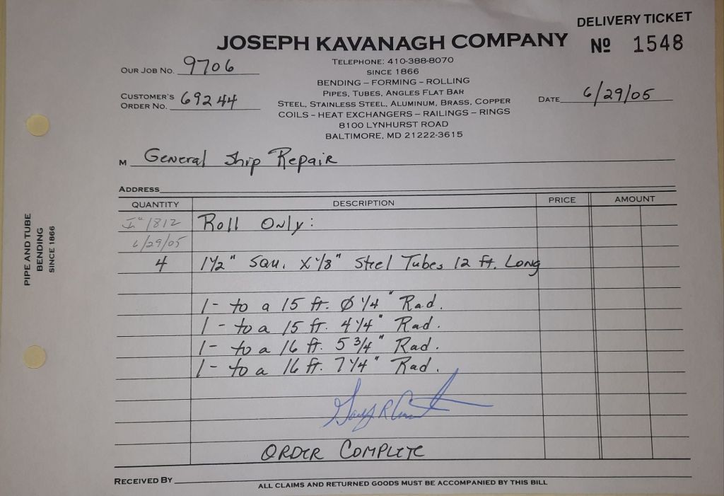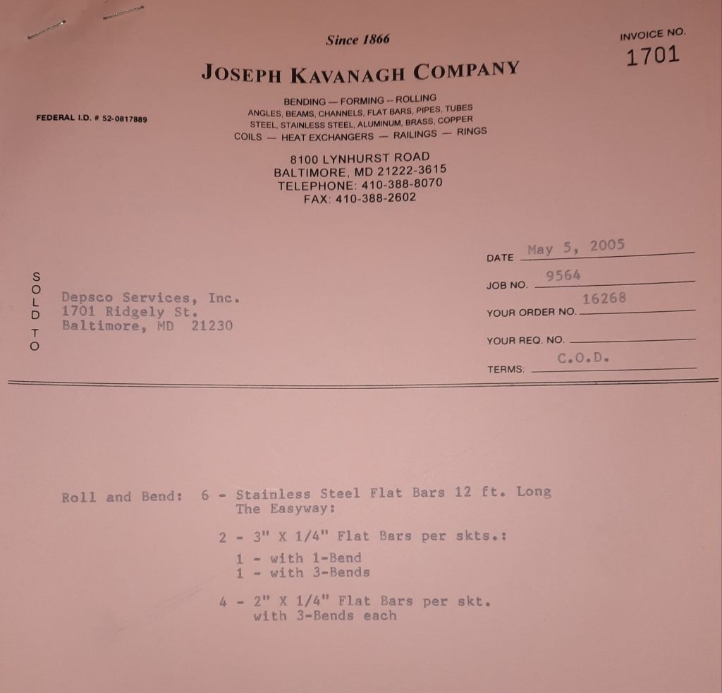 I sit at my desk and check for emails. I have a few. The website with emails is a success to me. The biggest positive is customers can send me a drawing or a picture or even a rendering. Being able to see any version of what the customer wants is a great help to my job. It’s like getting a fax only faster. I can decide if it’s something we should bid in a matter of moments. The items we clearly can’t do can be dismissed with a polite reply. Most of my dealing with vendors and buyers is via the phone but I think that will change. The internet will change that but we still have to bend and roll. Do our jobs. The Shop rolls along with more channels for the Bureau of Engraving and Printing, some tubes for a ship repair, pipes for the Hagerstown Wastewater Treatment Plant and some pool parts for Five Oaks Swim Club.