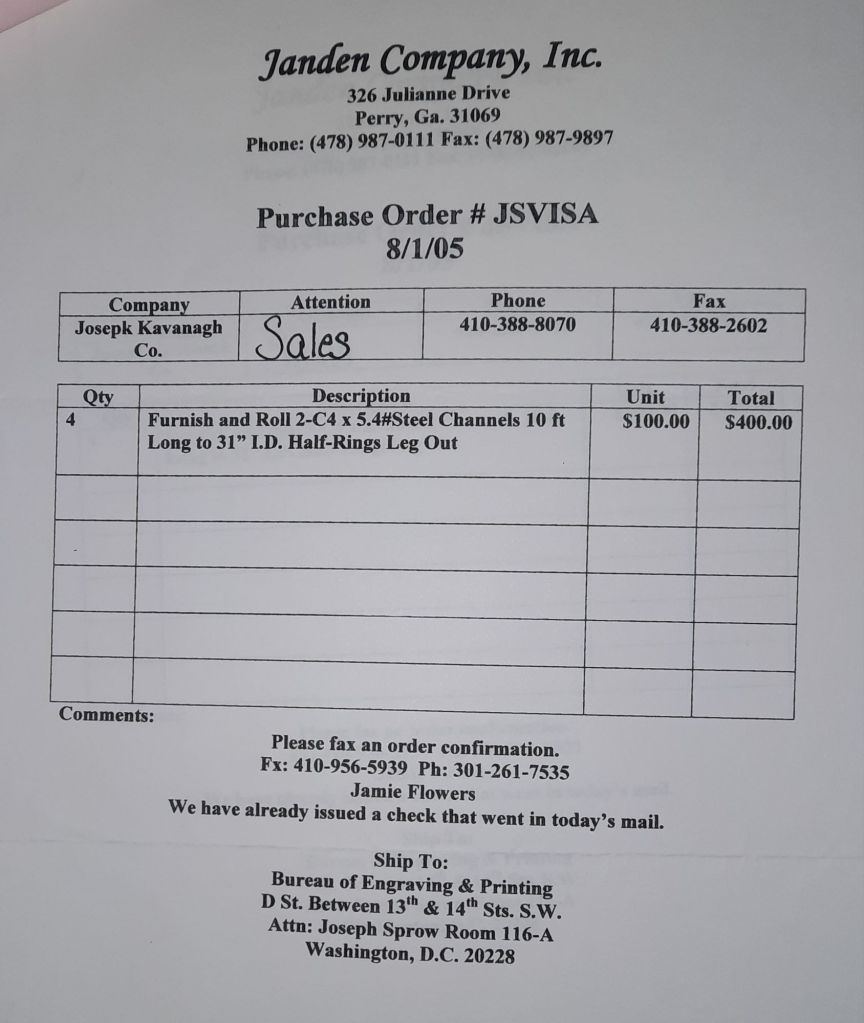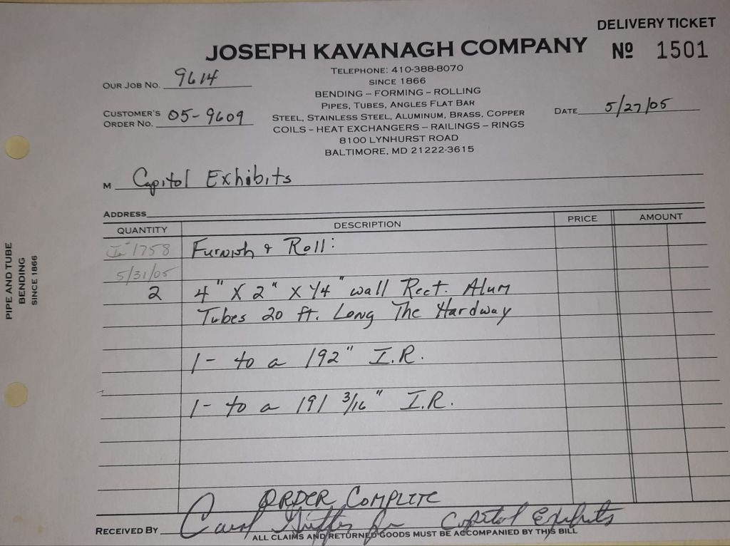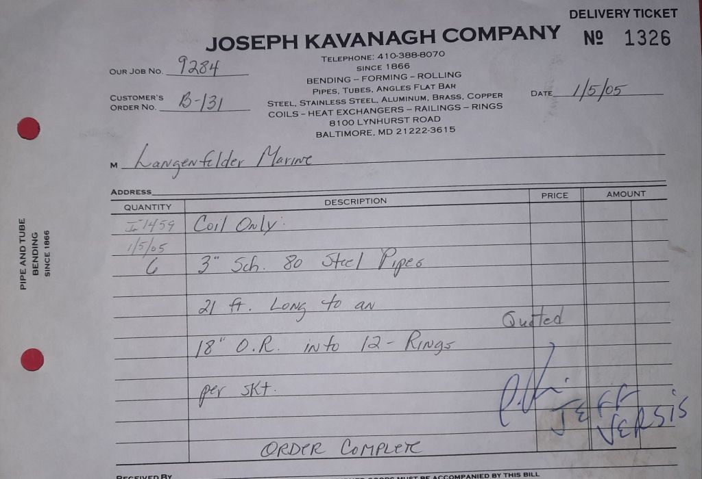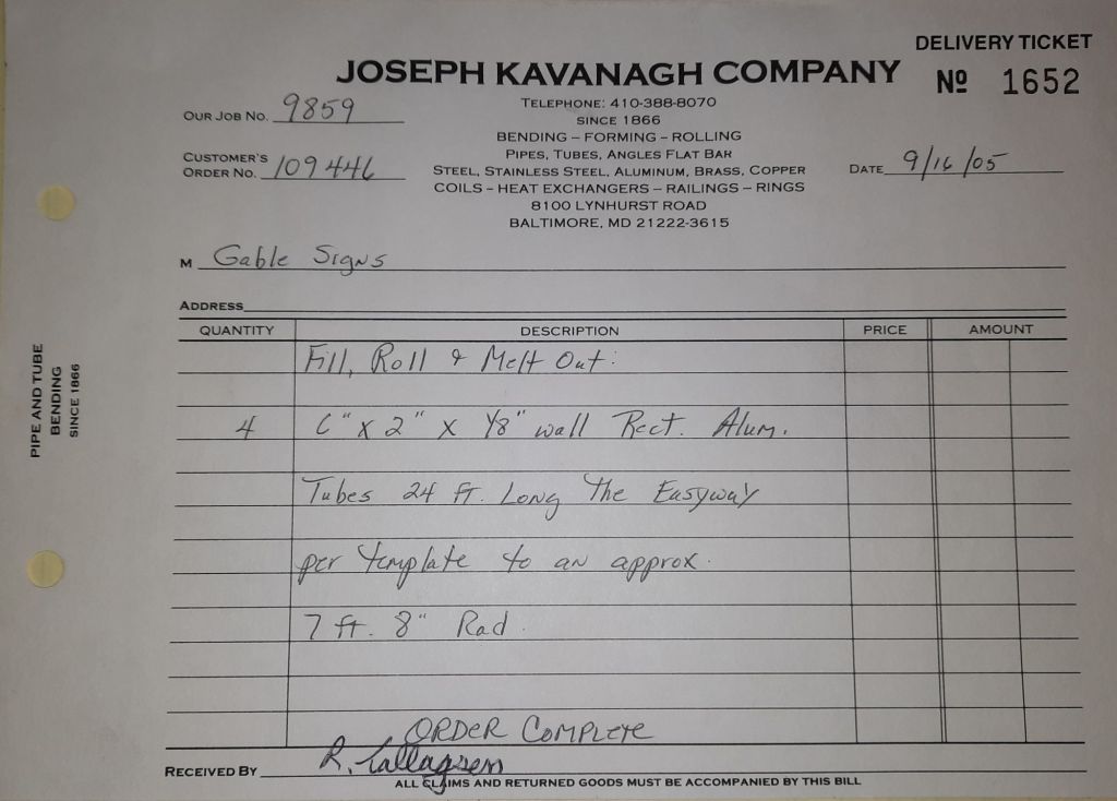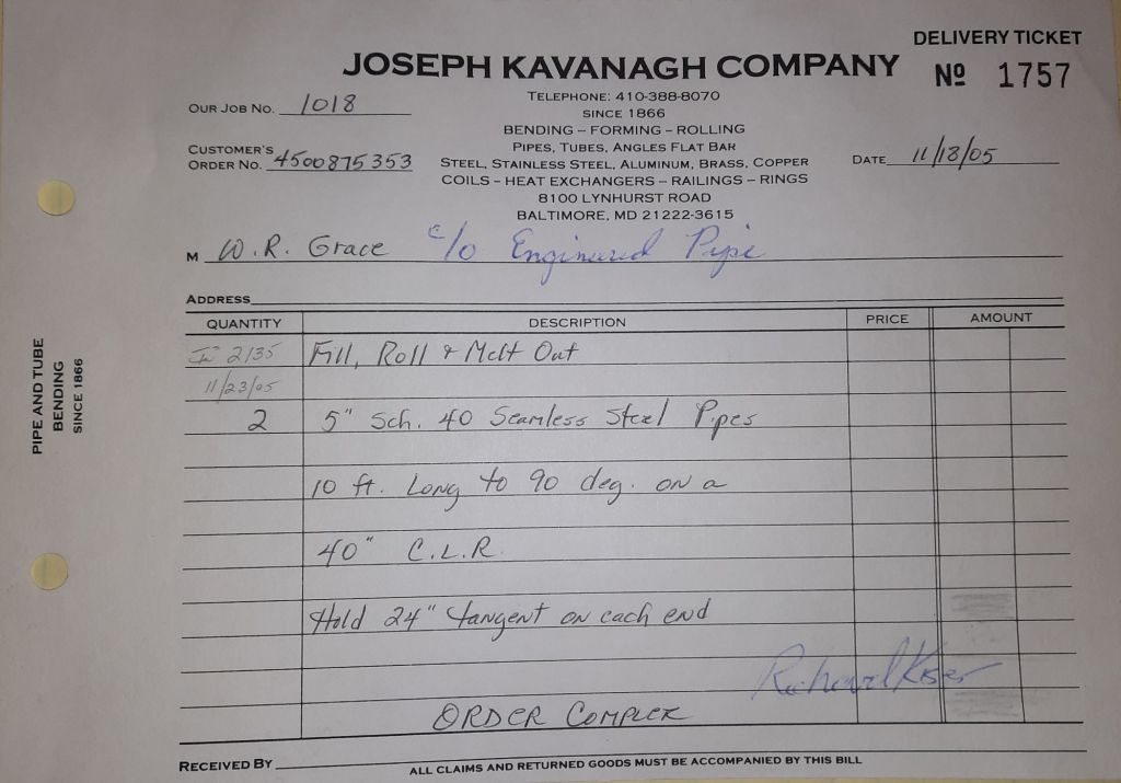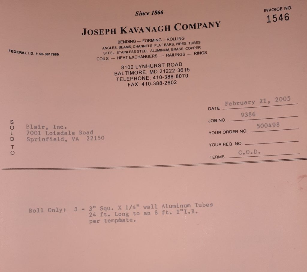 I sit at my desk and check for emails. I have a few. The website with emails is a success to me. The biggest positive is customers can send me a drawing or a picture or even a rendering. Being able to see any version of what the customer wants is a great help to my job. It’s like getting a fax only faster. I can decide if it’s something we should bid in a matter of moments. The items we clearly can’t do can be dismissed with a polite reply. Most of my dealing with vendors and buyers is via the phone but I think that will change. The internet will change that but we still have to bend and roll. Do our jobs. The Shop rolls along with more channels for the Bureau of Engraving and Printing, some tubes for a ship repair, pipes for the Hagerstown Wastewater Treatment Plant and some pool parts for Five Oaks Swim Club.