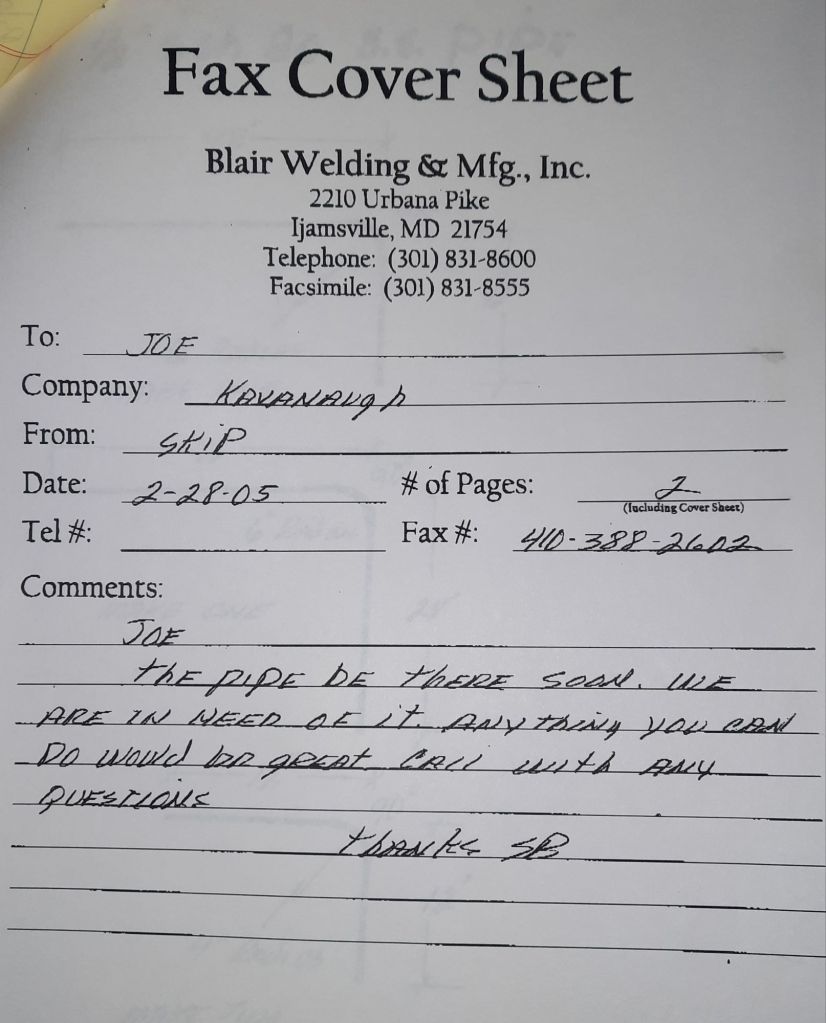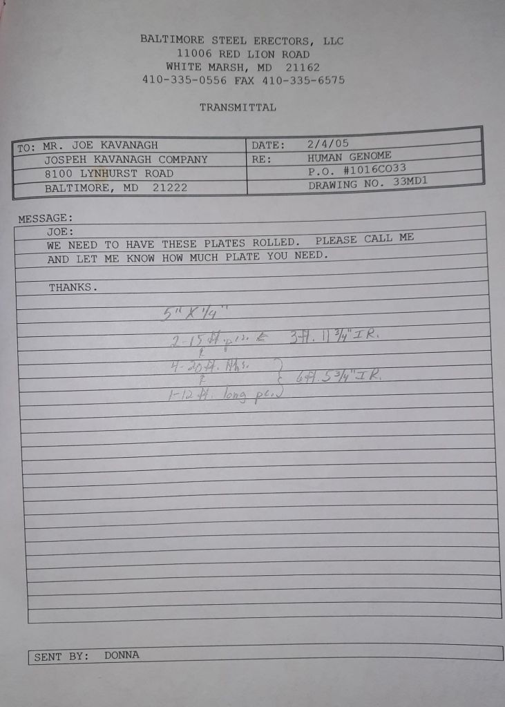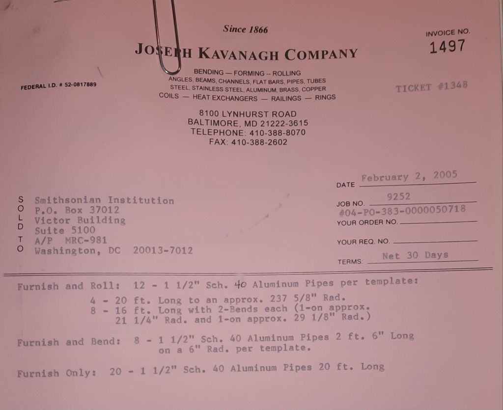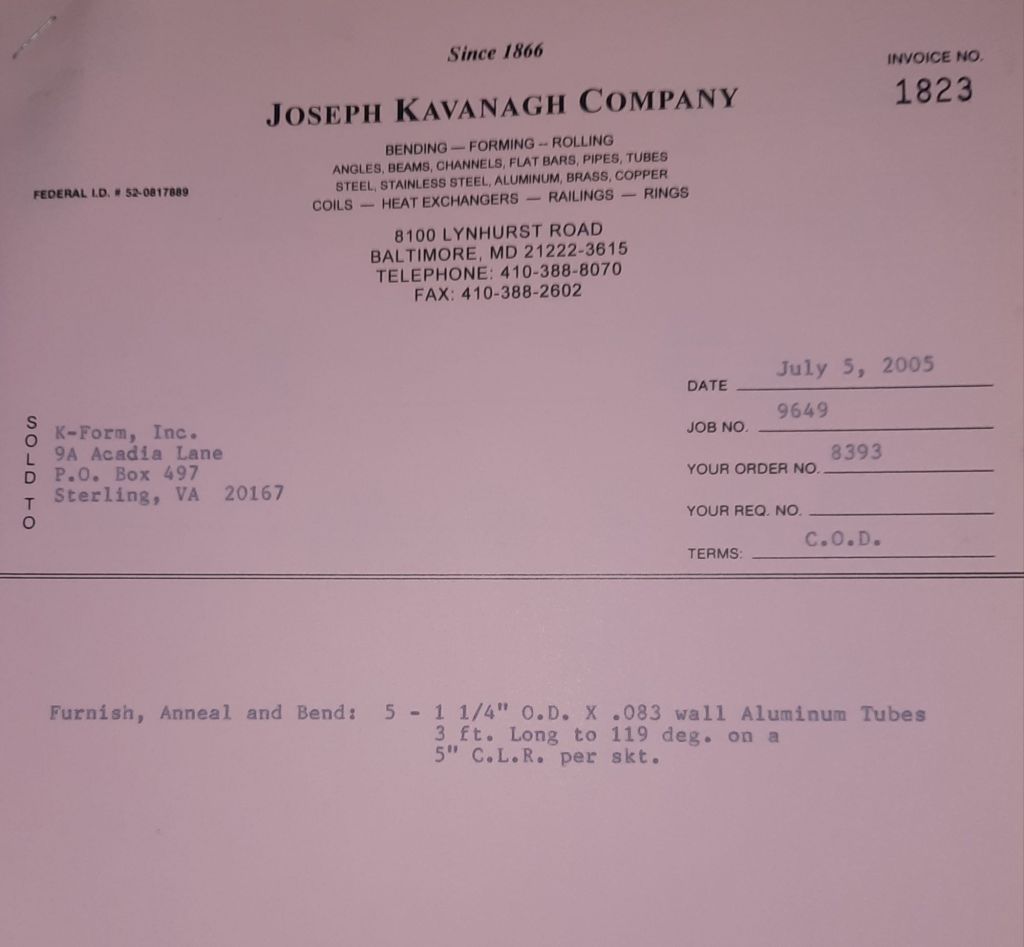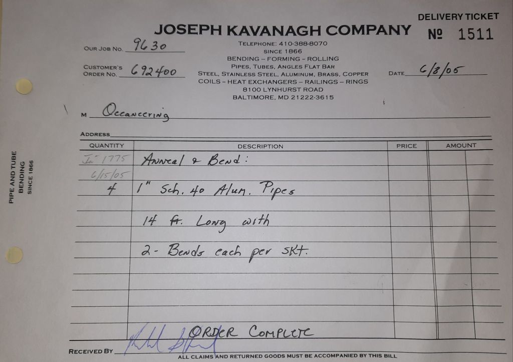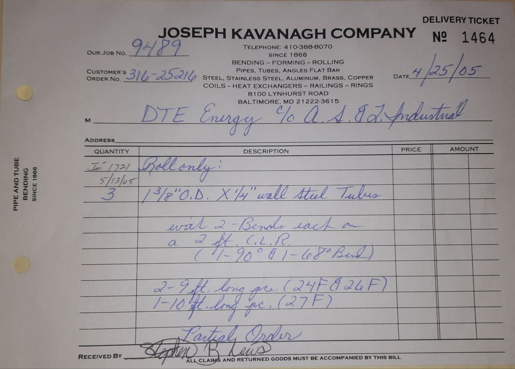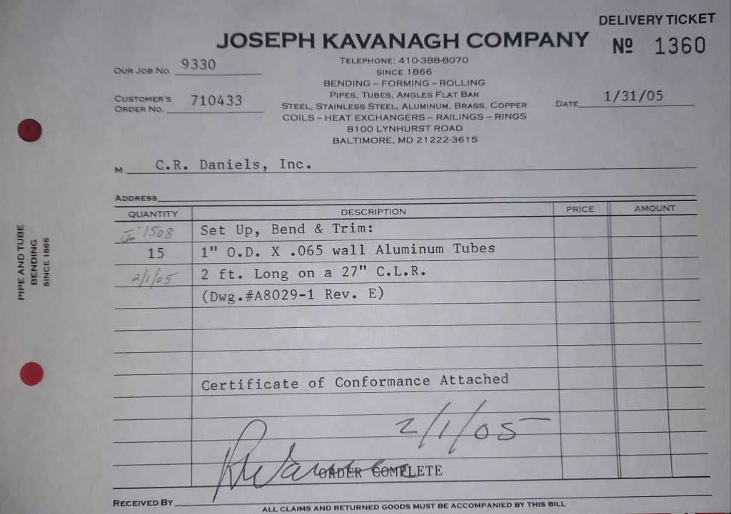 I sit at my desk and check for emails. I have a few. The website with emails is a success to me. The biggest positive is customers can send me a drawing or a picture or even a rendering. Being able to see any version of what the customer wants is a great help to my job. It’s like getting a fax only faster. I can decide if it’s something we should bid in a matter of moments. The items we clearly can’t do can be dismissed with a polite reply. Most of my dealing with vendors and buyers is via the phone but I think that will change. The internet will change that but we still have to bend and roll. Do our jobs. The Shop rolls along with more channels for the Bureau of Engraving and Printing, some tubes for a ship repair, pipes for the Hagerstown Wastewater Treatment Plant and some pool parts for Five Oaks Swim Club.
