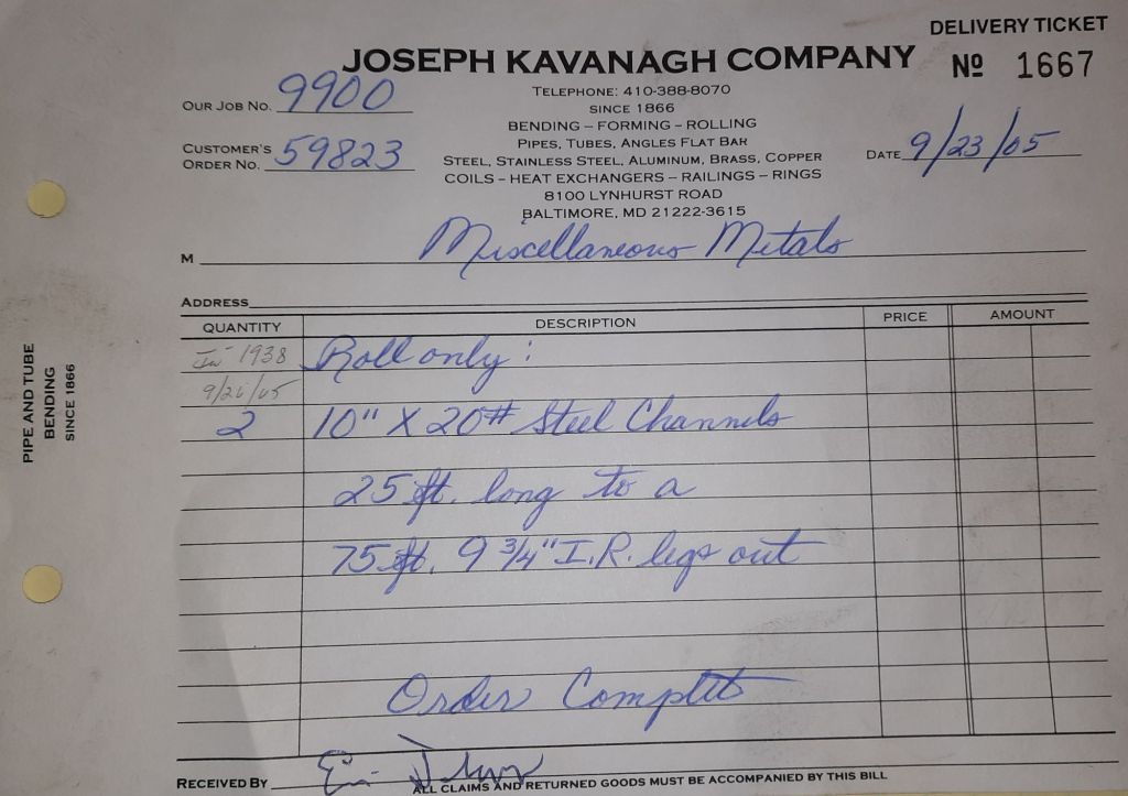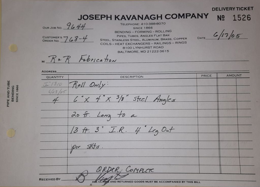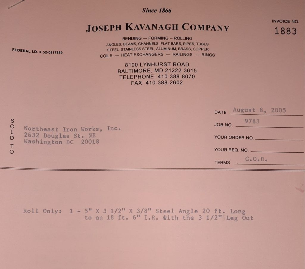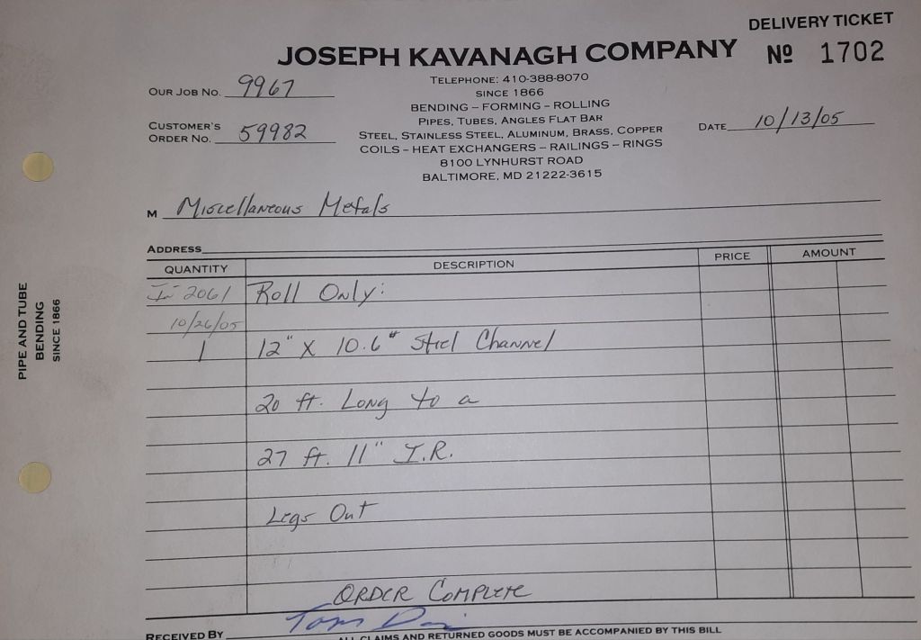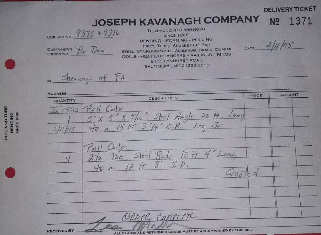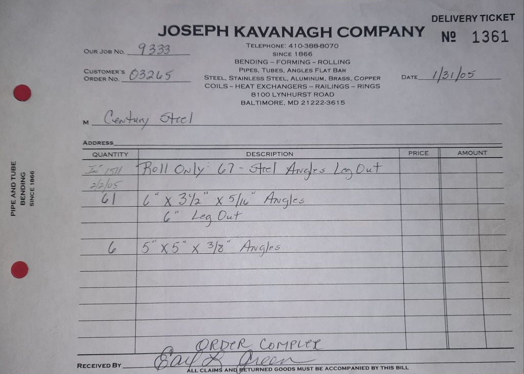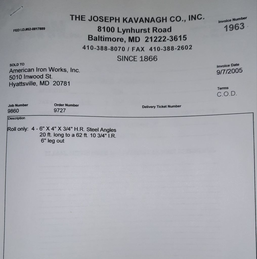 Today is Friday. The day most working people wait for patiently. That’s true for Kavanagh’s and crew. We finish some small jobs today including some formed angles for Beltway Iron. Formed means they are bent from plate and not made in a steel mill. A press brake is used to fold over the plate into an angle. It’s always challenging to roll these because they are thinner than mill angles and more irregular. Still, these work out fine. I finish filling out some delivery tickets and it’s time for everyone to head home.