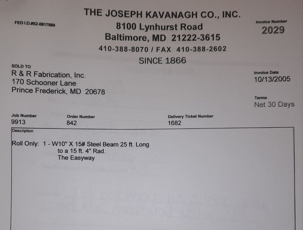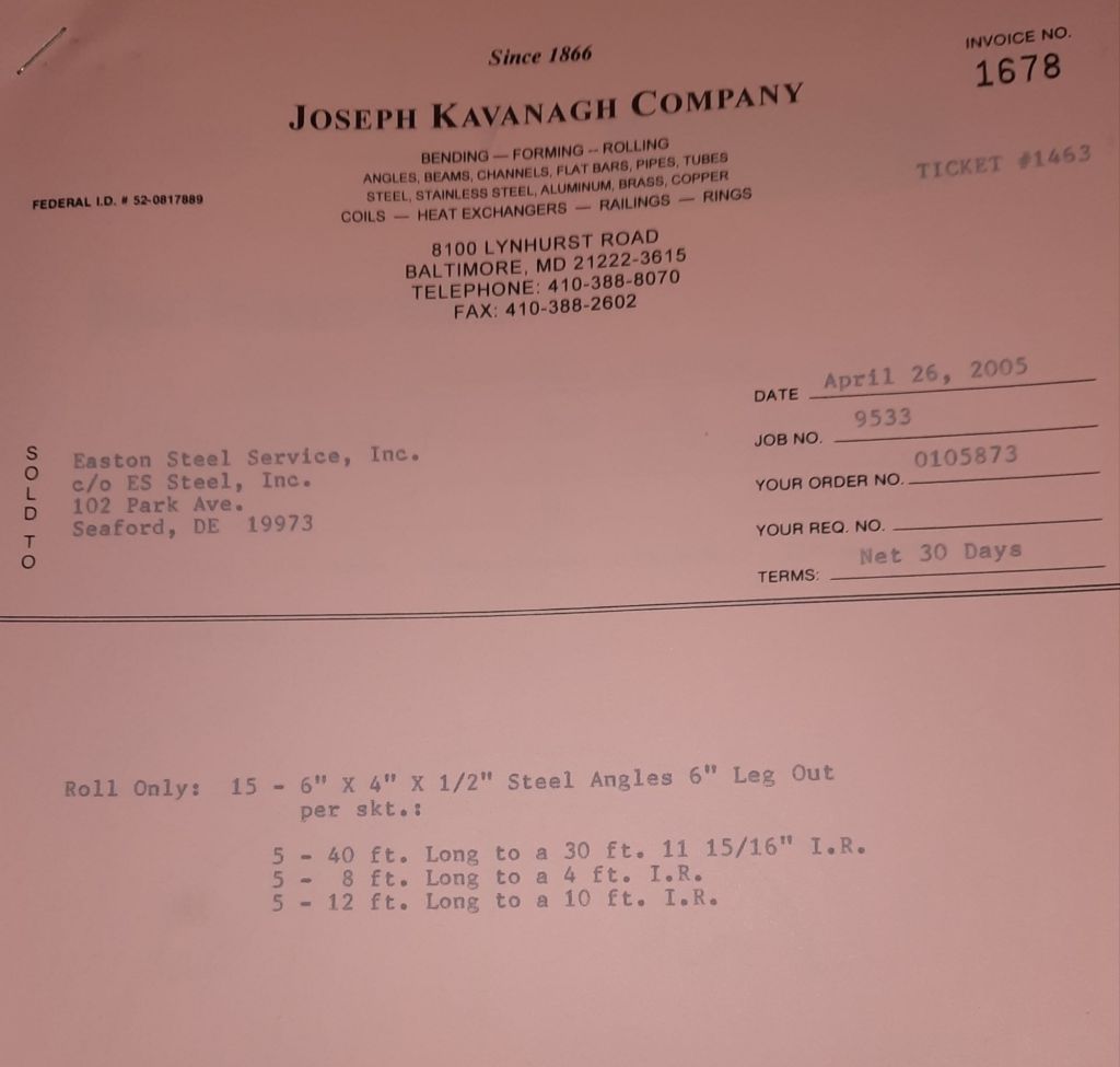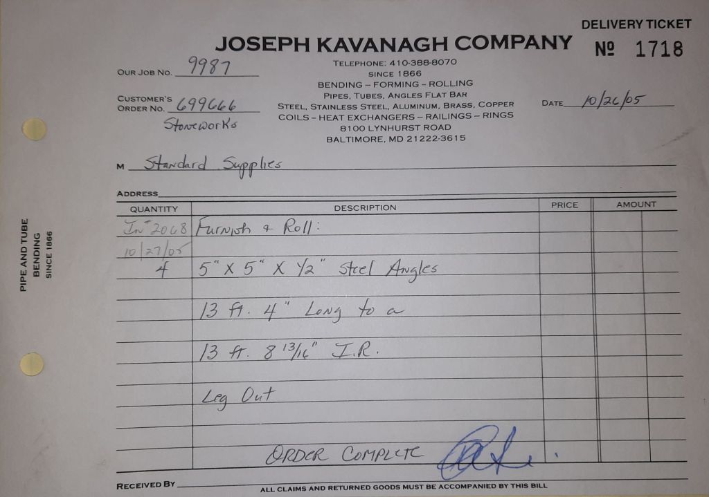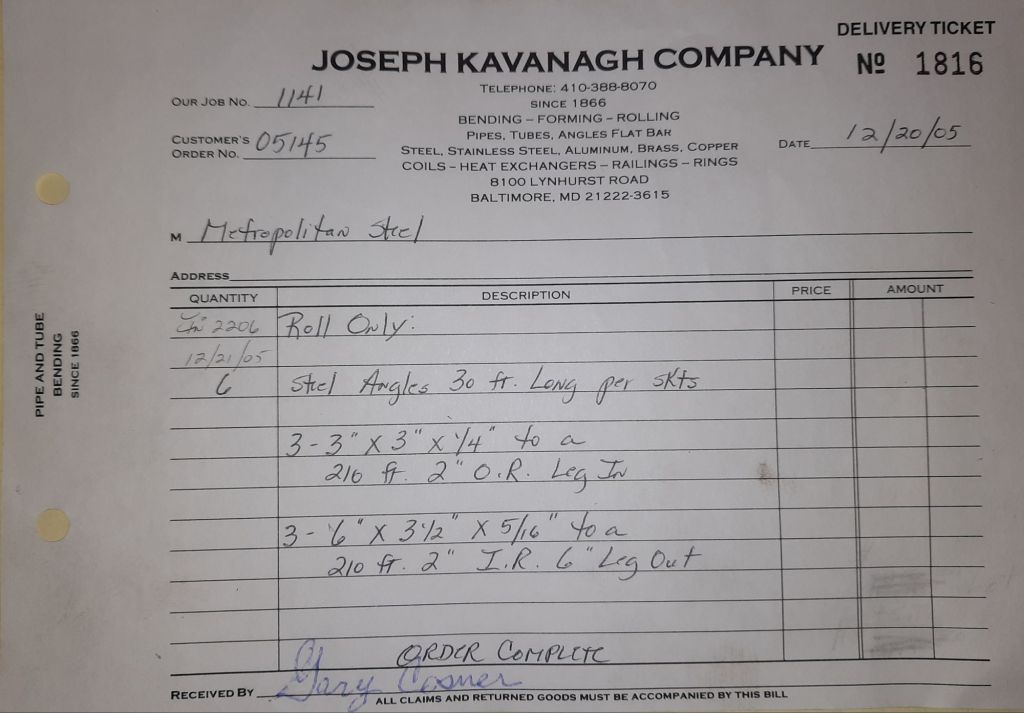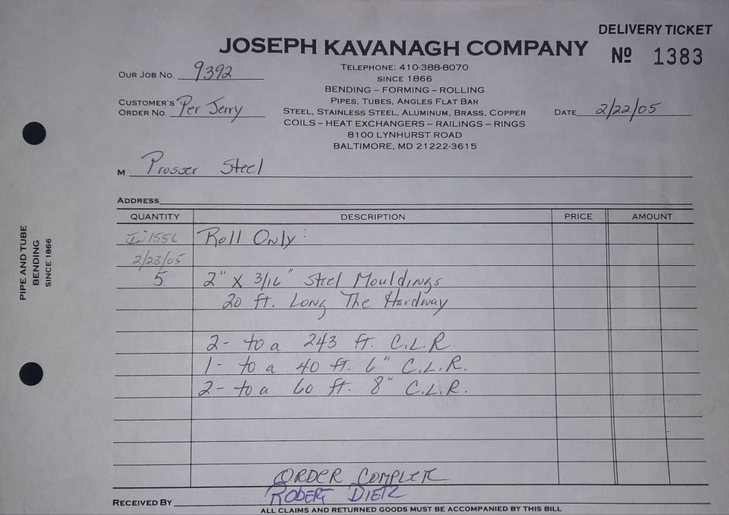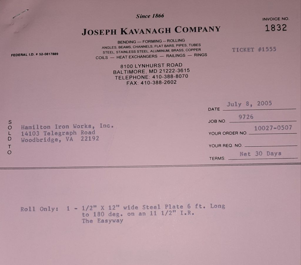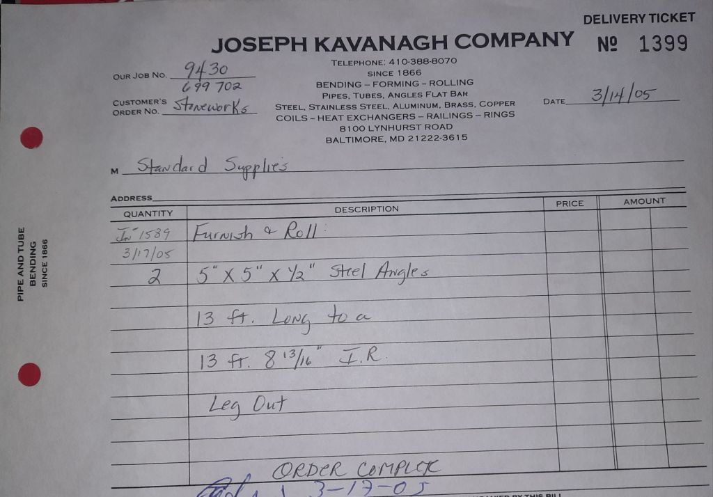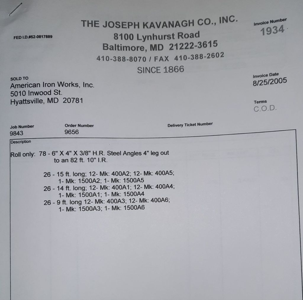 Today is Friday. The day most working people wait for patiently. That’s true for Kavanagh’s and crew. We finish some small jobs today including some formed angles for Beltway Iron. Formed means they are bent from plate and not made in a steel mill. A press brake is used to fold over the plate into an angle. It’s always challenging to roll these because they are thinner than mill angles and more irregular. Still, these work out fine. I finish filling out some delivery tickets and it’s time for everyone to head home.