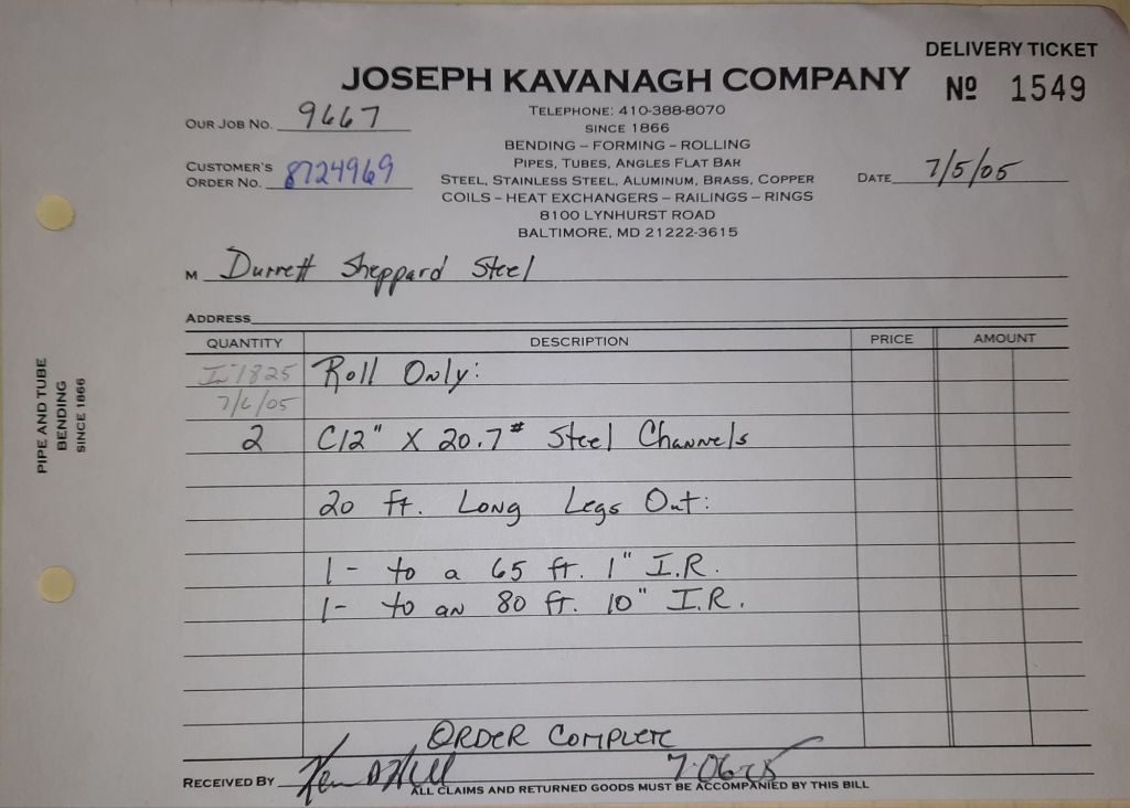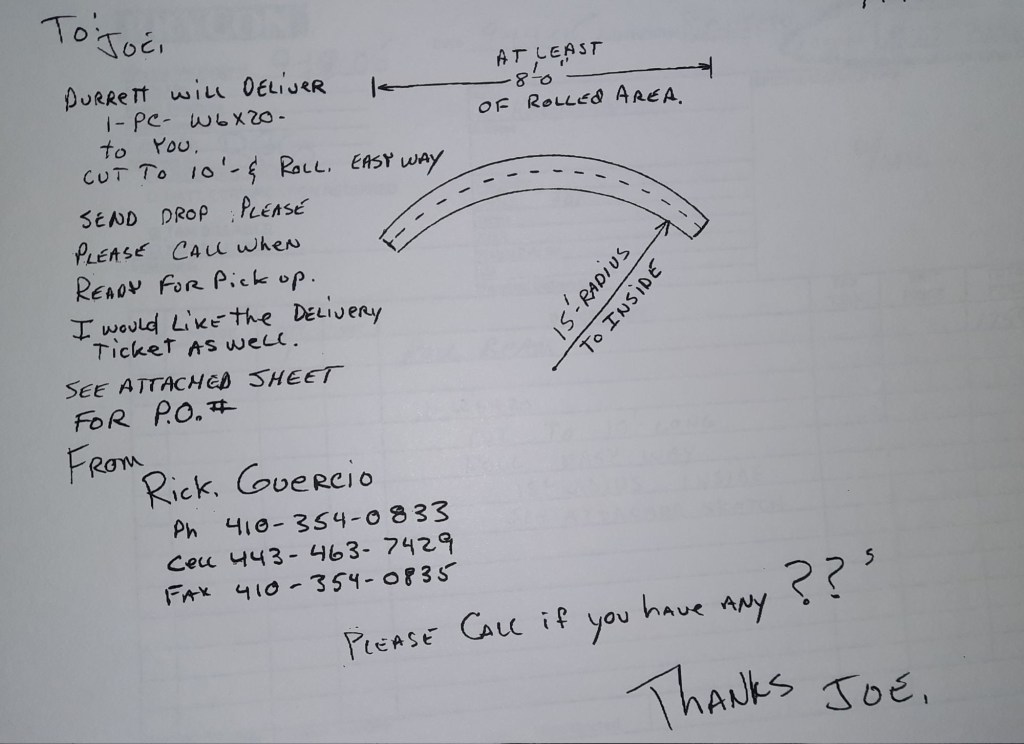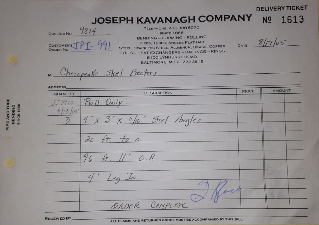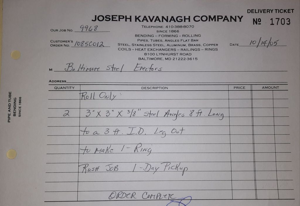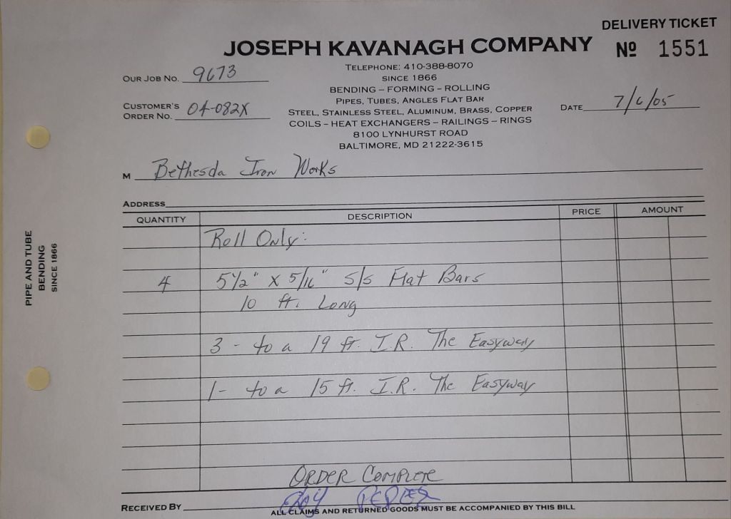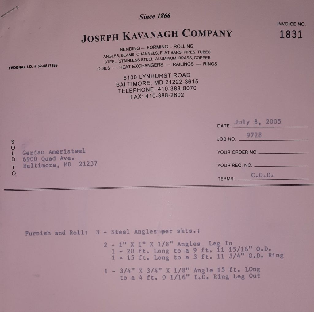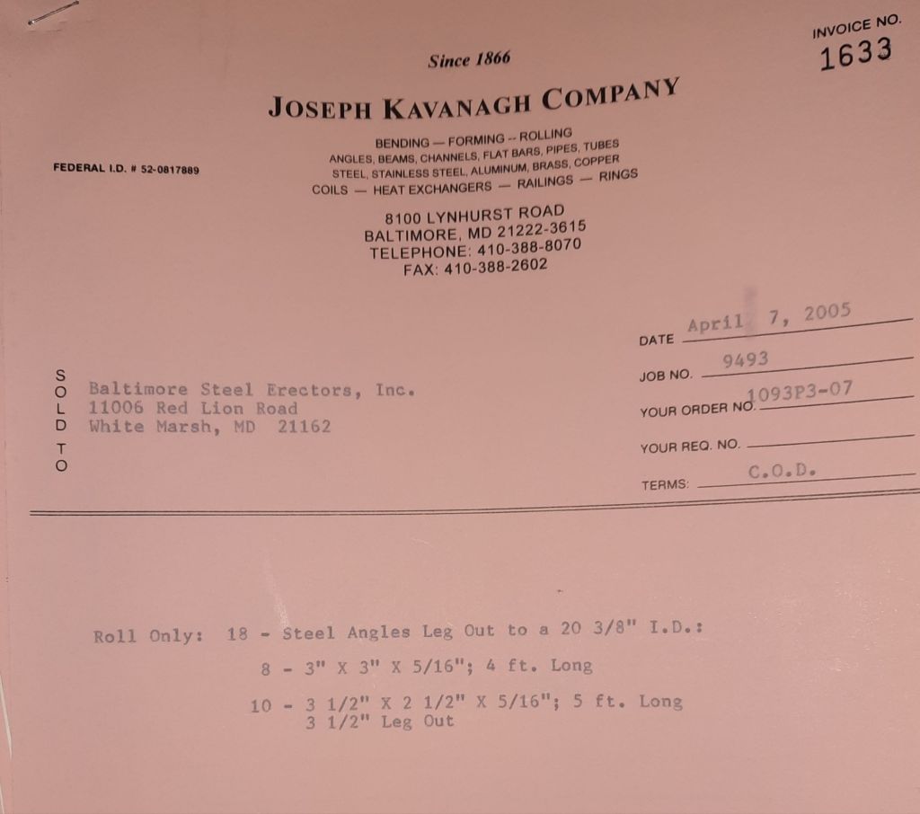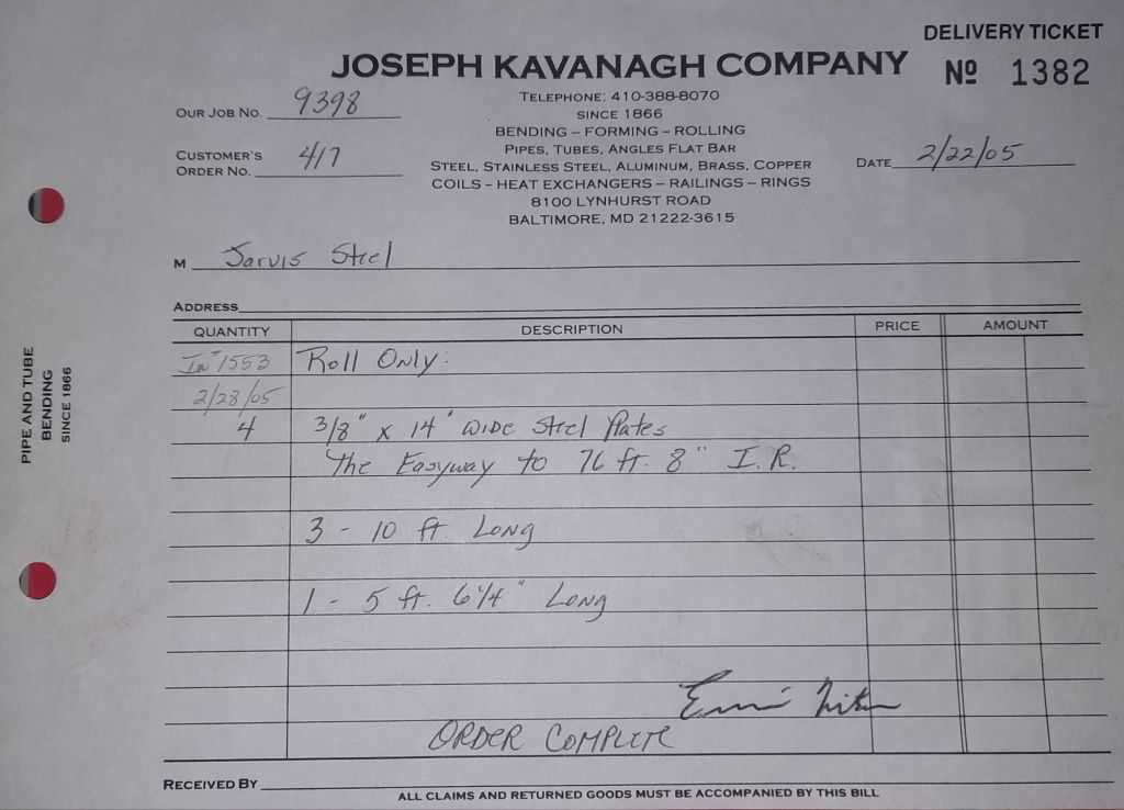 Today is Friday. The day most working people wait for patiently. That’s true for Kavanagh’s and crew. We finish some small jobs today including some formed angles for Beltway Iron. Formed means they are bent from plate and not made in a steel mill. A press brake is used to fold over the plate into an angle. It’s always challenging to roll these because they are thinner than mill angles and more irregular. Still, these work out fine. I finish filling out some delivery tickets and it’s time for everyone to head home.
