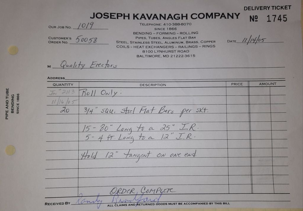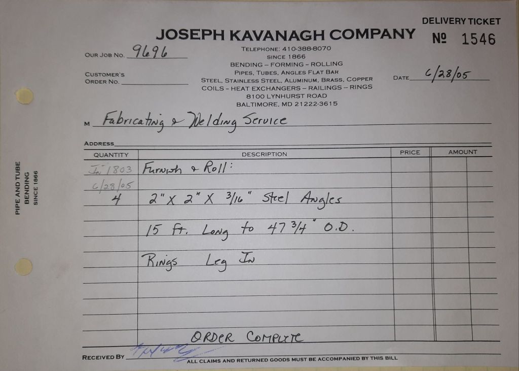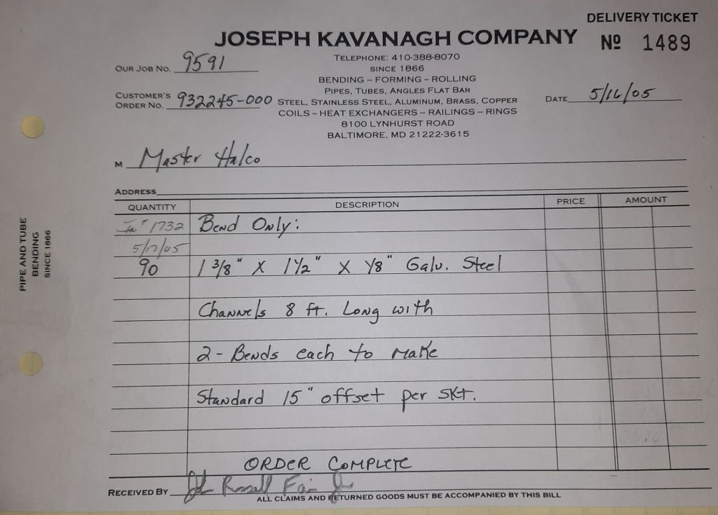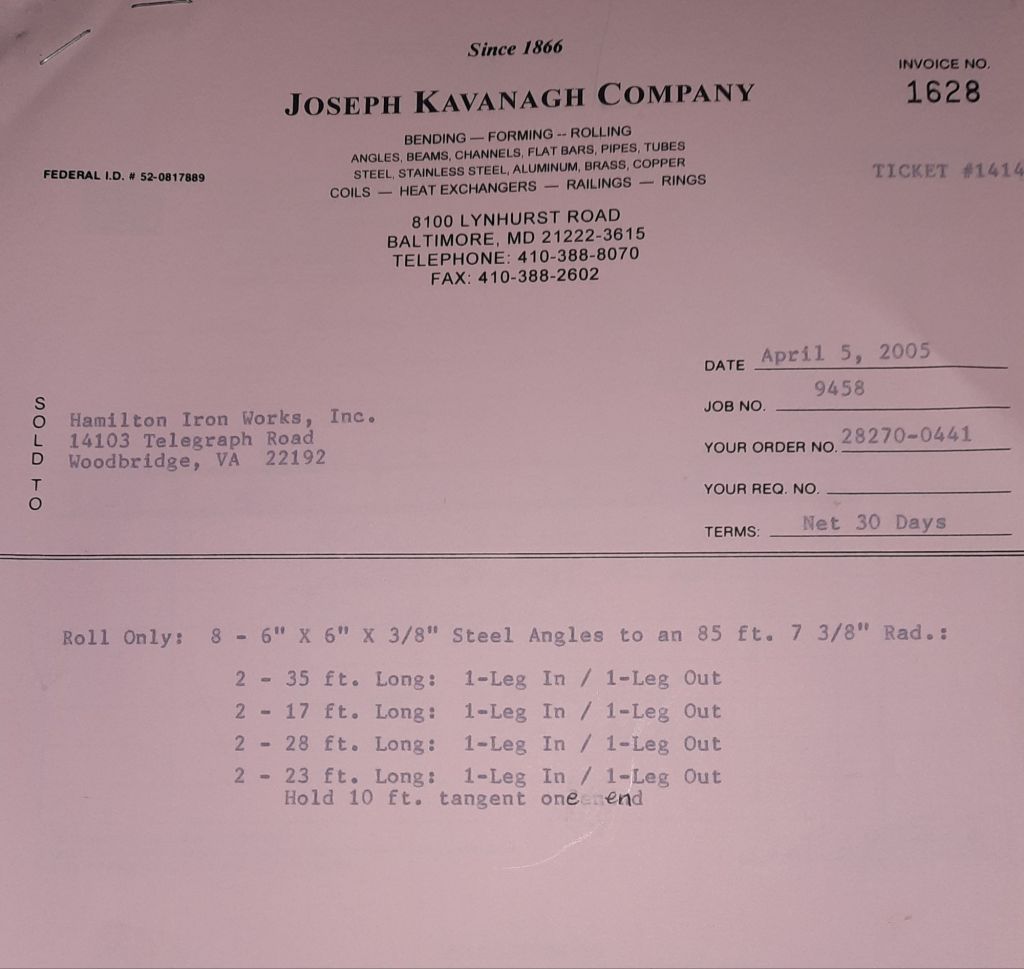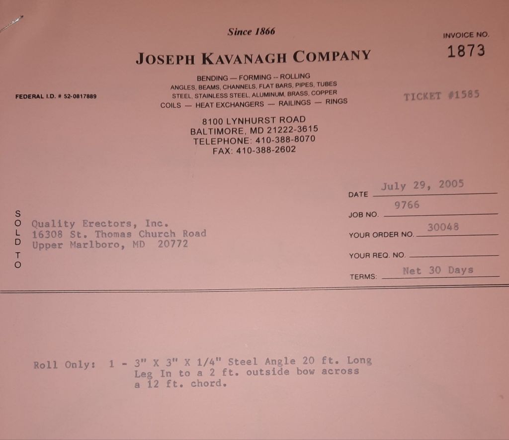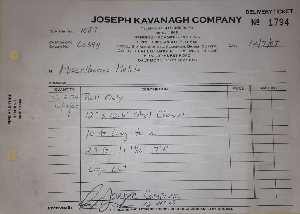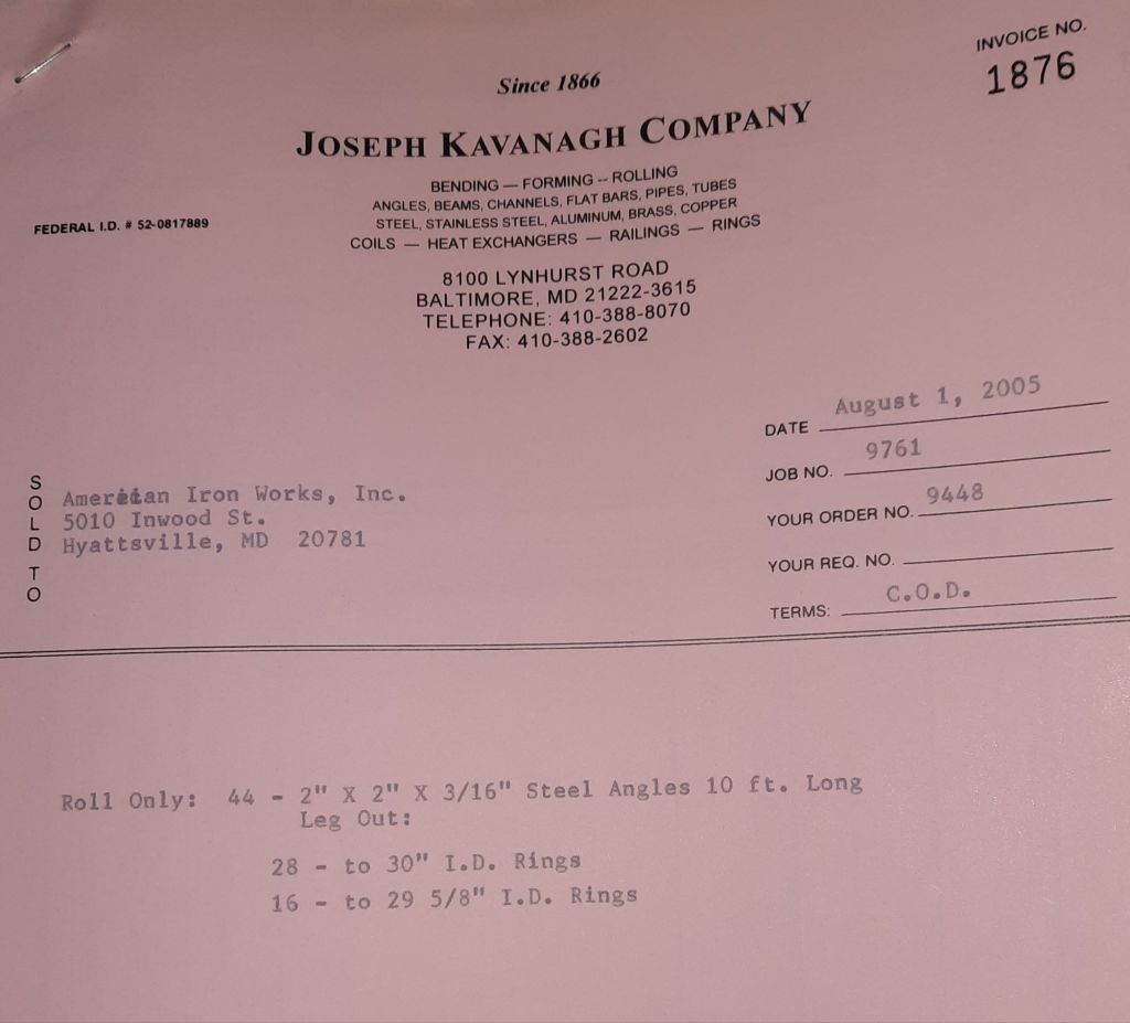 Today is Friday. The day most working people wait for patiently. That’s true for Kavanagh’s and crew. We finish some small jobs today including some formed angles for Beltway Iron. Formed means they are bent from plate and not made in a steel mill. A press brake is used to fold over the plate into an angle. It’s always challenging to roll these because they are thinner than mill angles and more irregular. Still, these work out fine. I finish filling out some delivery tickets and it’s time for everyone to head home.
