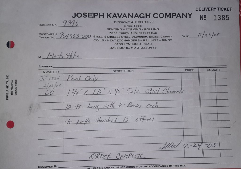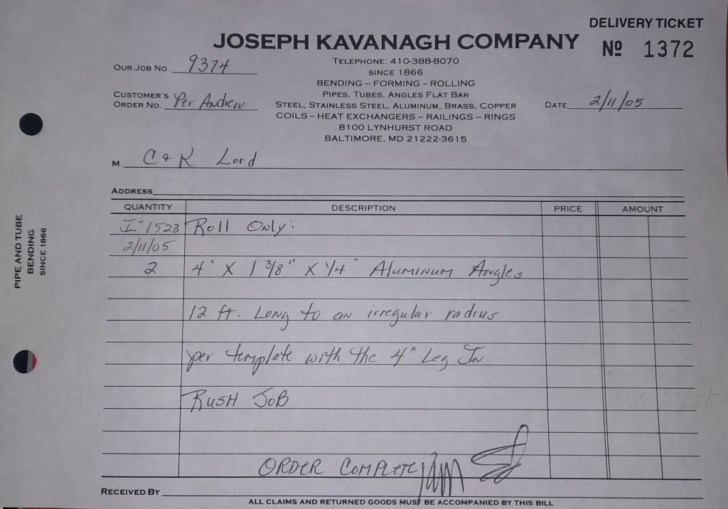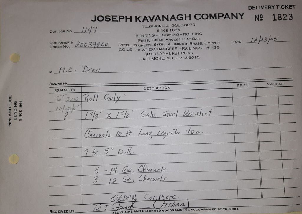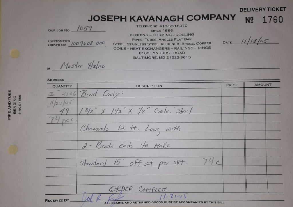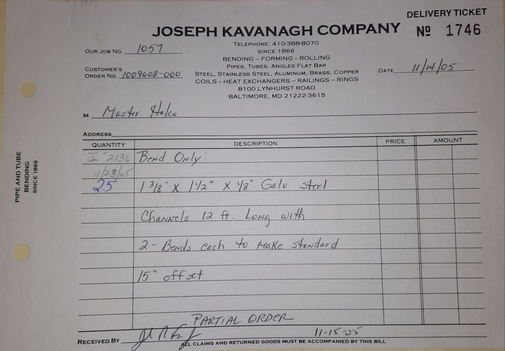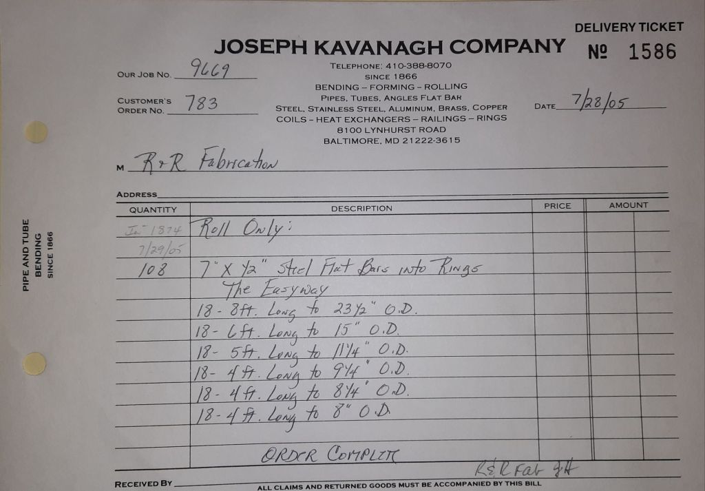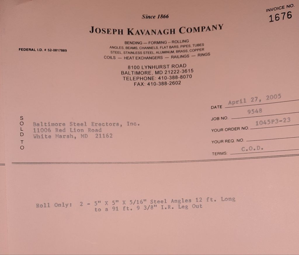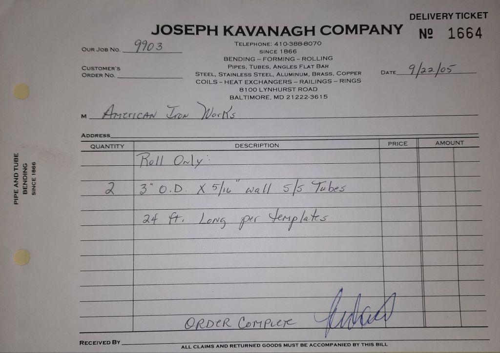 Today is Friday. The day most working people wait for patiently. That’s true for Kavanagh’s and crew. We finish some small jobs today including some formed angles for Beltway Iron. Formed means they are bent from plate and not made in a steel mill. A press brake is used to fold over the plate into an angle. It’s always challenging to roll these because they are thinner than mill angles and more irregular. Still, these work out fine. I finish filling out some delivery tickets and it’s time for everyone to head home.