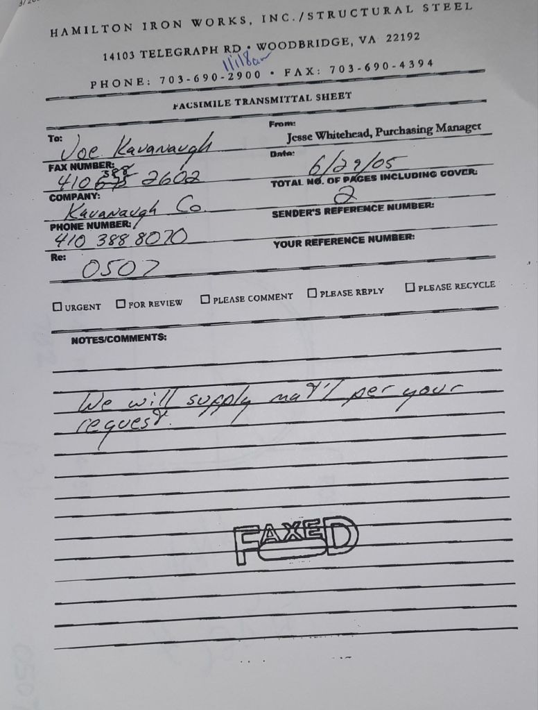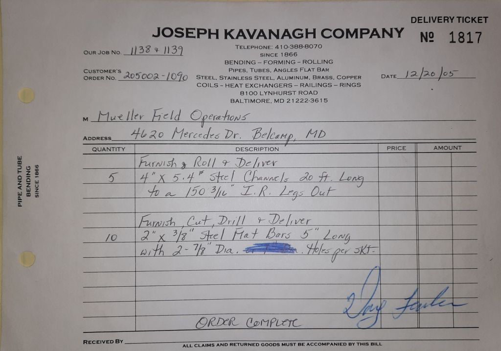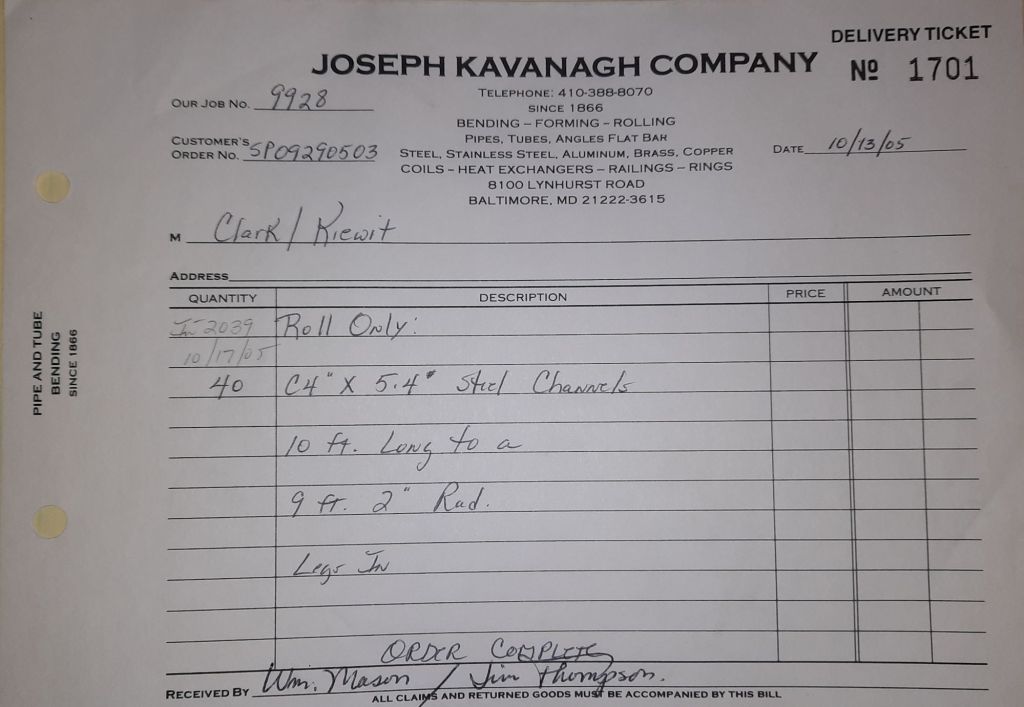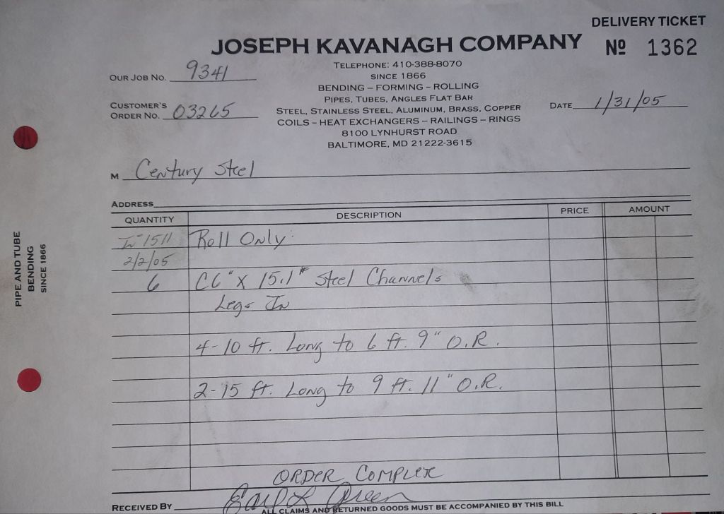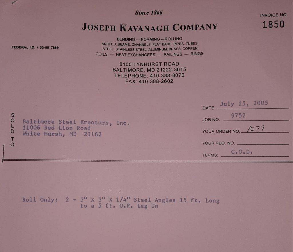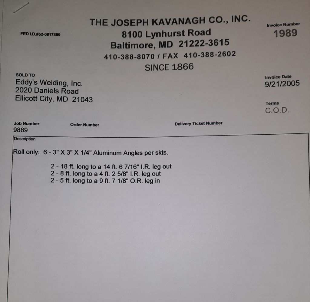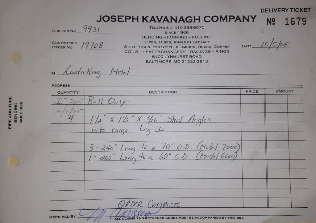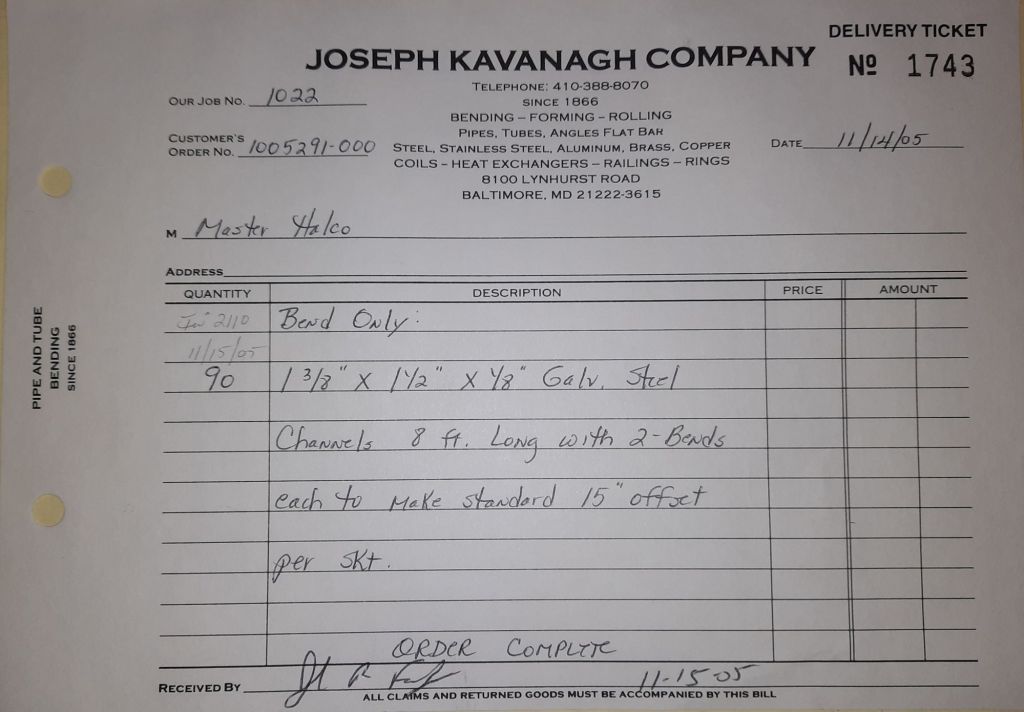 Today is Friday. The day most working people wait for patiently. That’s true for Kavanagh’s and crew. We finish some small jobs today including some formed angles for Beltway Iron. Formed means they are bent from plate and not made in a steel mill. A press brake is used to fold over the plate into an angle. It’s always challenging to roll these because they are thinner than mill angles and more irregular. Still, these work out fine. I finish filling out some delivery tickets and it’s time for everyone to head home.