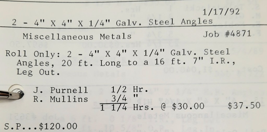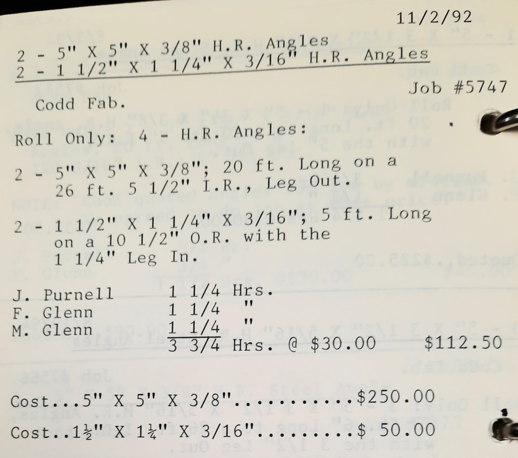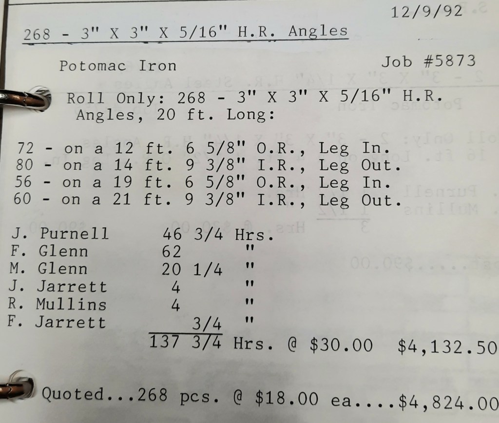 Another big project in Frederick has brought us another very large order from Miscellaneous Metals who are becoming one of my favorite customers. They pick up over 100 rolled 5” angles and I hope things keep rolling for them.