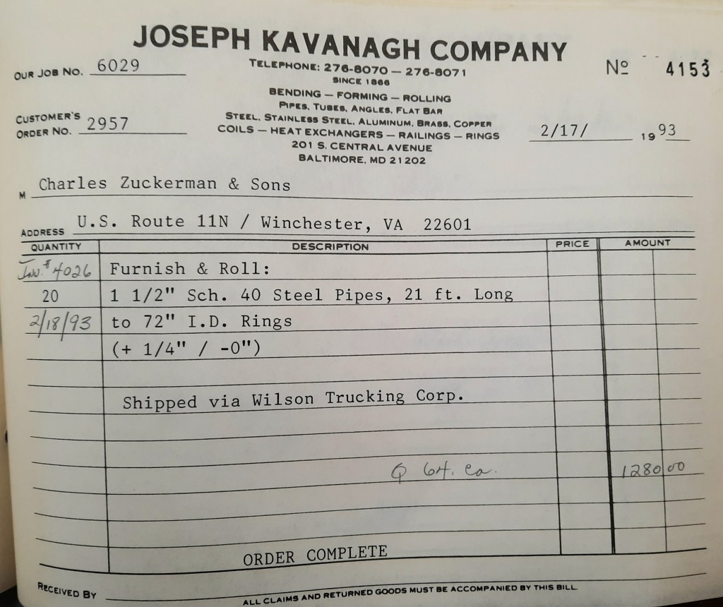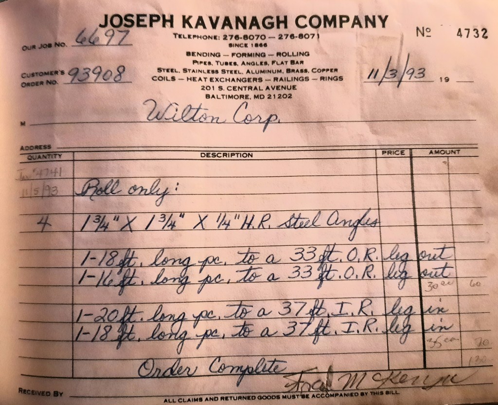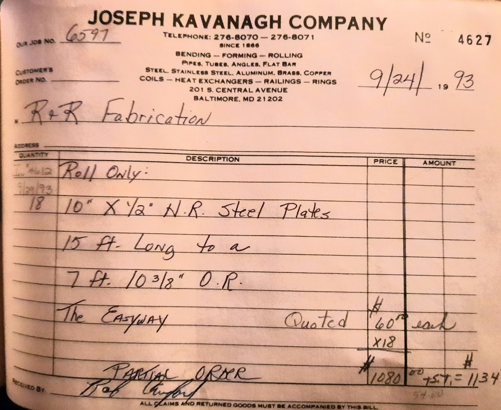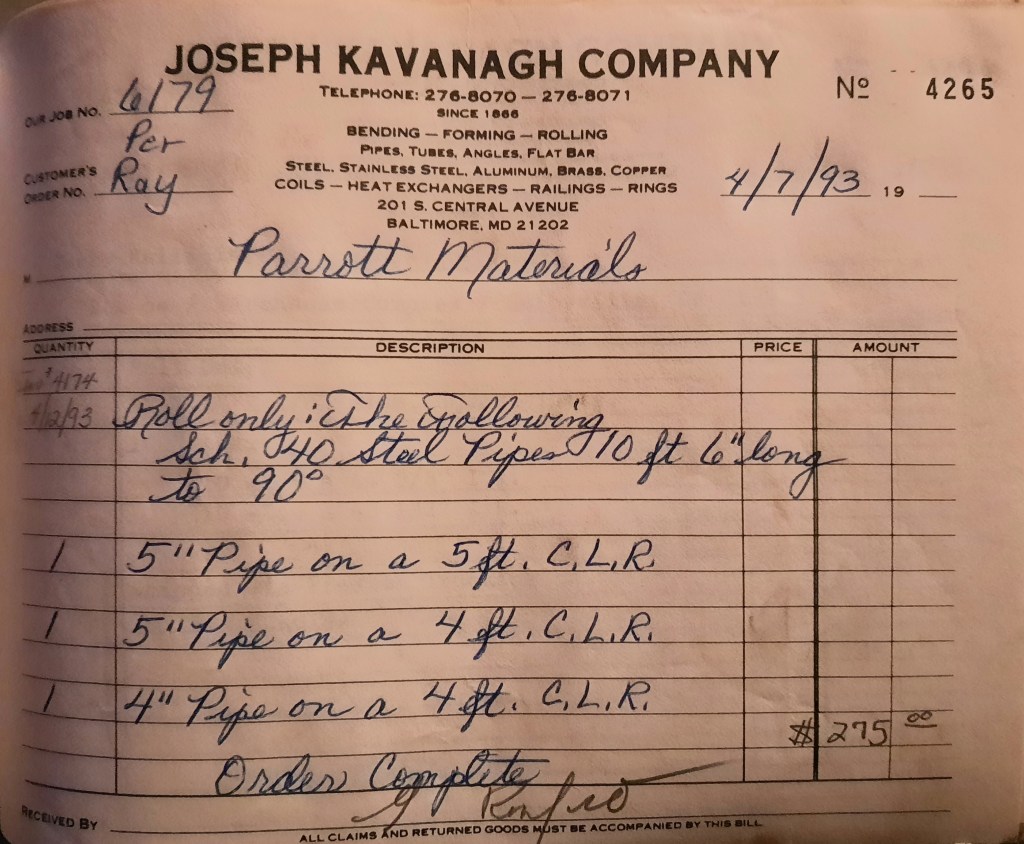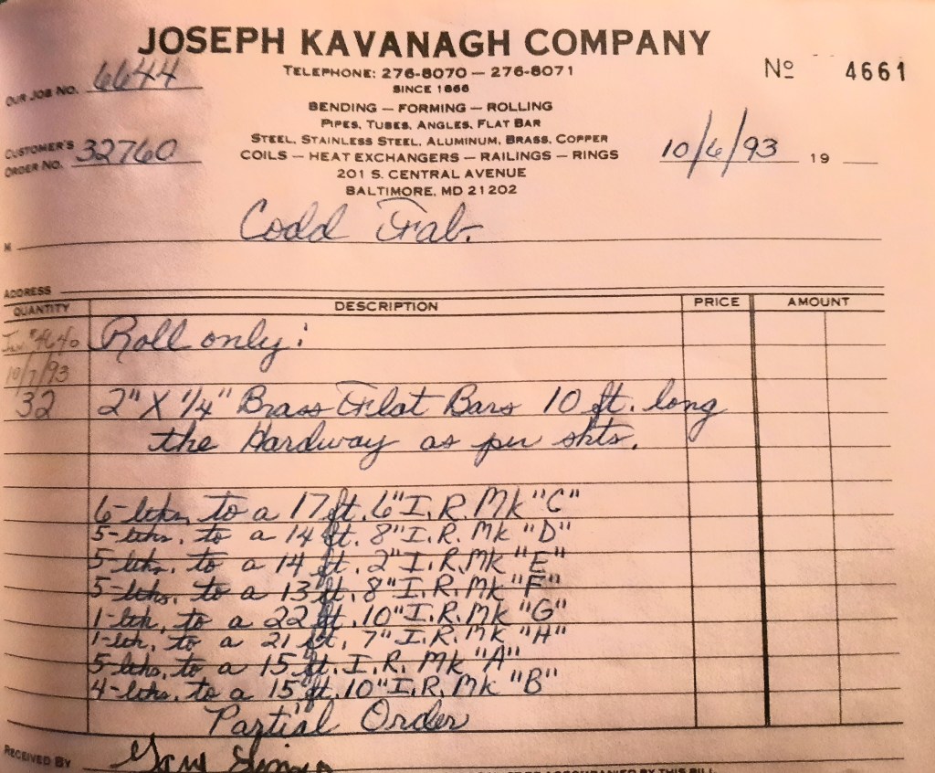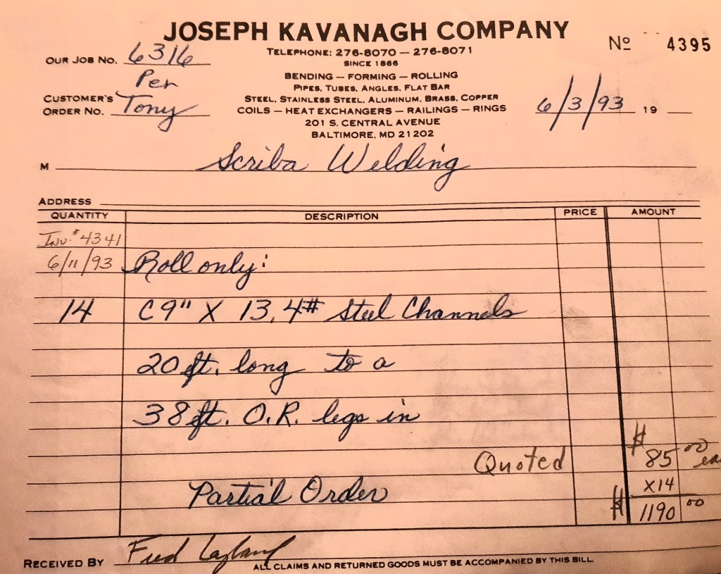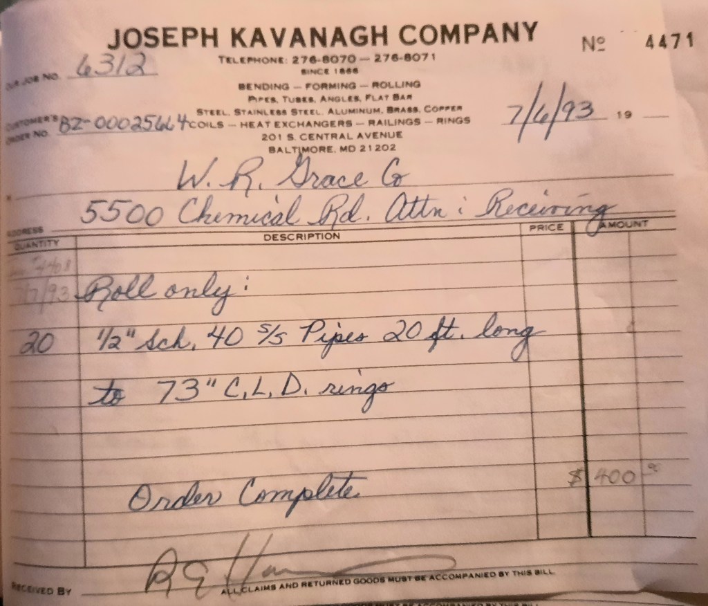 Another year begins at the Joseph Kavanagh Company. My sister Ann, brother Jack and I are the fifth generation of Kavanagh’s to work here and run the place. We have a few jobs on the books to start, a small order from Dan’s Welding and a larger one for Miscellaneous Metals. We also finish a job for Krug & Son, another very old metals business in Baltimore. The winter is generally our slowest time but we receive a few orders in this first week for Anchor Fence, Miscellaneous and a few others. We also have some heater work coming up: a re-tubing of a heat exchanger for the Housing Authority and a set of the copper u-bends themselves for Harvey Stambaugh & Sons.