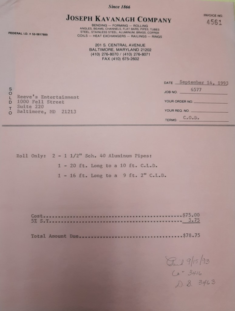 We finish a small job for an ornamental gate and when it’s picked up, we find out it’s for John Waters’ upcoming movie, “Serial Mom.” This often happens where we do a job and don’t really know the end user. The local production companies seem to change their names with each film so I had no idea. The movie work is always cool and I look forward to the film. I know I’ll see it.