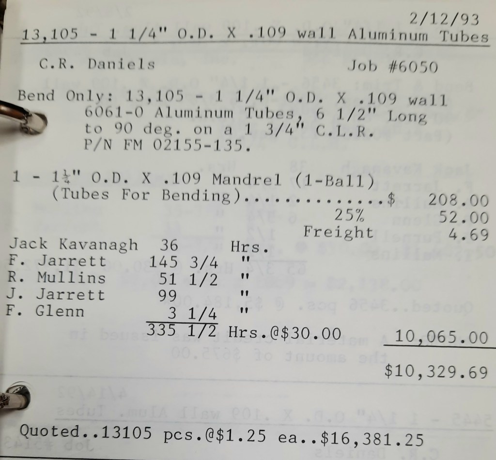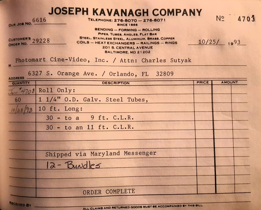 It’s a dreary Monday morning at the Shop. The crew enter the building in singles or pairs not looking like they are ready to start the week. I feel the same way. I chat with a few of the guys about the World Series which ended on Saturday. The Toronto Blue Jays repeated as champions this time defeating the Philadelphia Phillies. It was a good series going six games. My Birds had a decent season with 85 wins but that was only good enough for third in the American League East. When 7:30 arrives, it’s up and at ‘em for all of us. We make some samples for Equipment Development Corporation(EDCO) and wrap, package and ship sixty pieces of bent tube for a customer in Florida called Photomart Cine-Video. I don’t know much about them and am curious how they found us. I don’t always know but it’s a nice invoice to send out.