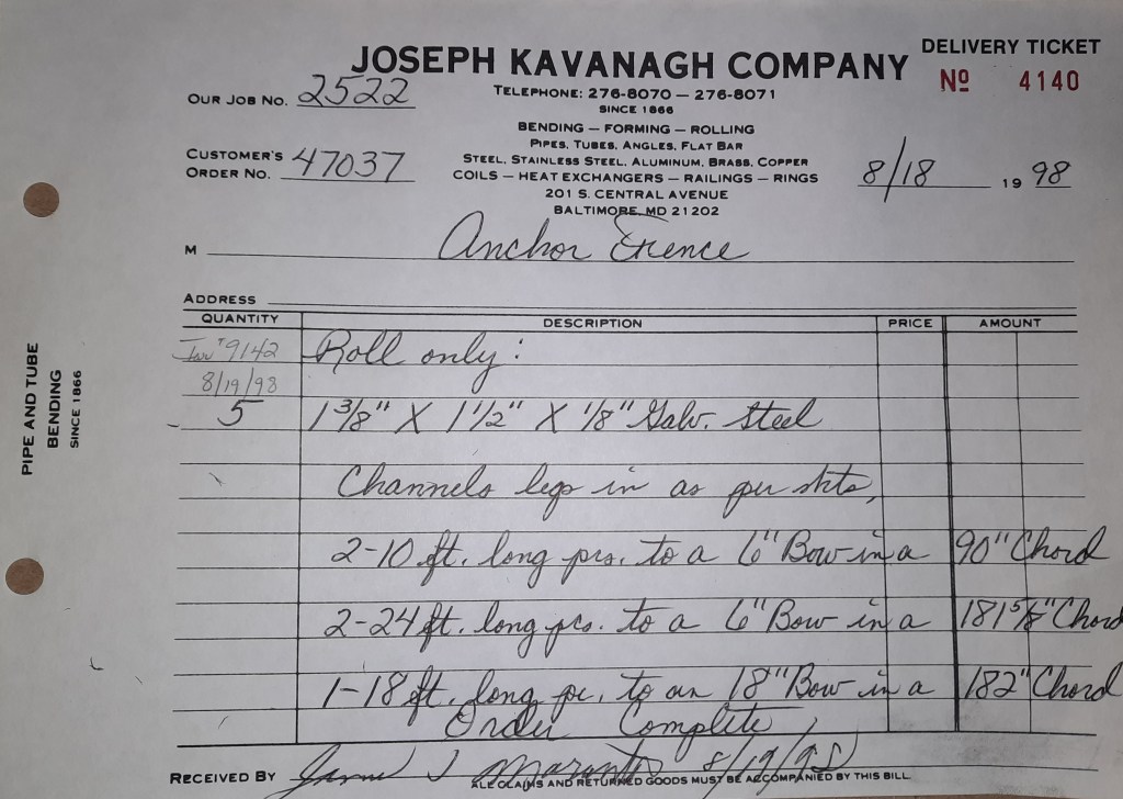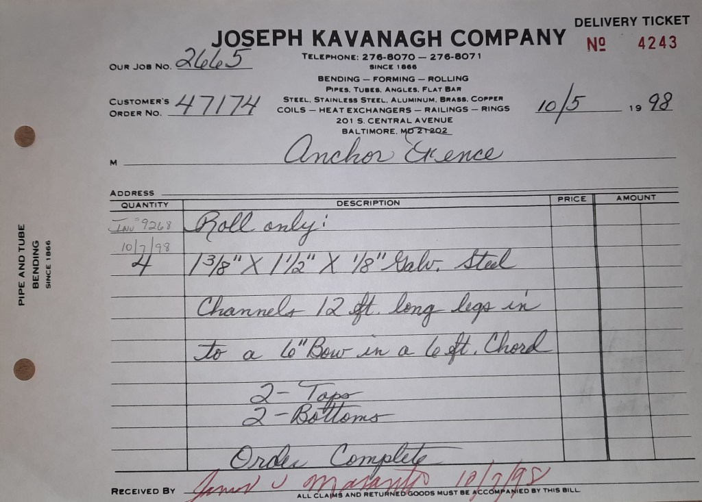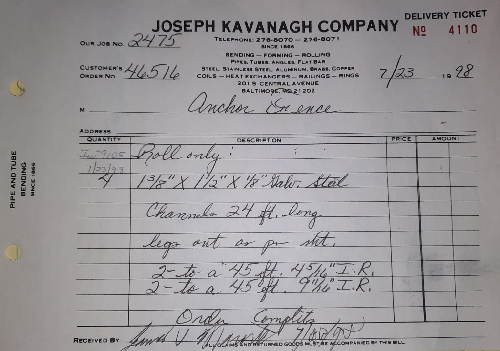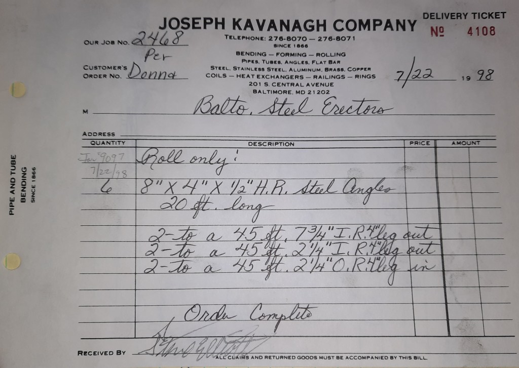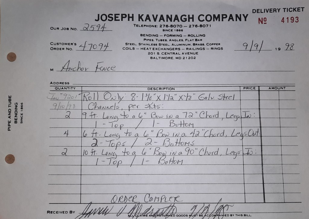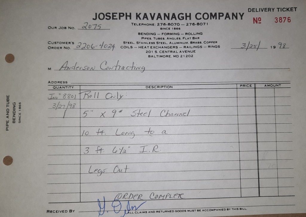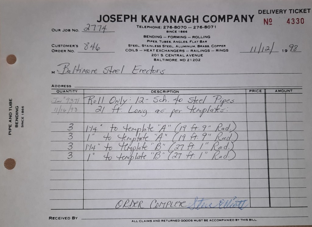 Things are not going well for the Orioles. We snapped a ten game losing streak two days ago but we are running out of games. Our playoff chances do not look good. On the flips side, the Ravens begin their season in the newly opened M & T Bank Stadium. Unlike Orioles Park where we rolled tons, we don’t get a great deal of work out of this one. I did find out after the fact some of our sign work earlier ended up at M & T but I have no idea who rolled the steel. It was probably some one from out of MD. That’s okay. You can’t win them all and the Ravens prove that by losing to the Steelers 20- 13. The team will go 6- 10 this year which isn’t great but it’s an improvement over last season.