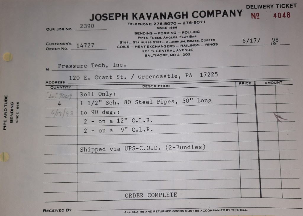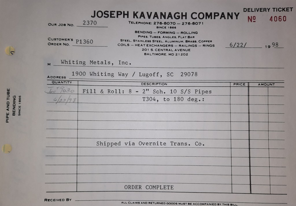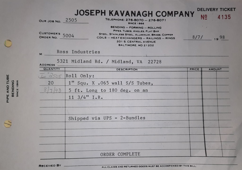 Today is a bit brutal at the Joseph Kavanagh Company. We have a set of 4” Square tubes we rolled for Sigma Industries. They needed to be filled before rolling and now they need to be melted out. Two snapper torches are lit and waved repeatedly along the tube to melt the hardened rosin inside. Once it starts to melt, it begins sliding out in black chunks. It’s the sort of thing that heats up the entire Shop. The men working on it are sweltering but everybody pays the price especially in July. A few other jobs are attended to including one of the recurring orders for Turnbull Enterprises. After work I watch the Birds beat the Boston Red Sox 3-2. They start yet another streak.