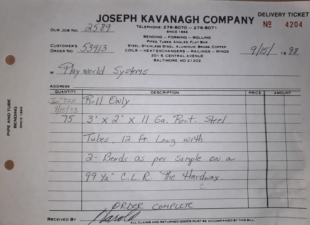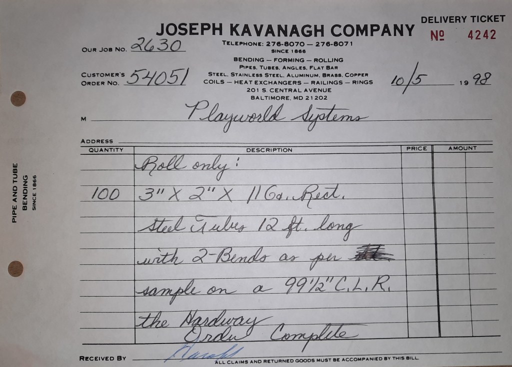 We’ve received another order for Playworld Systems and it is completed today. This one is a much bigger quantity and I’m happy to see it. I’m hoping they become regular with recurring parts to make. Those are good customers to have and they help keep the flow of work moving. Between loading Playworld’s truck and a common carrier shipment for Riggins Company to Hampton, VA, this is very much a truck day.