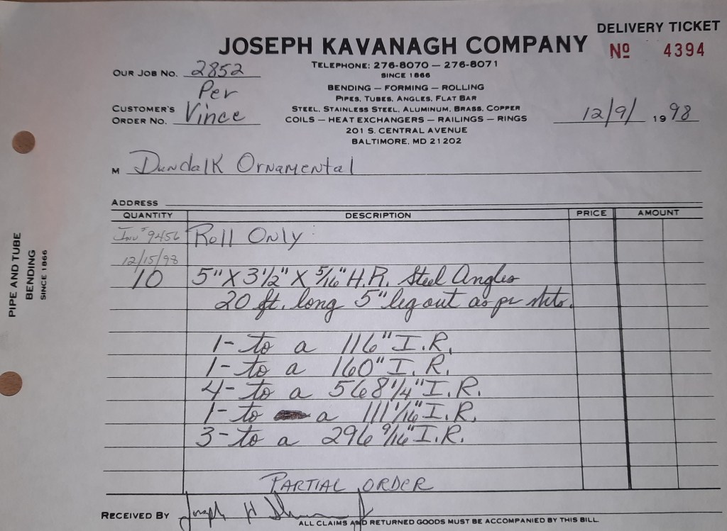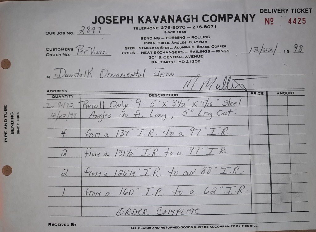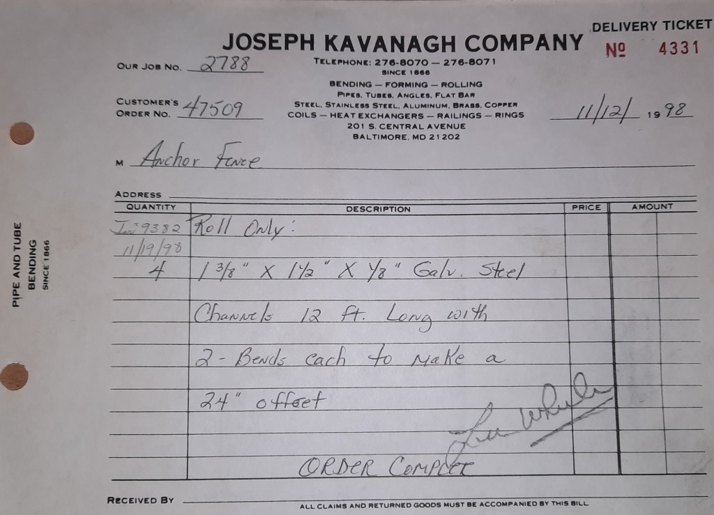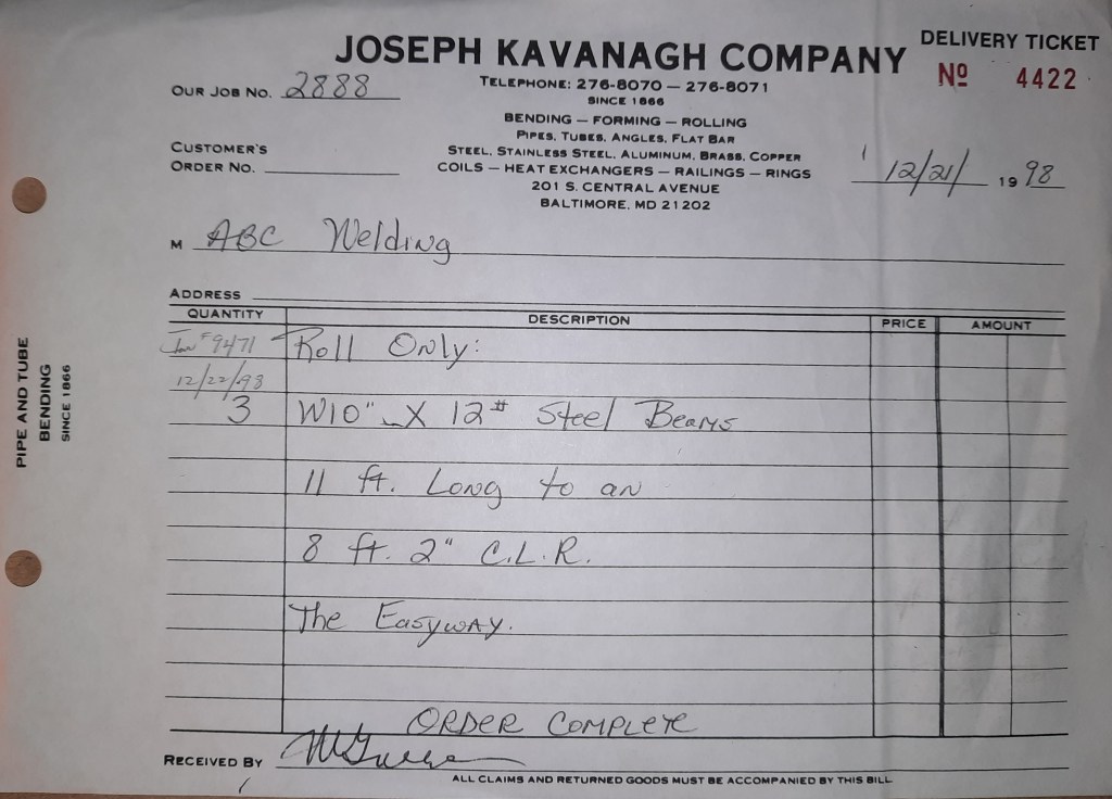 Another year has begun at the Joseph Kavanagh Company. Kavanagh’s and crew return to Central Avenue and get back to our duties. I enjoyed my first holiday with my son but all good things must come to an end. We had jobs on the books for our return and more have come in this week. Year 133 starts with work for a couple of our regulars, Anchor Fence and Stambaugh & Sons and several other local fabrication shops.