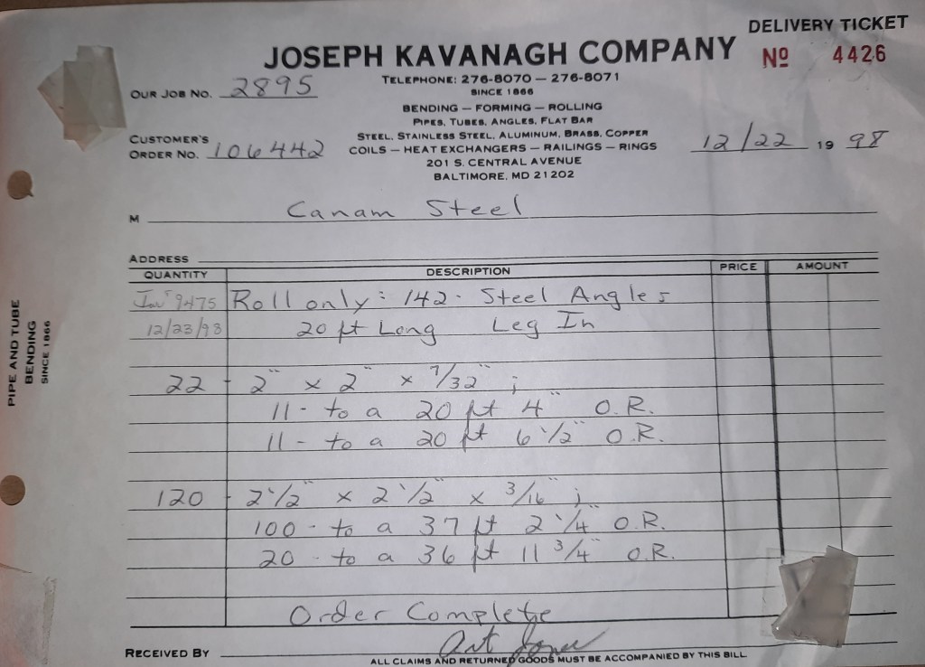 It’s our final day of work before we escape for the year. Everyone is in a festive mood and looking forward to the holiday. Wilton Corporation, ABC Welding, Dundalk Ornamental Iron Works and Canam Steel pick up and we are done.