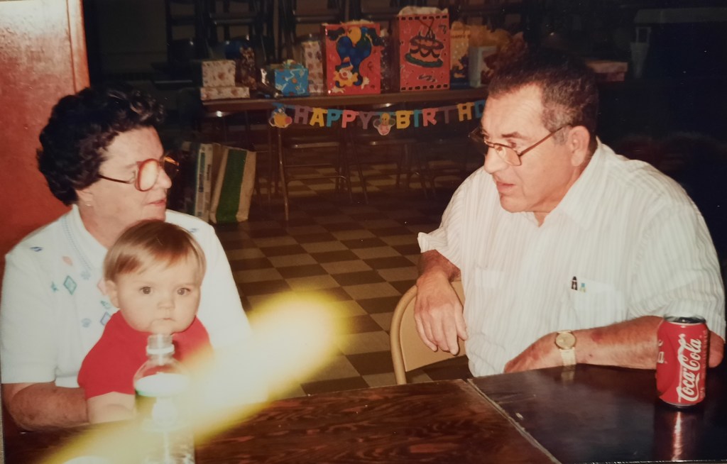 Dad reaches over to Joe and pinches his cheek. “Boozie gitzie.” He has said this to every Kavanagh baby and none of us know quite what it means. Kim and I grin at each other and I shake my head. That’s my Dad for you. We have a great weekend. Mom and Dad love the time with Joe and we drive home on Sunday.