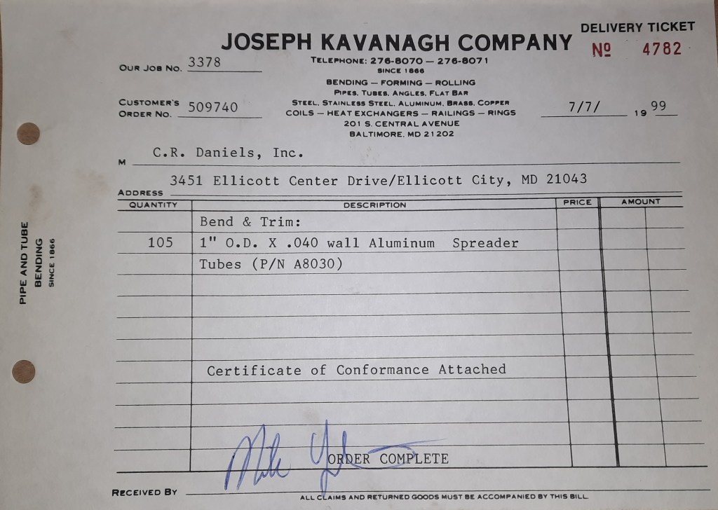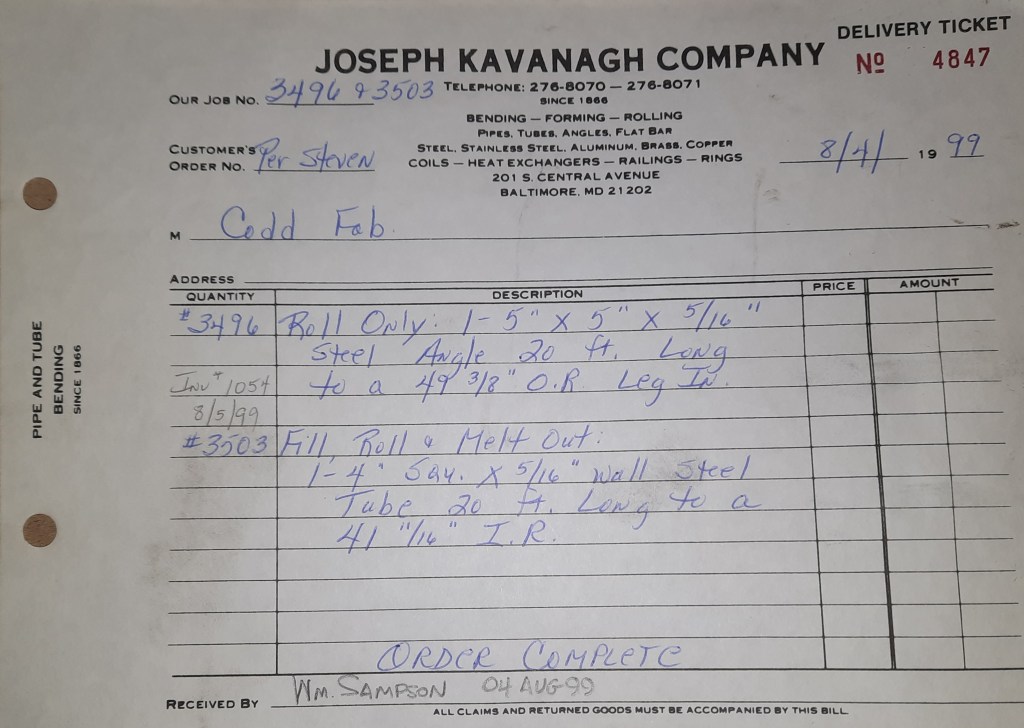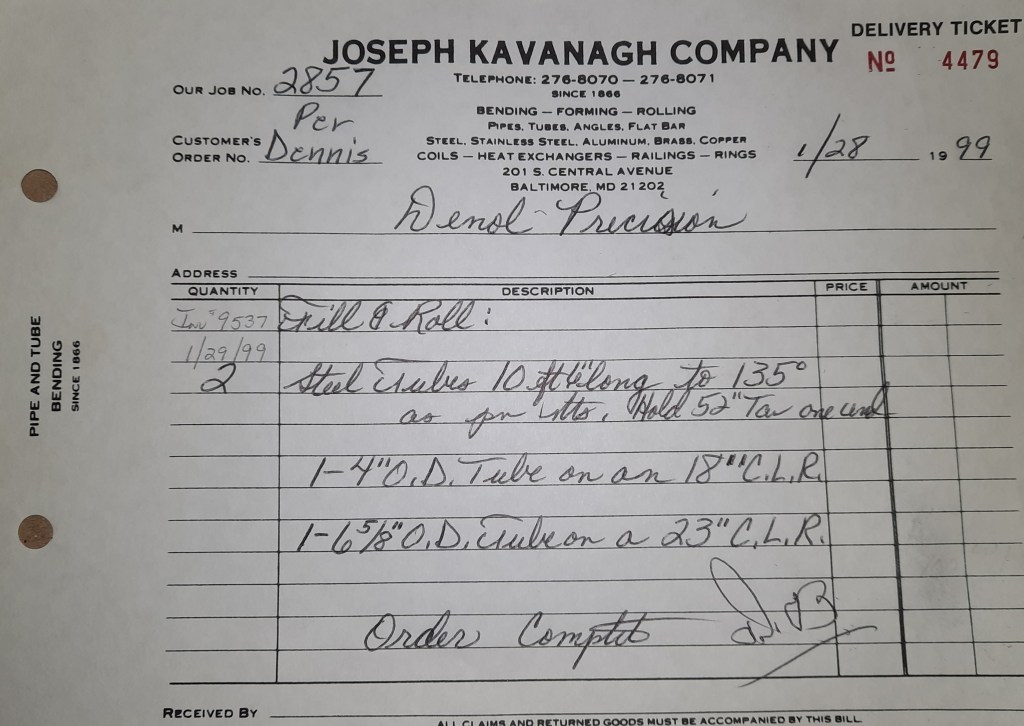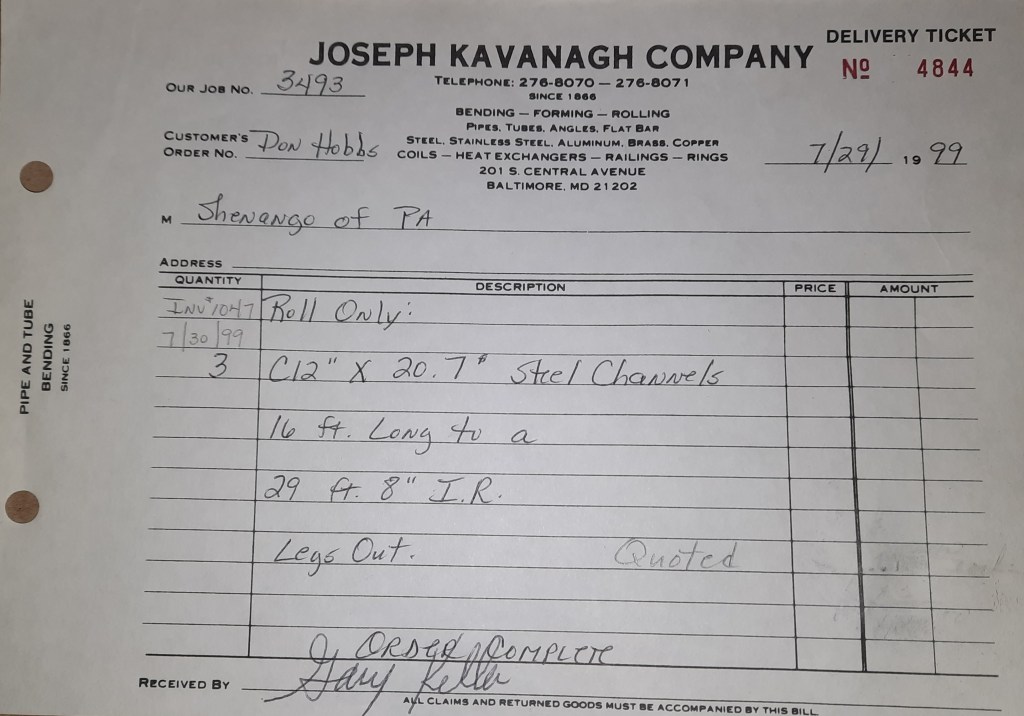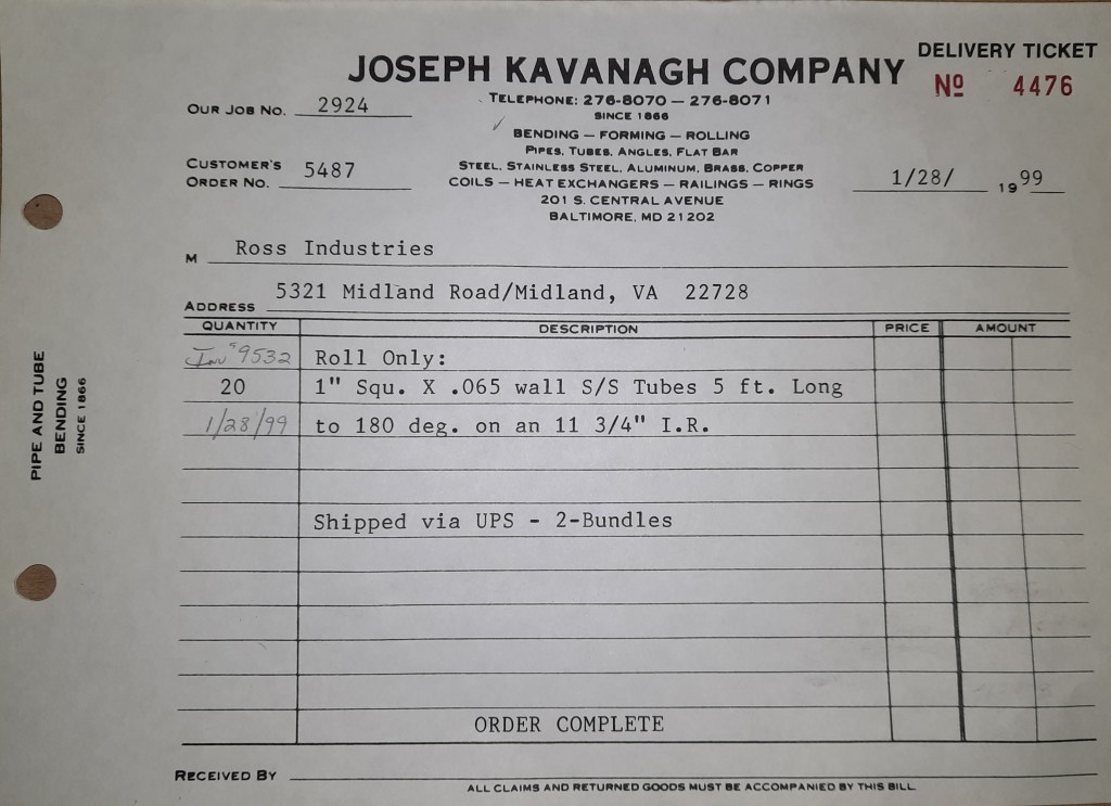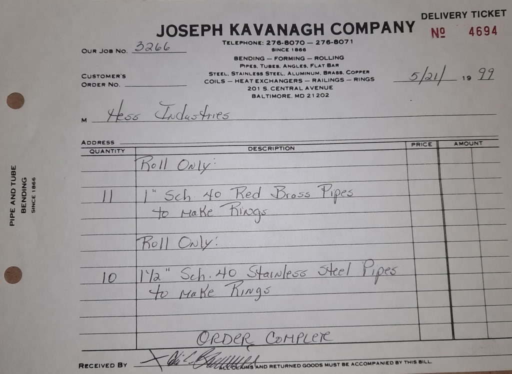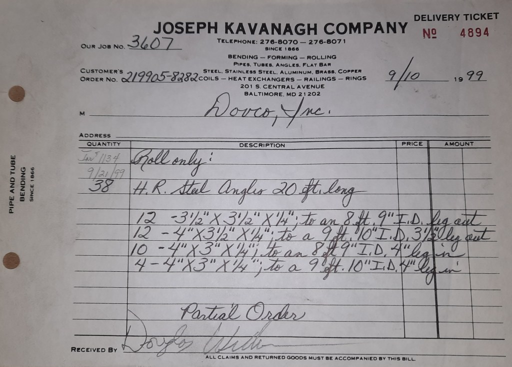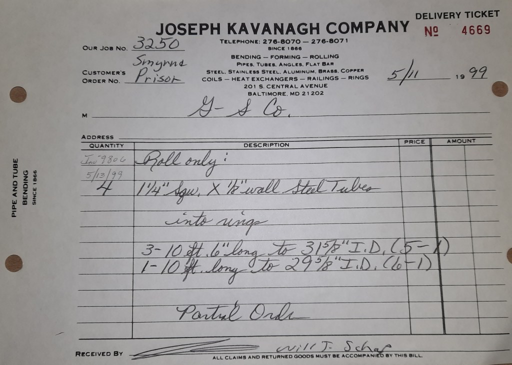 It’s unseasonably warm at the Shop on this Tuesday. February is usually Baltimore’s coldest month but so far the highs have been in the upper 40 degrees. As someone who hates the cold, I’ll take it. We’ve been steady if not busy to start the year and I’ll take that too. A few jobs are completed today and I fill out delivery tickets for R and R Fabricators, Dundalk Ornamental Iron Works and John Gutierrez Studios.