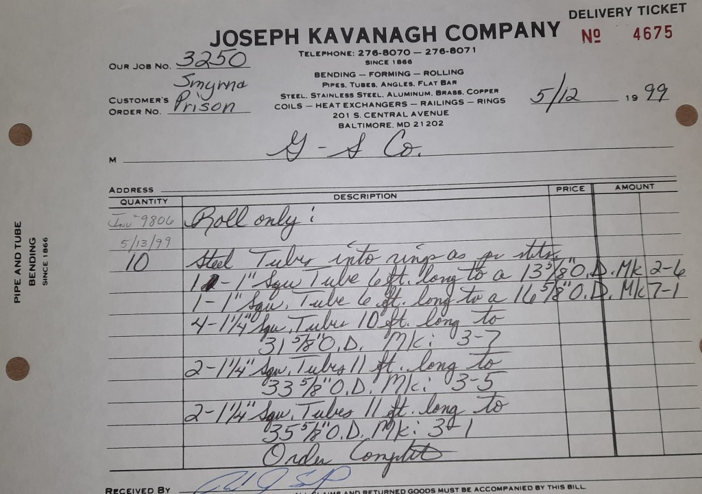 It’s a rainy Tuesday at the Shop but a busy one. The volume of work has shot up and we have a good bit on the books. One job today for G-S Company will end up in the Smyrna Prison in Delaware. We don’t always know the end user but this one is interesting. We did heat exchangers and a few things for Baltimore City Jail in years past but never for an out-of-state prison. I often say this about my job, it’s always something different from one to the next.