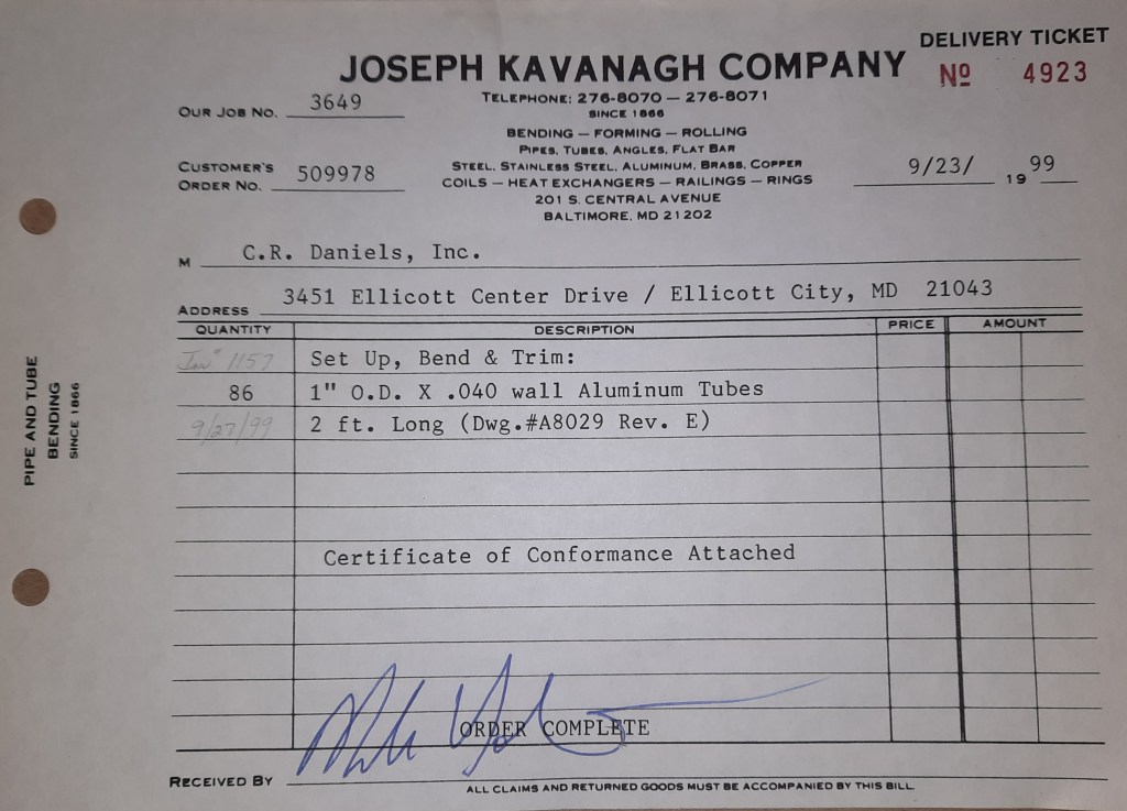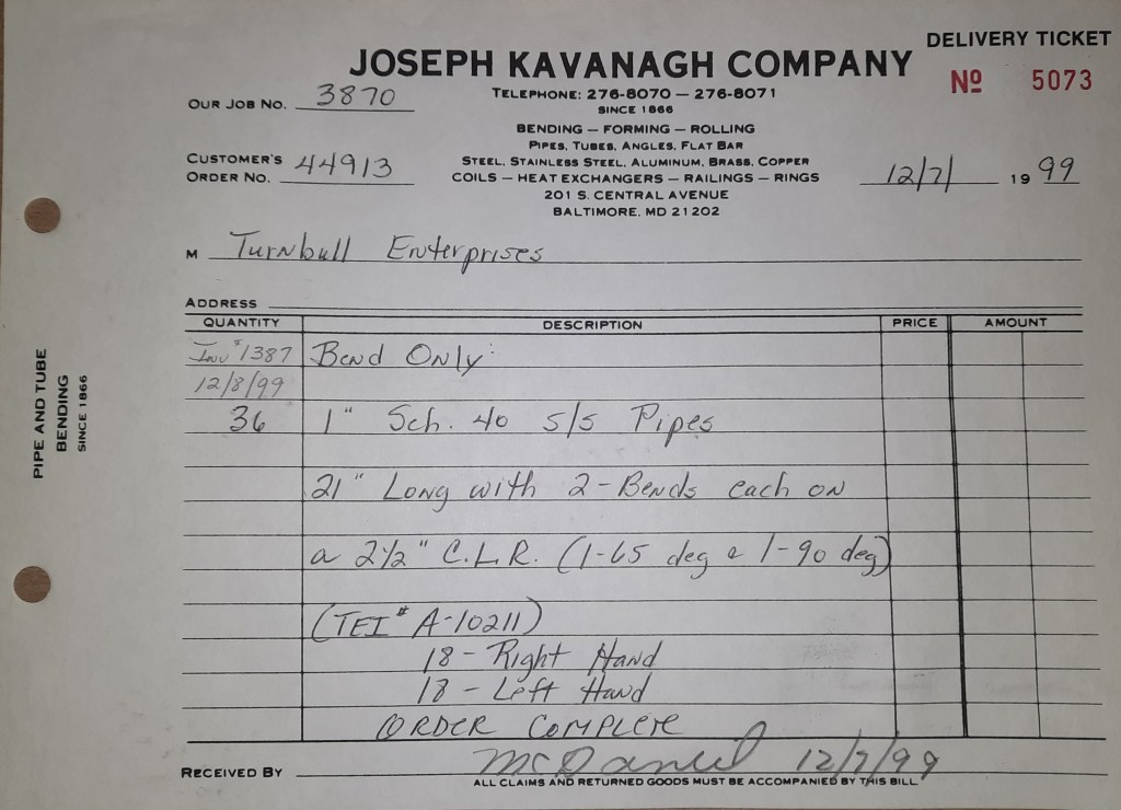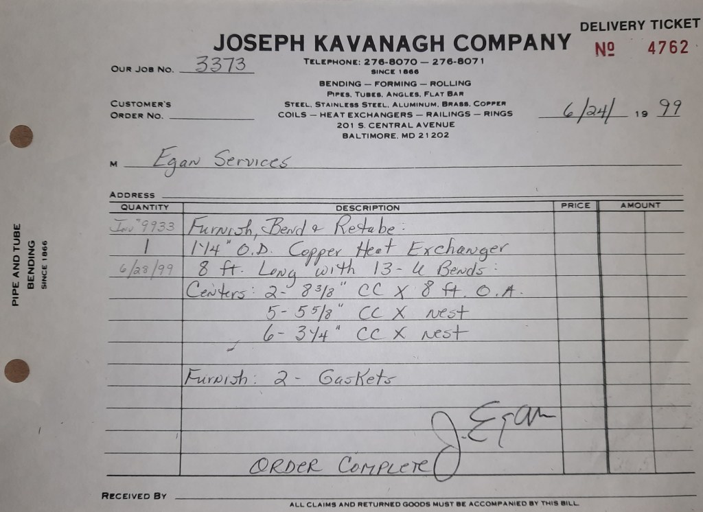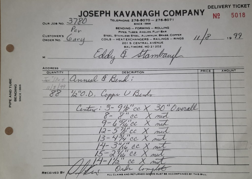 It’s a cold and windy day in Baltimore. I speak to Gary Stambaugh and he informs me that Eddy’s Welding and his company have merged to form Eddy and Stambaugh. We’ve been doing work for Stambaugh for decades. It’s usually sets of copper u bends for heat exchangers but occasionally some rolling of steel. I congratulate Gary and let him know we have a set of tubes ready for him today.