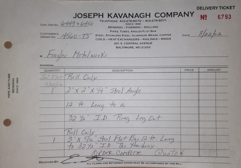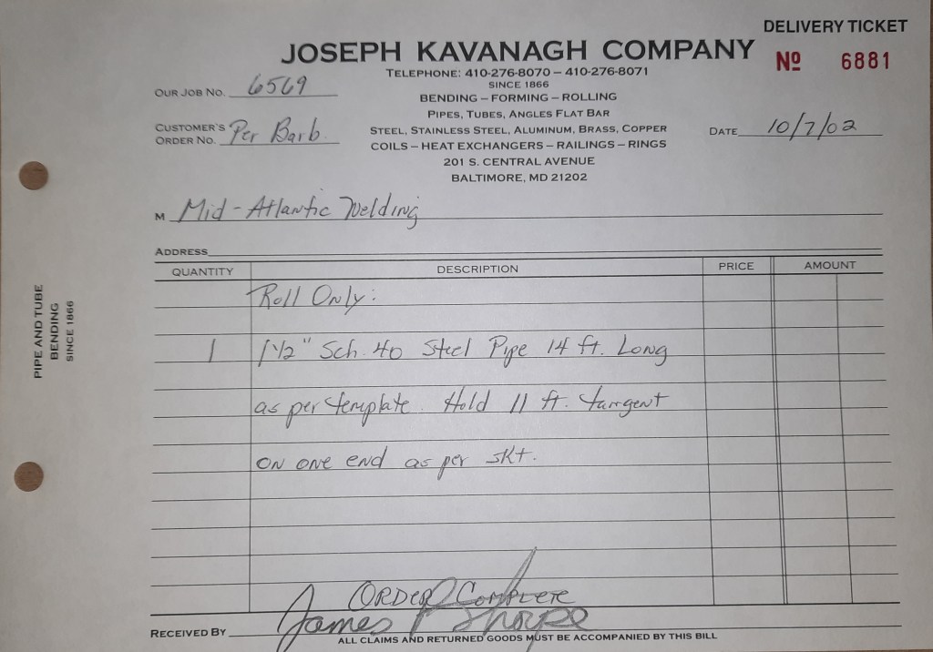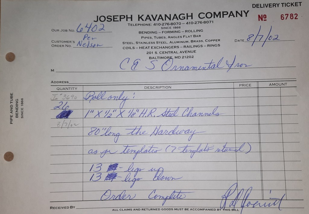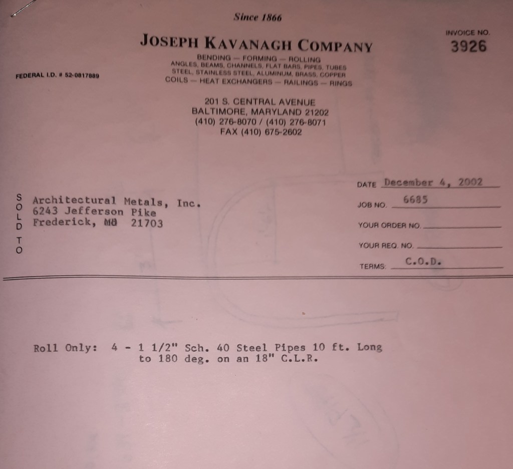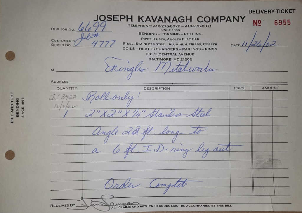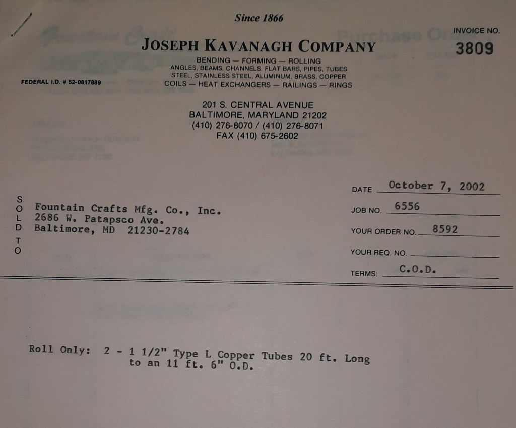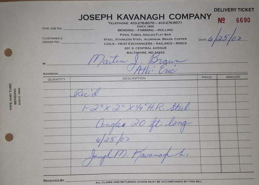 It’s a hot and humid day at the corner of Pratt and Central. The volume of work has shot up along with the temperatures. Today we’re making some parts for a skylight company and a few of our fabrication customers. We have copper tubes for a fountain to do later in the week and we receive some pieces from Martin J. Braun. The driver needed me to sign one of our tickets for him to confirm receipt. That seems strange to me but every once in a while someone needs it. Paul seems to be fitting in quite well with the crew. He’s hot and sweaty today just like the rest of us.