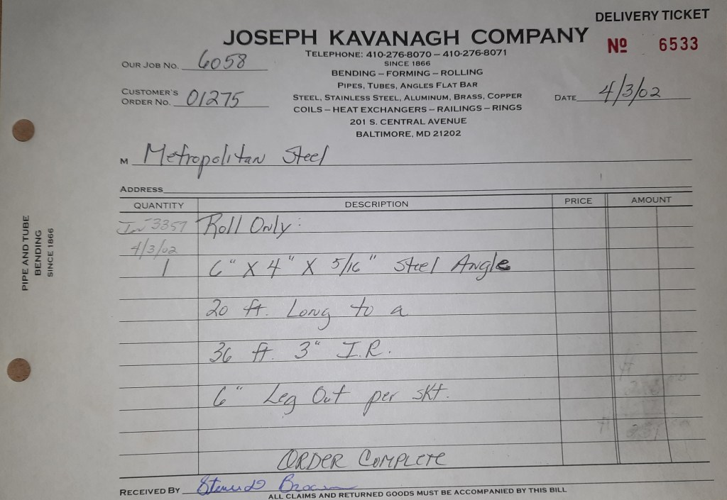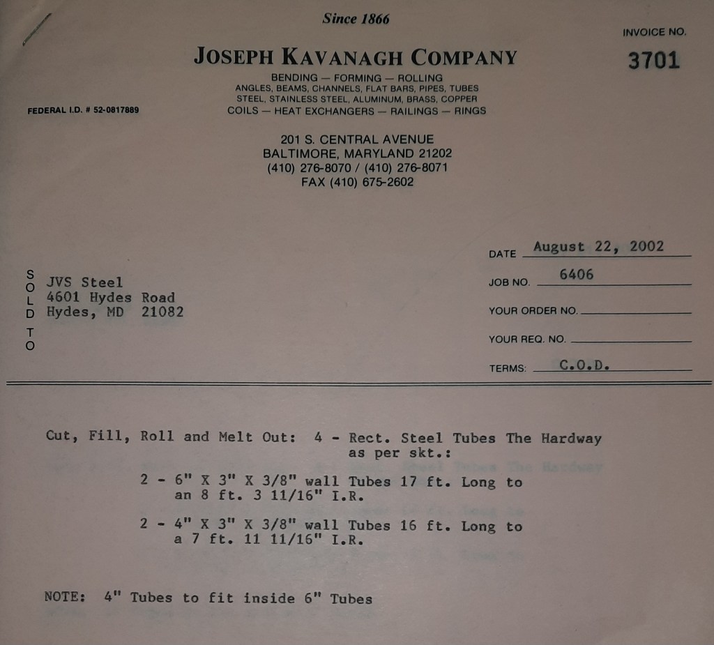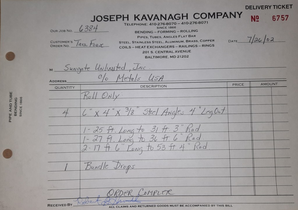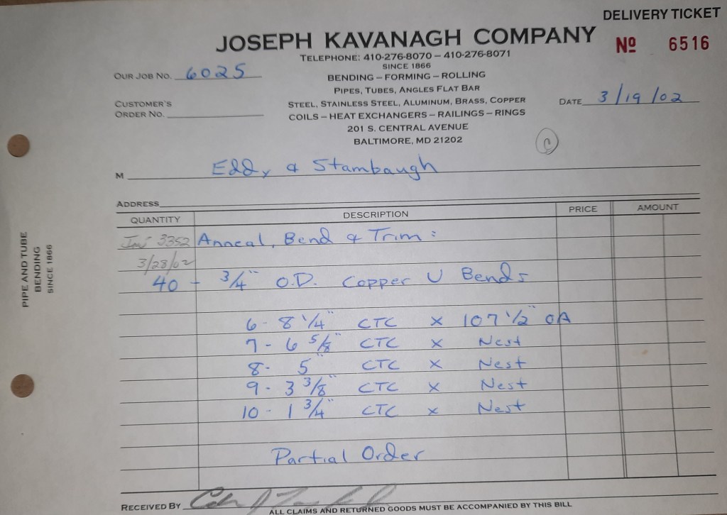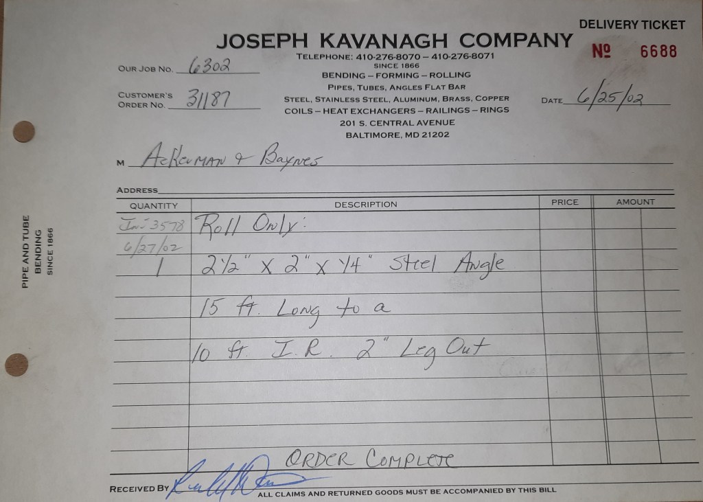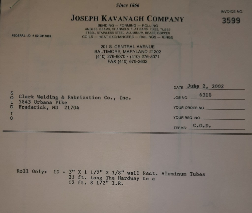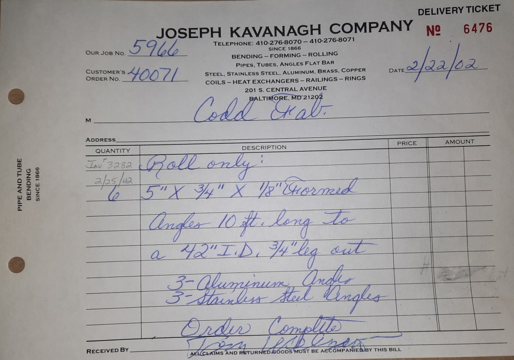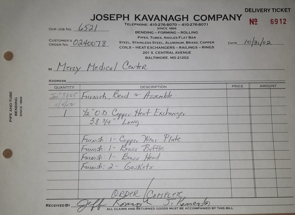 It’s a hot and humid day at the corner of Pratt and Central. The volume of work has shot up along with the temperatures. Today we’re making some parts for a skylight company and a few of our fabrication customers. We have copper tubes for a fountain to do later in the week and we receive some pieces from Martin J. Braun. The driver needed me to sign one of our tickets for him to confirm receipt. That seems strange to me but every once in a while someone needs it. Paul seems to be fitting in quite well with the crew. He’s hot and sweaty today just like the rest of us.