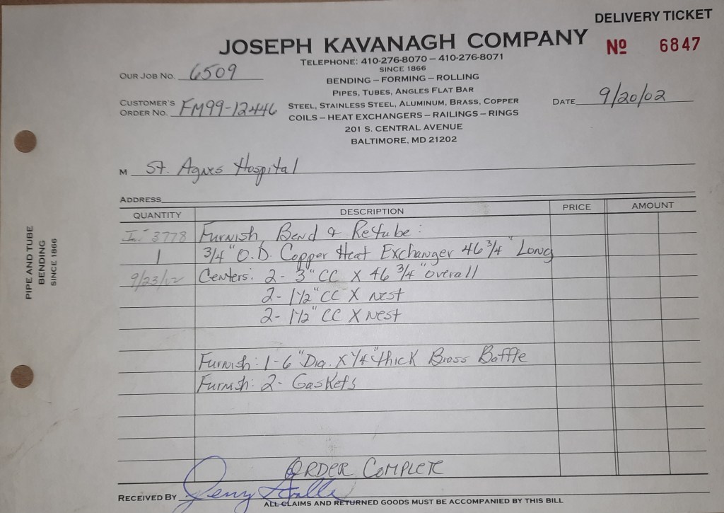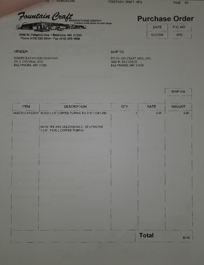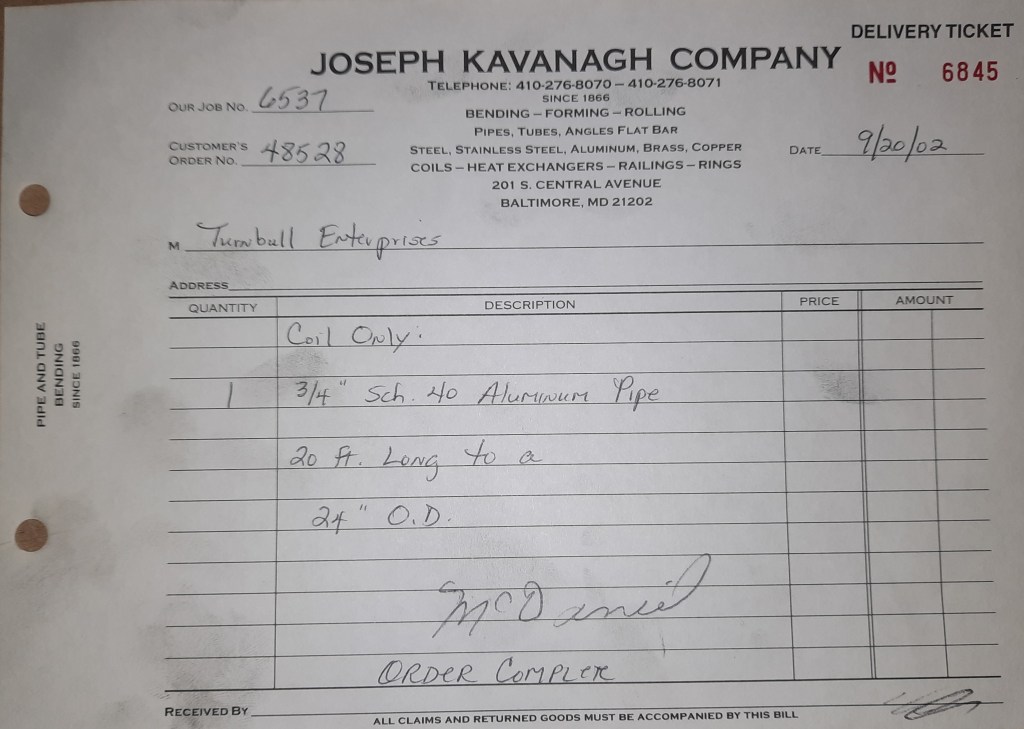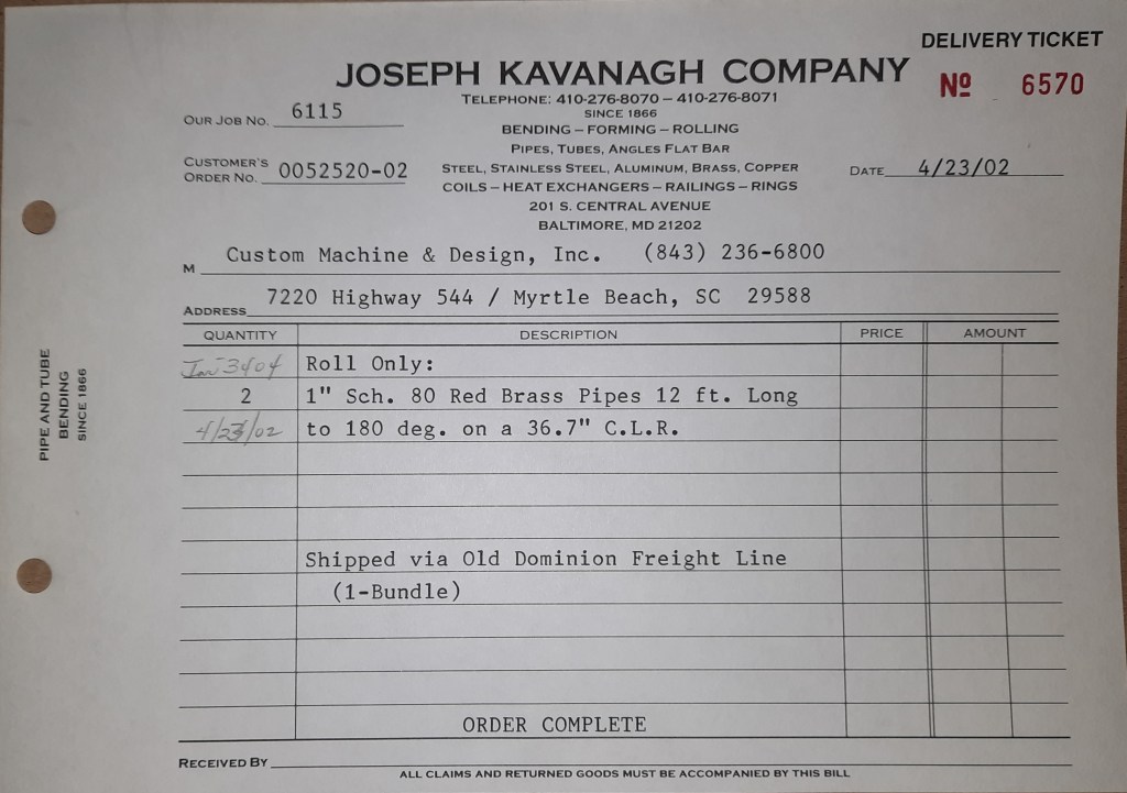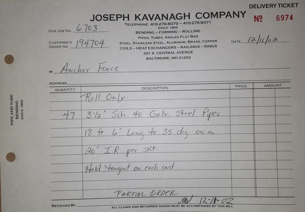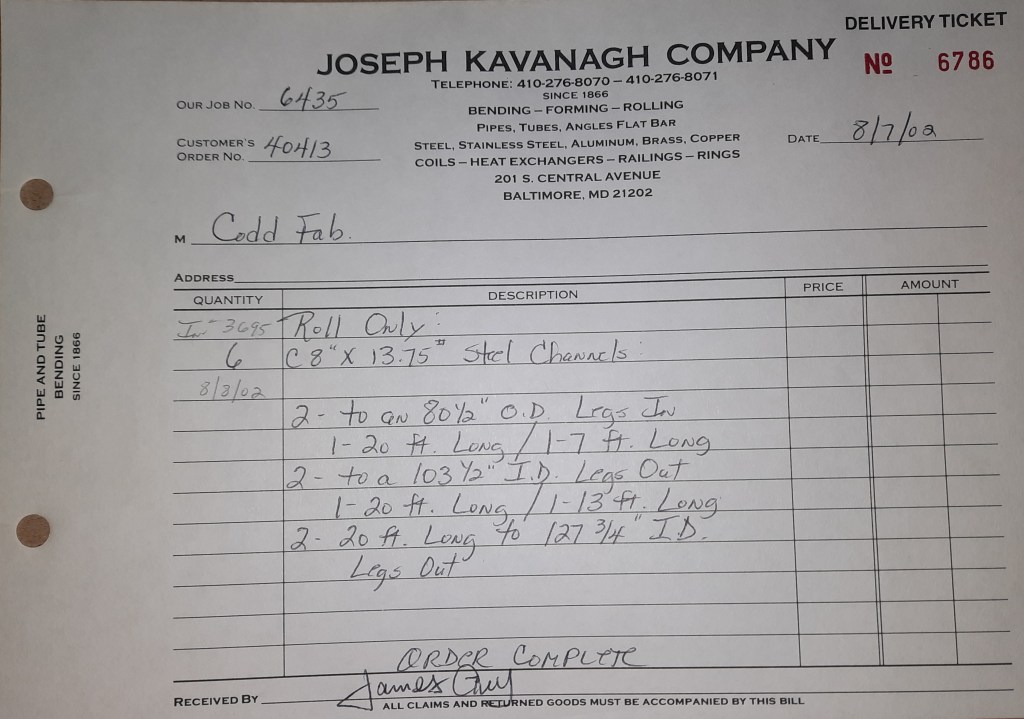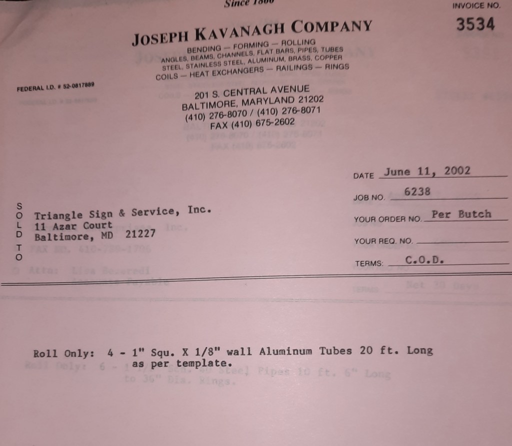 It’s a hot and humid day at the corner of Pratt and Central. The volume of work has shot up along with the temperatures. Today we’re making some parts for a skylight company and a few of our fabrication customers. We have copper tubes for a fountain to do later in the week and we receive some pieces from Martin J. Braun. The driver needed me to sign one of our tickets for him to confirm receipt. That seems strange to me but every once in a while someone needs it. Paul seems to be fitting in quite well with the crew. He’s hot and sweaty today just like the rest of us.
