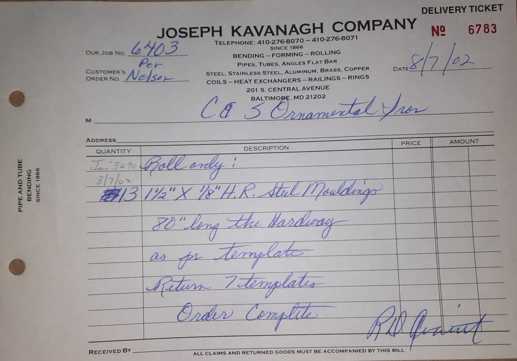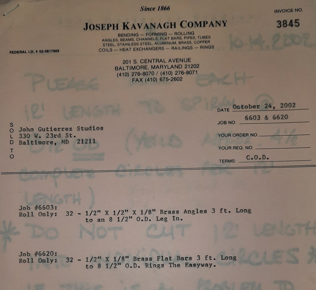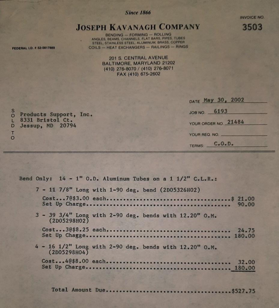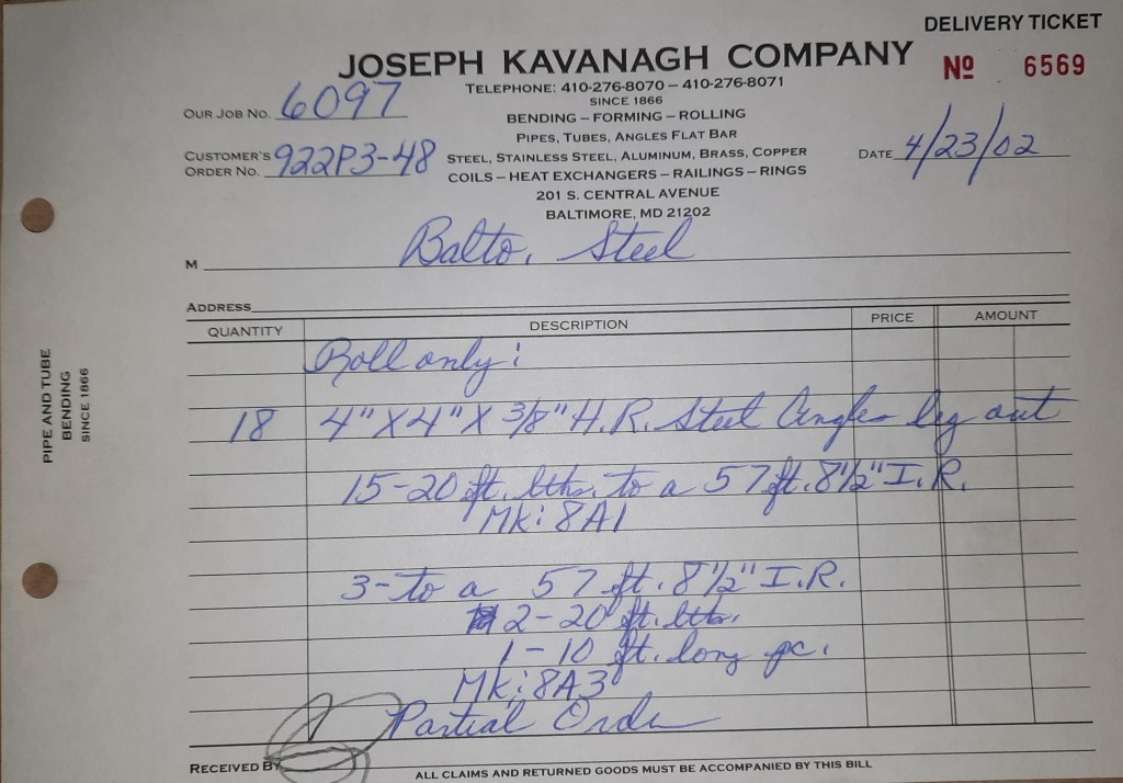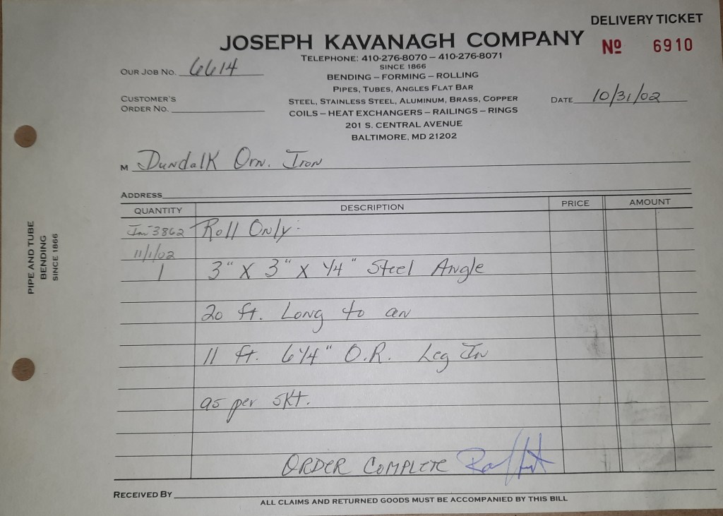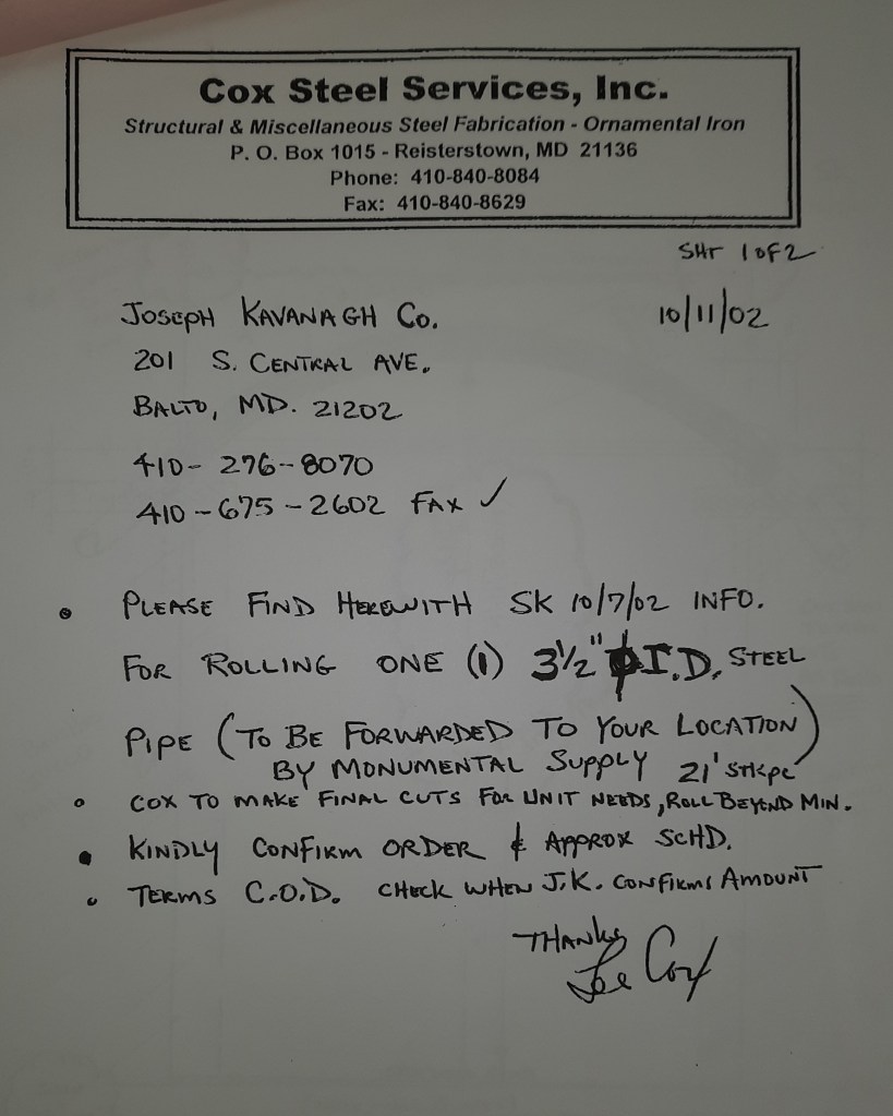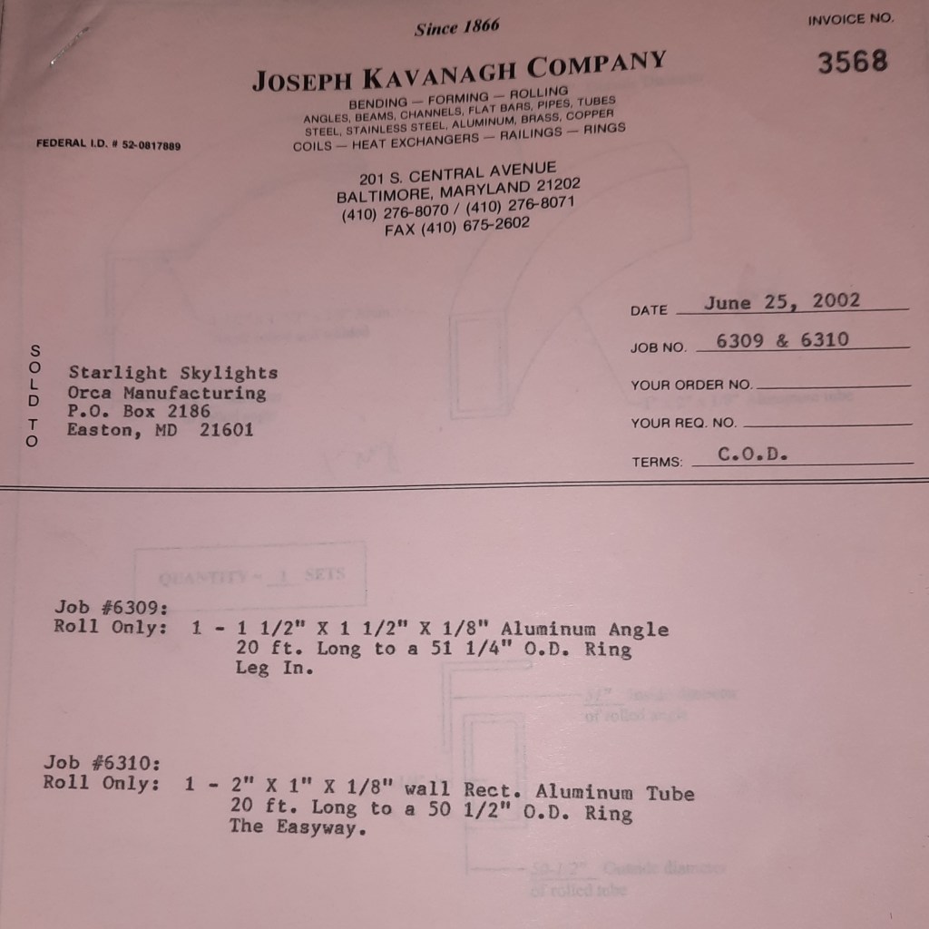 It’s a hot and humid day at the corner of Pratt and Central. The volume of work has shot up along with the temperatures. Today we’re making some parts for a skylight company and a few of our fabrication customers. We have copper tubes for a fountain to do later in the week and we receive some pieces from Martin J. Braun. The driver needed me to sign one of our tickets for him to confirm receipt. That seems strange to me but every once in a while someone needs it. Paul seems to be fitting in quite well with the crew. He’s hot and sweaty today just like the rest of us.