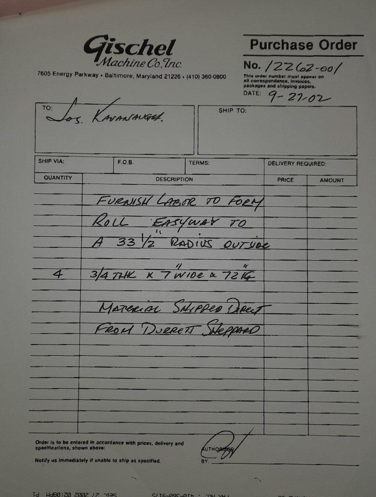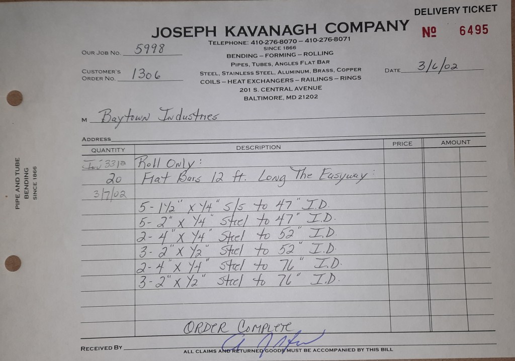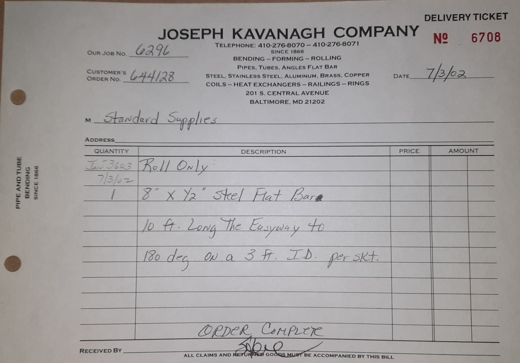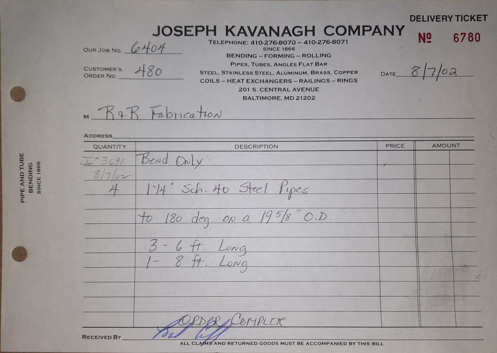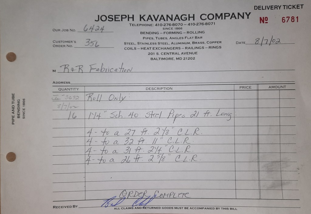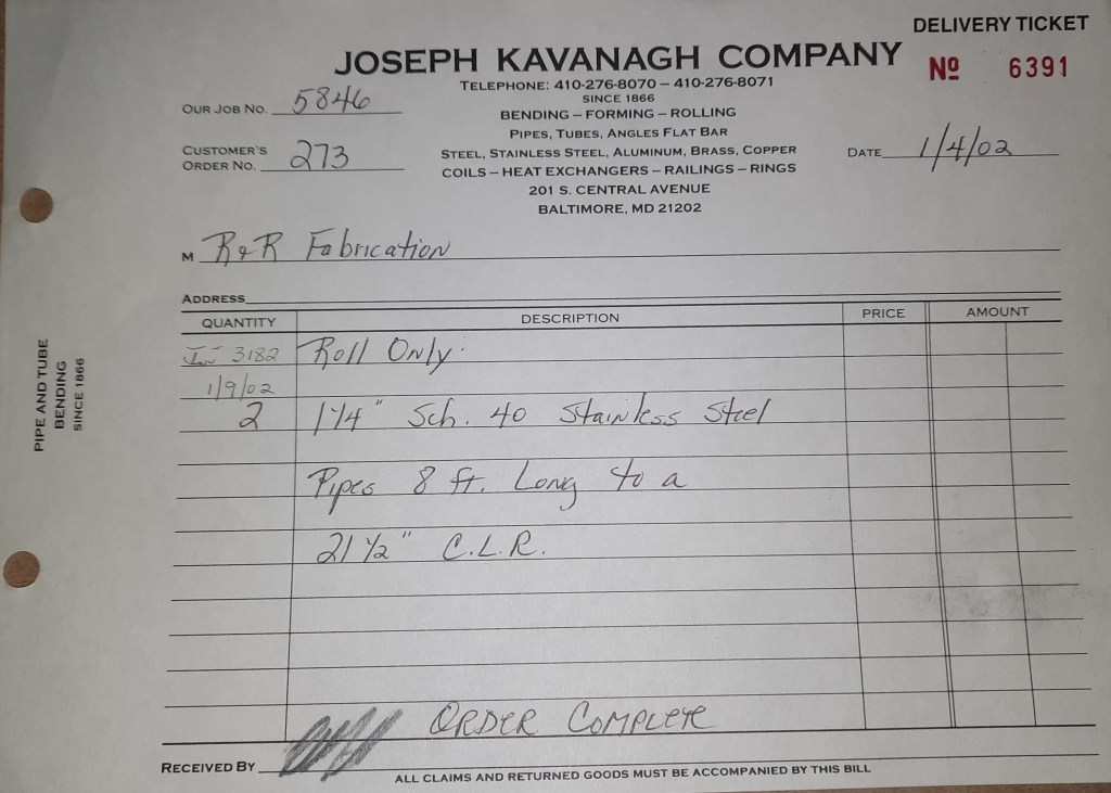 The crew and Jack and I are in the front of the Shop during the morning coffee break. A rain shower has just started with the boys gather around sitting on chairs or buckets. We’re discussing the Orioles who are 47-51. They can’t seem to get any consistent run of wins going. They seem stuck a little below. 500. We’re halfway through the season and running out of time to get hot. After a few moments of silence staring at the rain, I get the boys back at it. We have our usual mix of bending and rolling for fabrication and welding shops but today, we also bend a boat rail. We get these periodically. It’s usually an individual and not a business but as long as they give us the old rail or something to match, we are good.