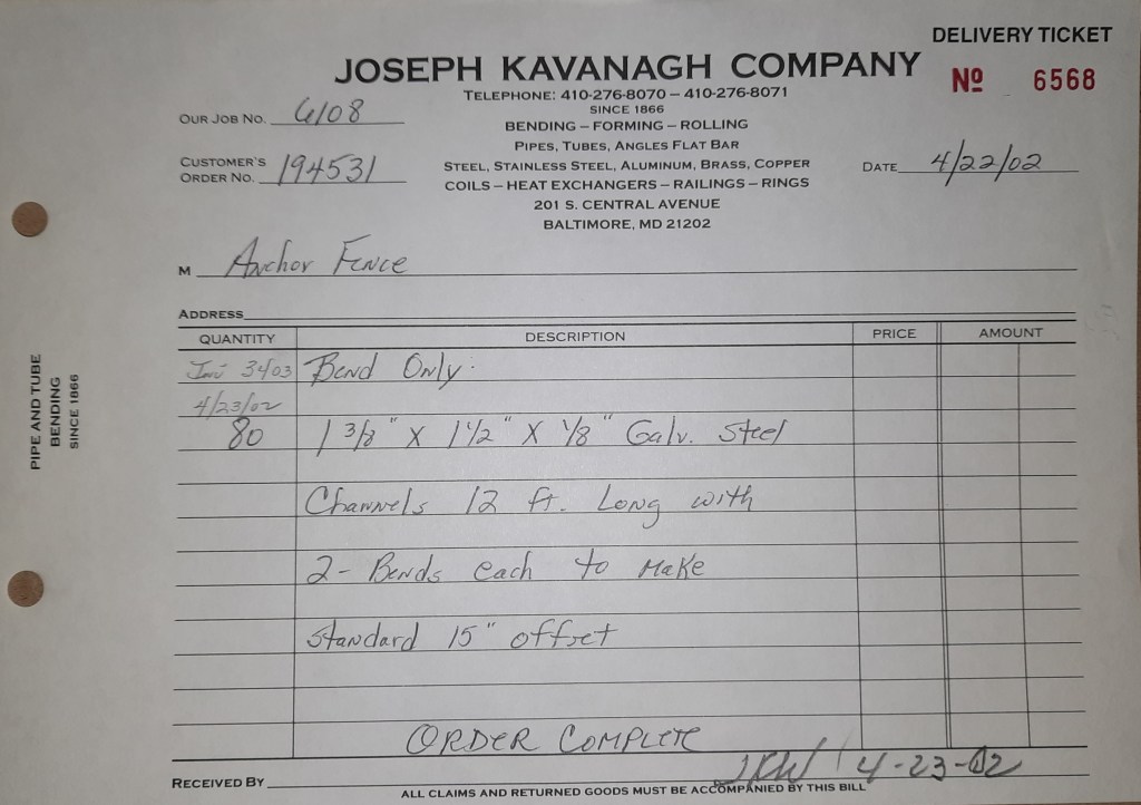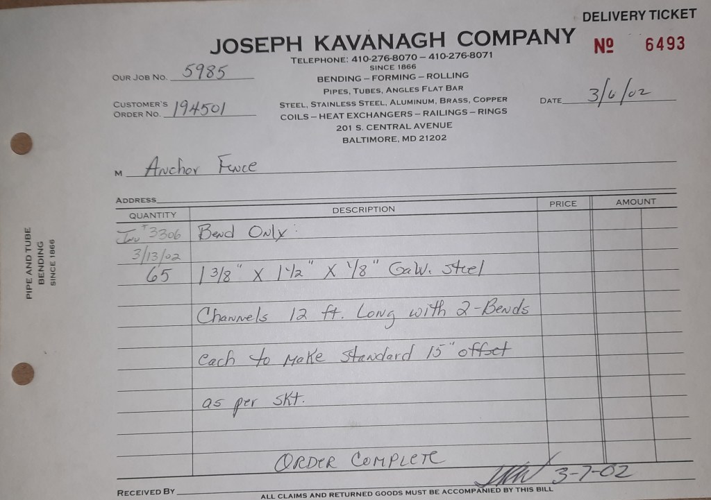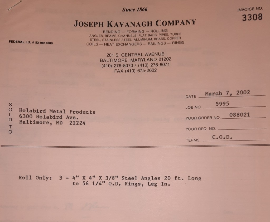 It’s Opening Day in Baltimore and the Orioles welcome our longtime rivals, the New York Yankees. We beat them 10-3 and that’s a great way to start the season. A win is good but a win over the Yanks is always better. In the Shop, we’re working on a large order of playground parts for Playworld Systems and some structural pieces for Metropolitan Steel. We sneak out a little early to get home and watch the ballgame.