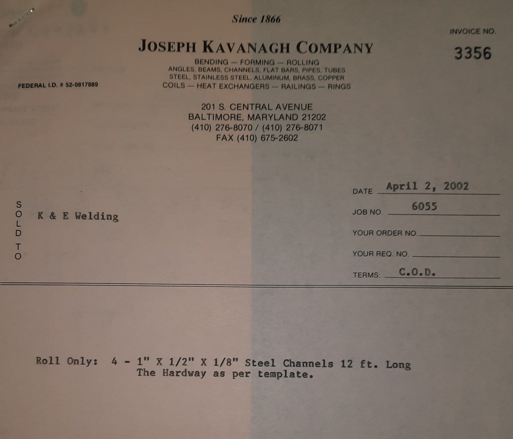 The last Friday before vacation has arrived and we are very anxious to get out of here. A few small jobs are completed but most of the day is spent loading trucks. Around 2 pm, C & S Ornament Iron’s and Codd Fabricators’ trucks pull away and the day is over. I am thrilled and ready to spend a week with my boy and my expecting wife.