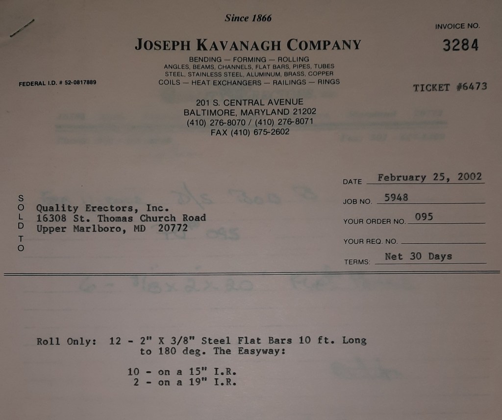 Kim and I watch the Winter Olympics Closing Ceremonies on this Sunday evening. We enjoy the elaborate event that each hosting city presents. The games and the ceremonies are something which we both really enjoy and this year is no different. As I switch off the TV and head to bed, my thoughts are at the Shop. We have a job for Quality Erectors that is finished. I’ll have to call Butch Herbert who runs the place first thing in the morning. Butch is a good fellow. An older gentleman and someone who has always been fair and good to me. Quality is one of my favorite customers to deal with because Butch is smart and knows his stuff.