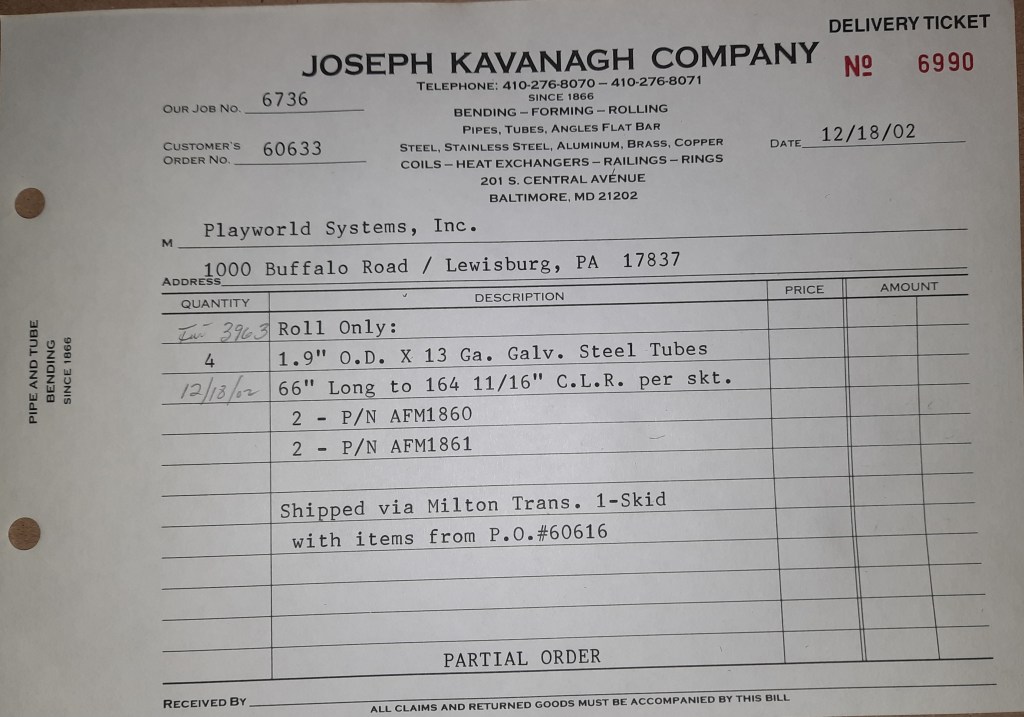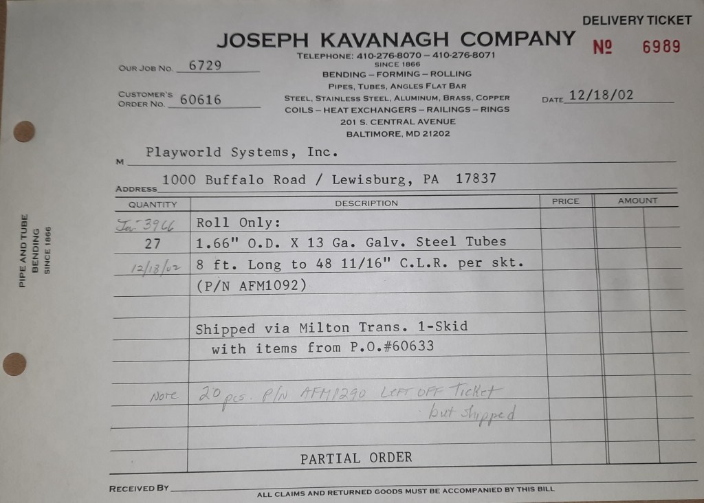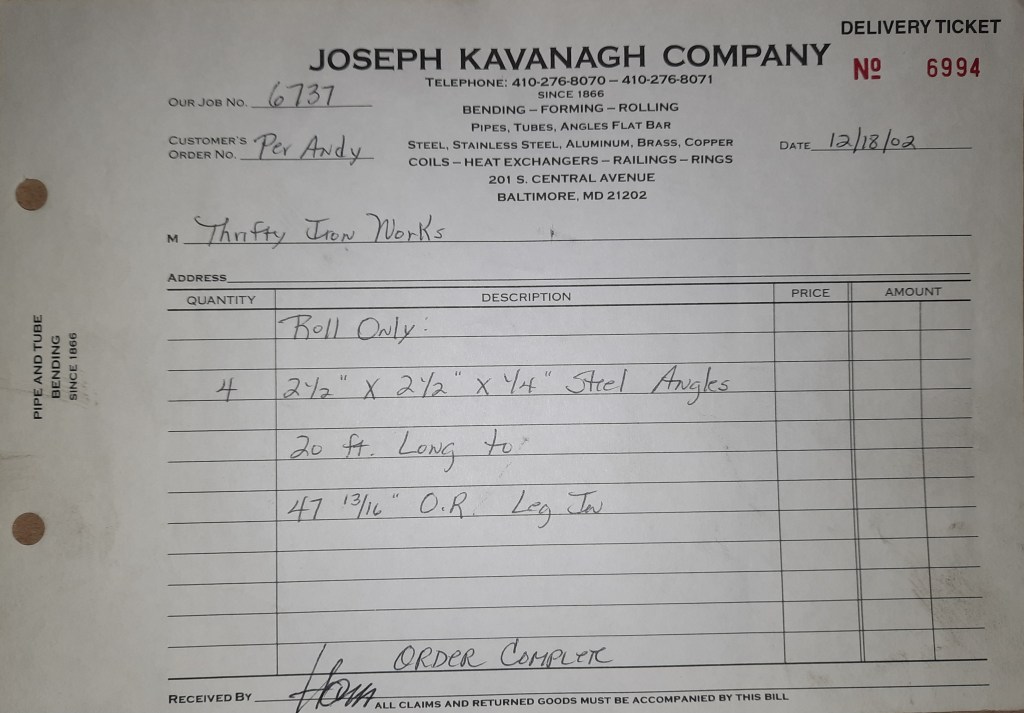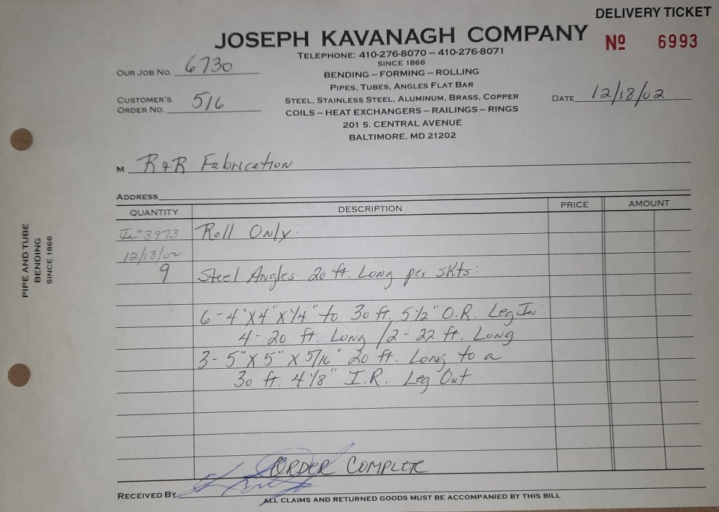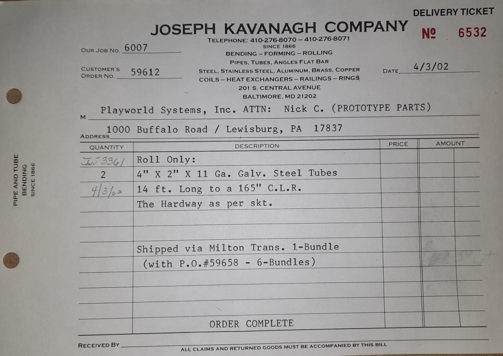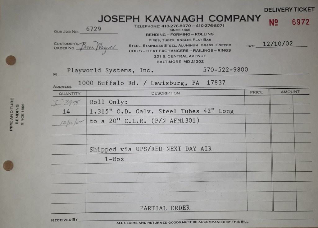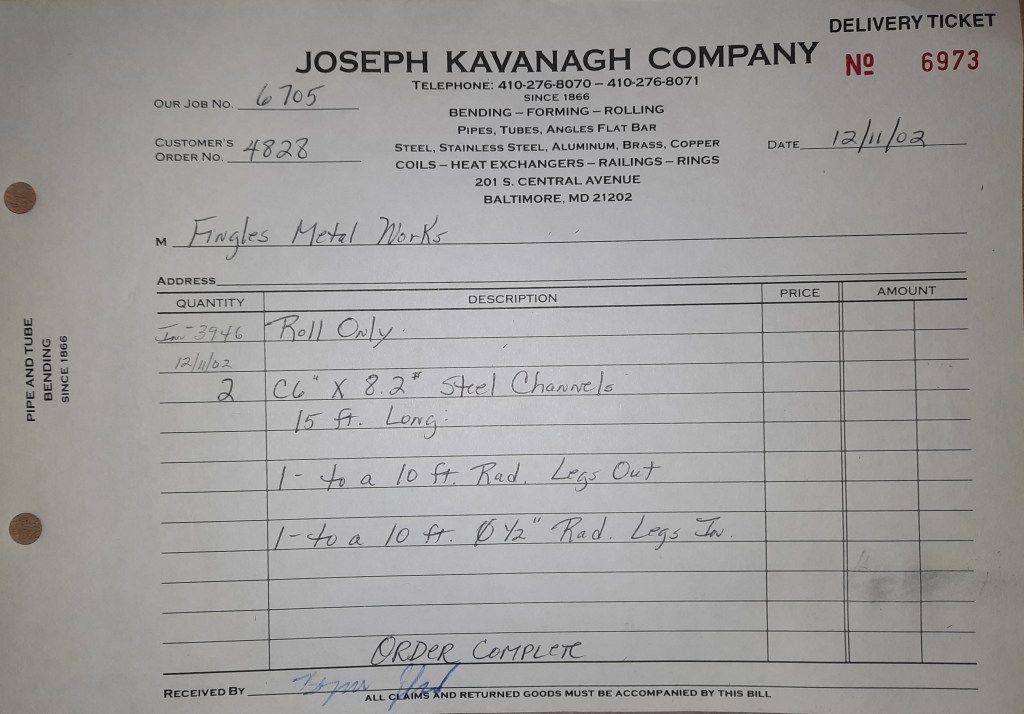 It’s a rainy chilly day at the Shop but everyone sees the end of the year approaching. We’ve taken the week off between Christmas and New Year’s for decades. It’s a tradition both Kavanagh’s and crew appreciate. Today a wide range of jobs are finished from playground parts to bent channels and pipes. After each is completed, it’s on to the next as we barrel toward the holidays.