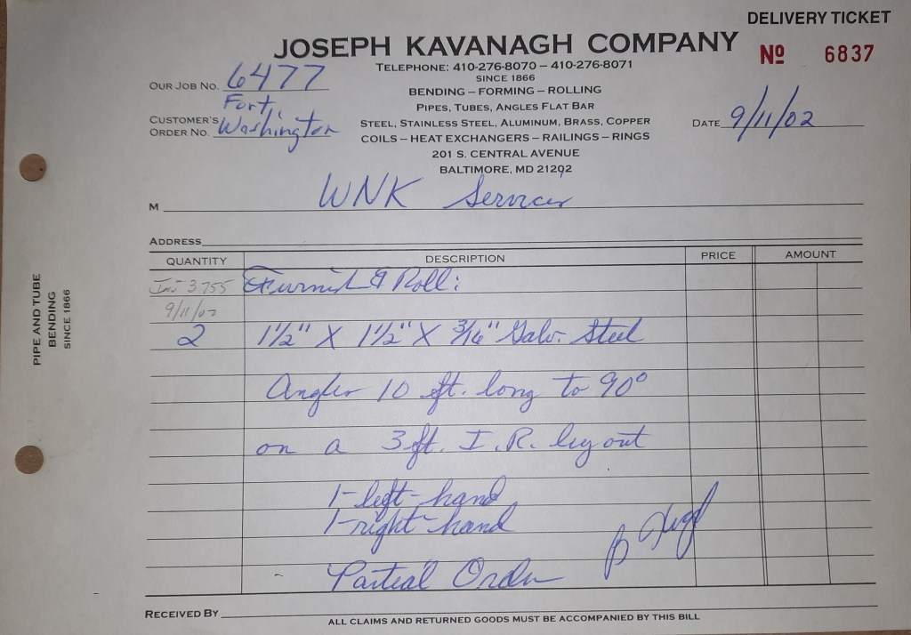 One year ago today, the world changed. The 9/11 attacks are marked with moments of silence and patriotic events around the country. America wants us to remember and we will. In fact, how could we forget? The impact and effects are still very fresh. So we pause and think and honor those who lost their lives then the day goes on. At the Shop, it’s a rather quiet somber day. Work is done but everyone’s thoughts are on what happened last year. I suspect the Joseph Kavanagh Company is very typical in this regard.