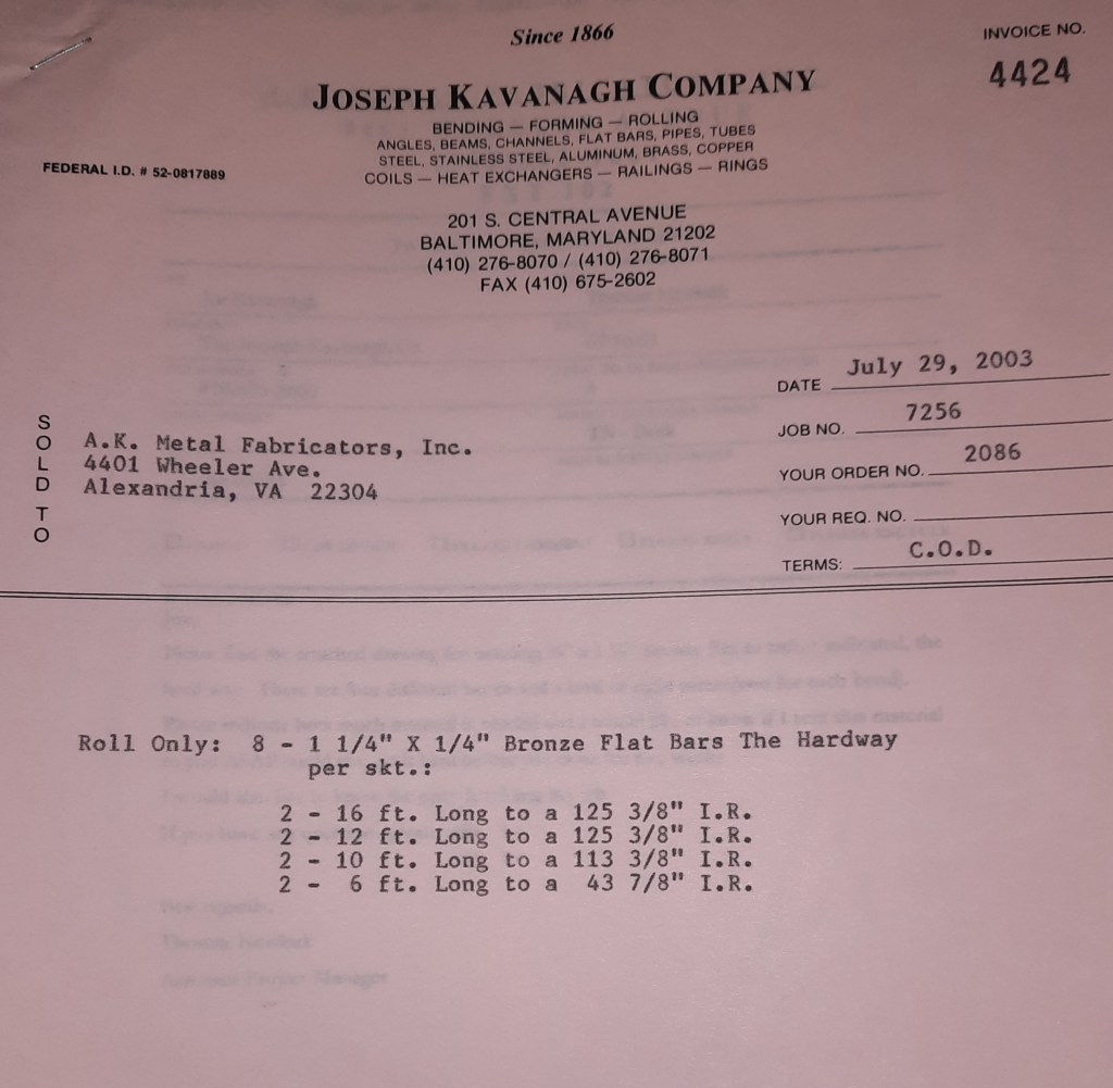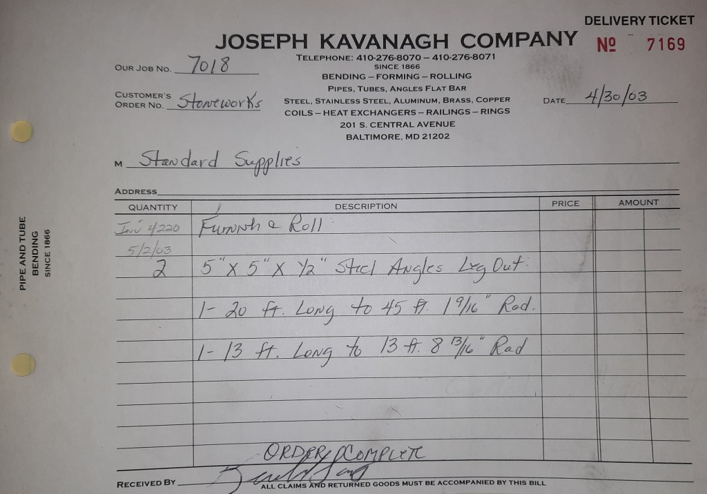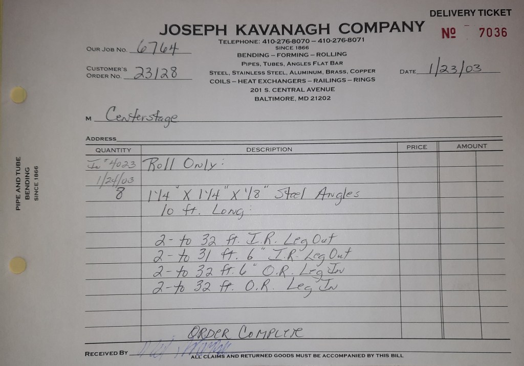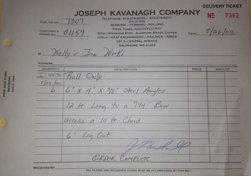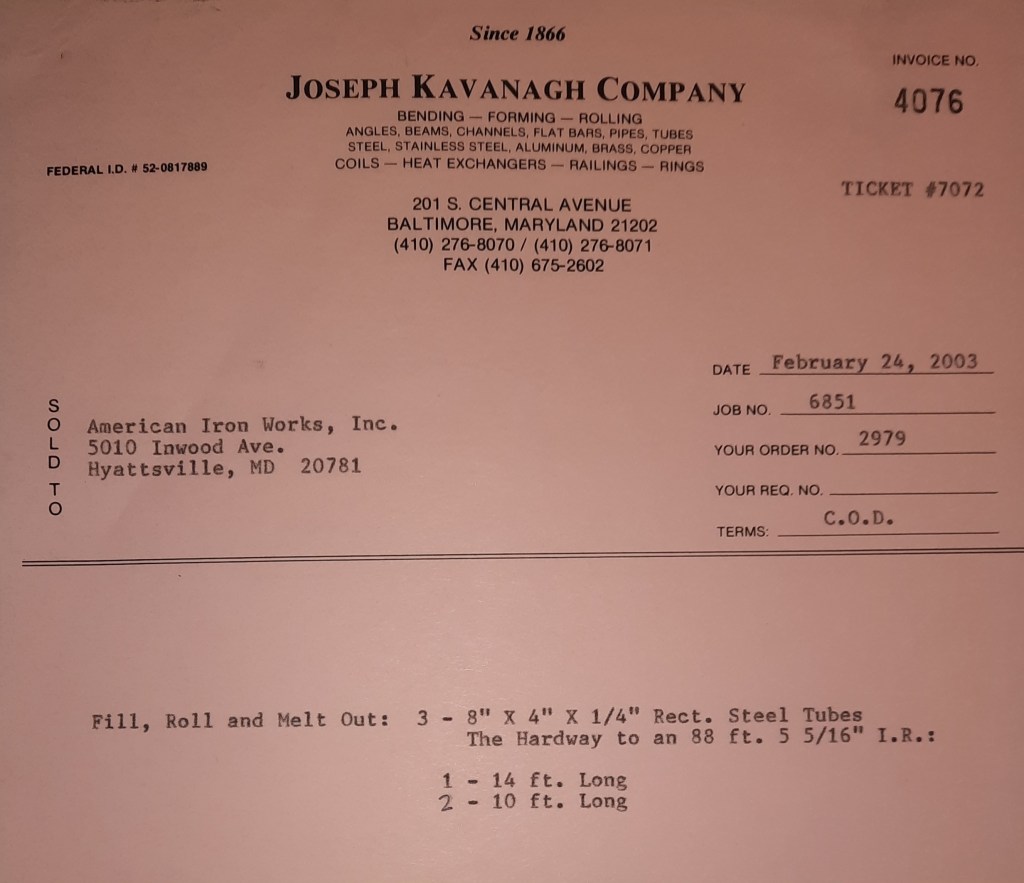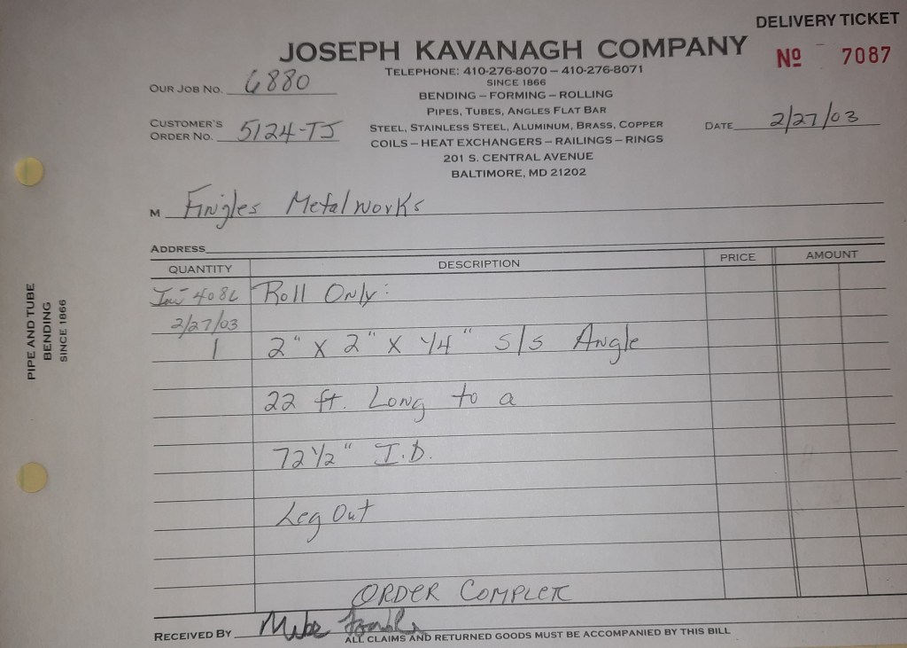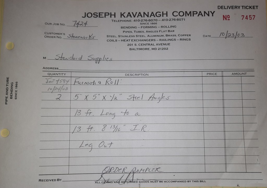 It’s a pleasant Spring day at the Shop and the crew remain busy. We finish another job for “Ladder 49” and two orders for Codd Fabricators. We also receive some surprising news about Codd. They are going out of business. The Kauffmans are selling the building and they will be closed before the end of the year. Ann, Jack and I are pretty shocked. Codd Fabricators has been a customer for a hundred years and one of our biggest for as long as I have worked here. It’s strange to think they are closing and we are considering moving. An odd coincidence that shows how much things are changing in our industry and in Baltimore.