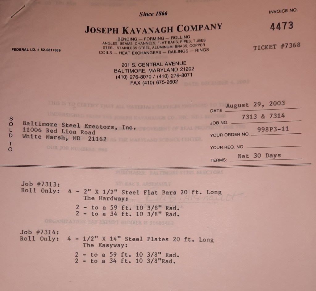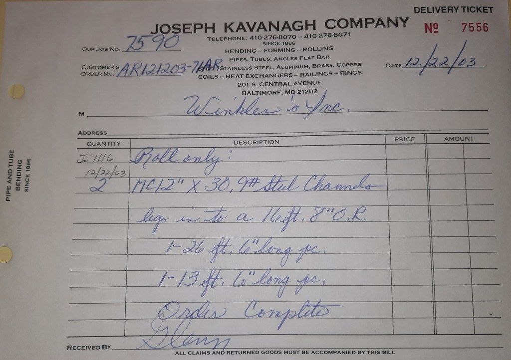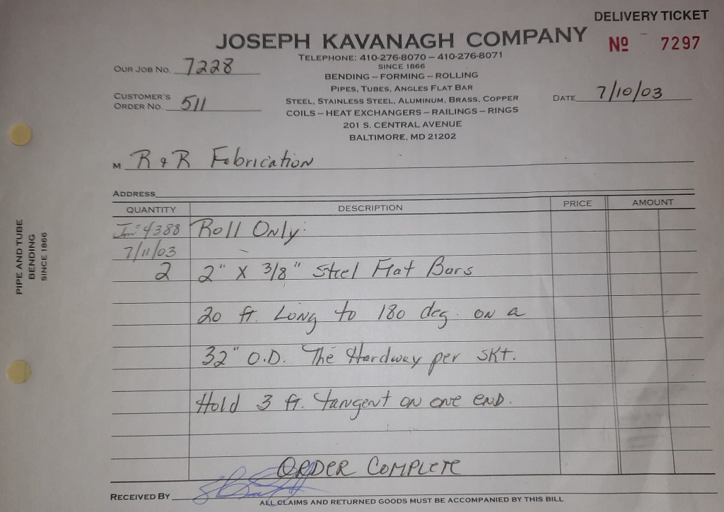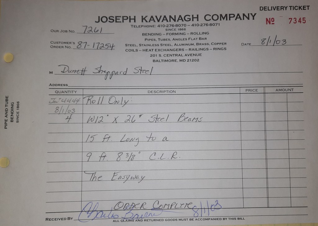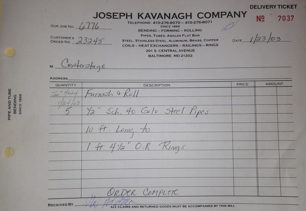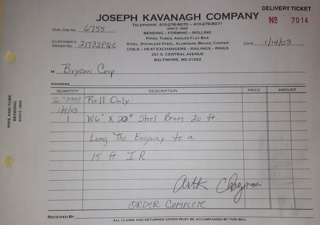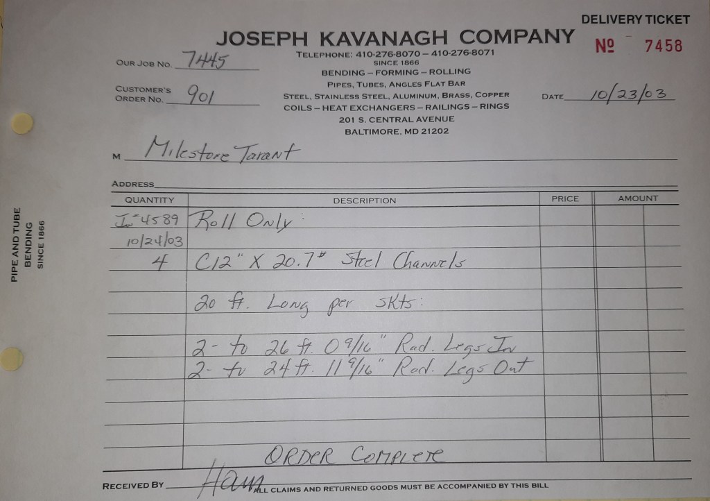 It’s a pleasant Spring day at the Shop and the crew remain busy. We finish another job for “Ladder 49” and two orders for Codd Fabricators. We also receive some surprising news about Codd. They are going out of business. The Kauffmans are selling the building and they will be closed before the end of the year. Ann, Jack and I are pretty shocked. Codd Fabricators has been a customer for a hundred years and one of our biggest for as long as I have worked here. It’s strange to think they are closing and we are considering moving. An odd coincidence that shows how much things are changing in our industry and in Baltimore.