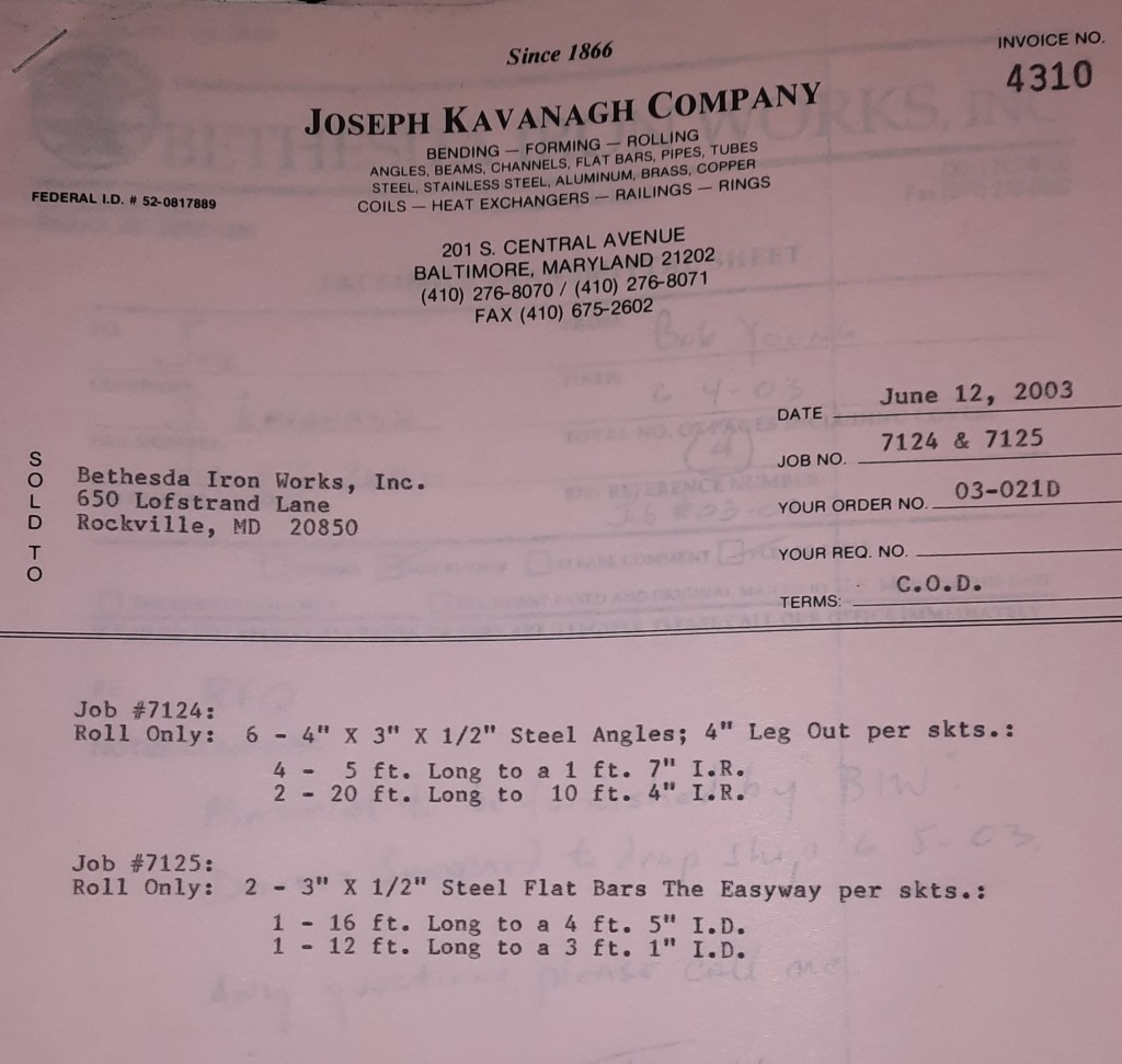 I’m up very late on this Friday night watching the Orioles play the Phillies. It takes 17 innings but the Birds lose. June has been a disaster for the team and they are 7 games under .500 now. The chances for a good season are dwindling. The Shop has had a better month with more work coming in than going out the door. We did quite a bit of structural work this week for our customers and one ornamental job for a new customer, Art Display. They are a company that makes displays for museums and events. We have a few customers in this field and hopefully, we’ll get more from these folks.
