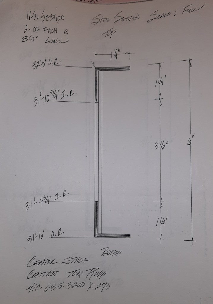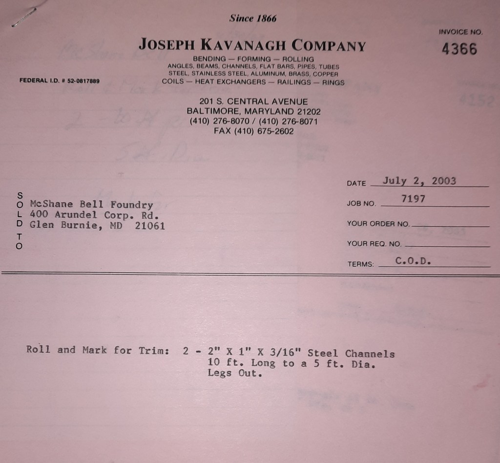 It’s a drizzly Wednesday afternoon in Baltimore. Ann and Jack checked out another potential building this morning and this one was an absolute no. It was located on O’Donnell Street and was in great disrepair. The roof leaked and there seemed to be water issues. We shall keep looking but it’s getting frustrating. After tomorrow, we have the four day Independence Day holiday and I look forward to the time off. We did have a nice visit with Larry Shindledecker from Colonial Iron Works today right after lunch. Larry is a fire fighter/welder. When not at the fire station, he makes railings and such for his customers. He’s a good guy and my brother, sister and I liked him from the start. We’ve done a job or two for a couple of years for him. The crew are working on some angle rings for Smitty’s Welding and a channel ring for McShane Bell. McShane is one of our older customers and the channels we roll are used to suspend bells for churches and such.