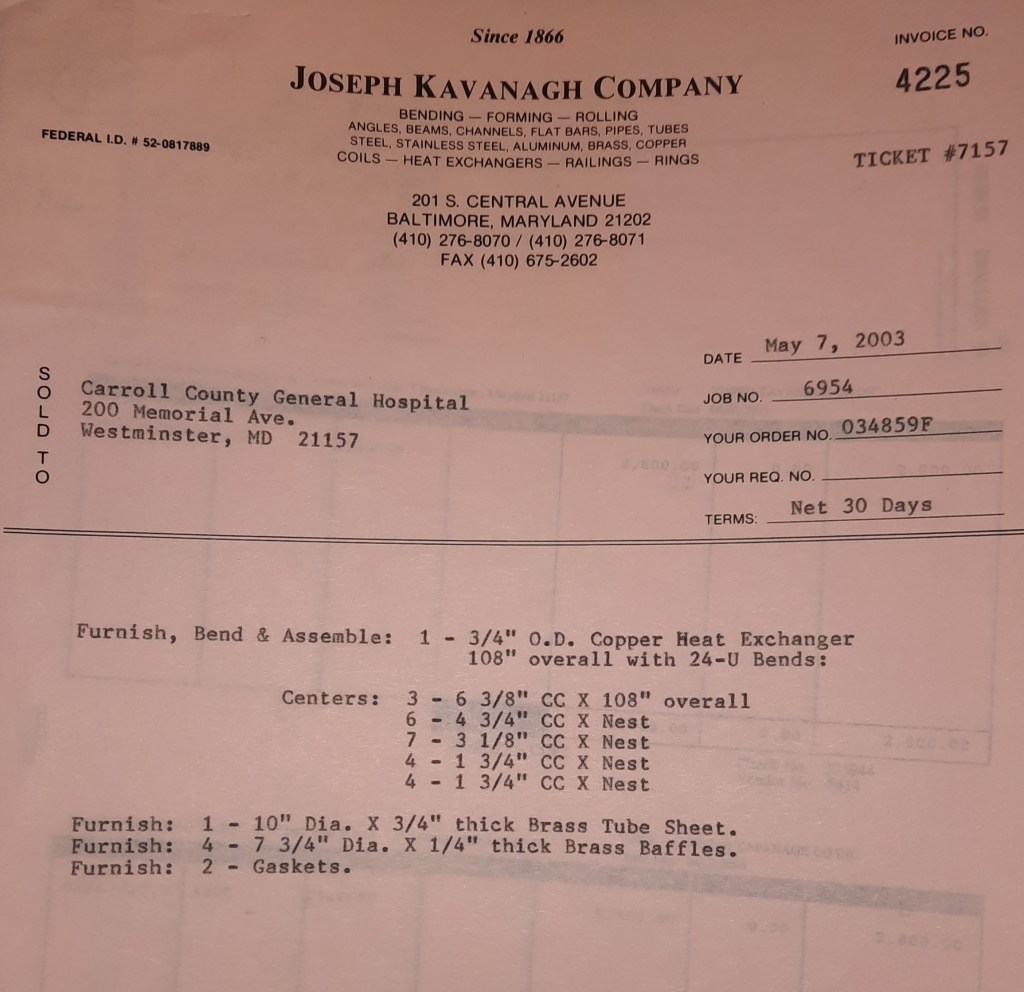 It’s hump day at the Shop and we are making some more playground parts as well as finishing a heat exchanger for Carroll County General Hospital. A heat exchanger means copper tubes which means some torch work. It also reminds me of the old days as we do less and less exchangers every year. Modern heating technology has made them unnecessary. The older units still need to be repaired and serviced but those will eventually be replaced too. We also do some tube work for Codd and I’m still getting accustomed to the idea they will be gone in a few months.