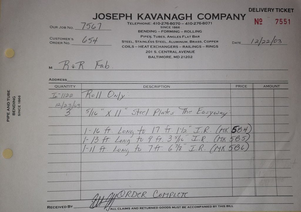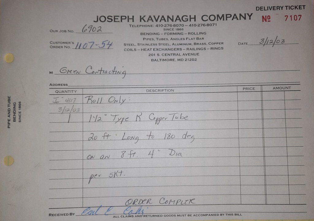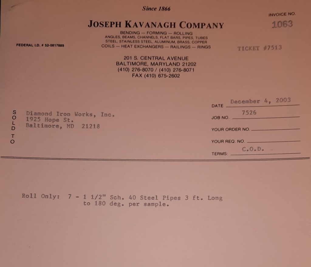It’s a dreary Monday to start the week at the Joseph Kavanagh Company with rain falling most of the day. The crew are busy with work for some of our regulars like Lenderking Metal Products and Anchor Fence. We also roll some pipes for Atlantic Welders which will be used for the University of Maryland Green House.