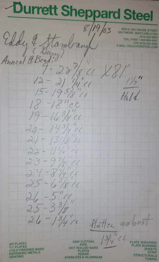 We are getting close to our vacation in August and the flow of work has stayed pretty high. This week it was more structural stuff but we also finished a set of 320 copper u-bends for Eddy and Stambaugh. They are making a big heat exchanger and that’s a lot of copper so it’s a good job for us. In addition to these jobs, we gather our scrap in hampers and take it to Landsman. Landsman is a couple doors down on Central and they buy all our scrap. It’s a good thing to get done with vacation coming on. It cleans the Shop out a bit.