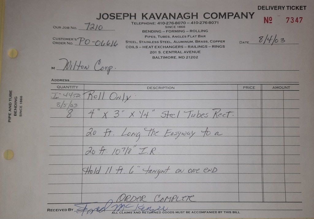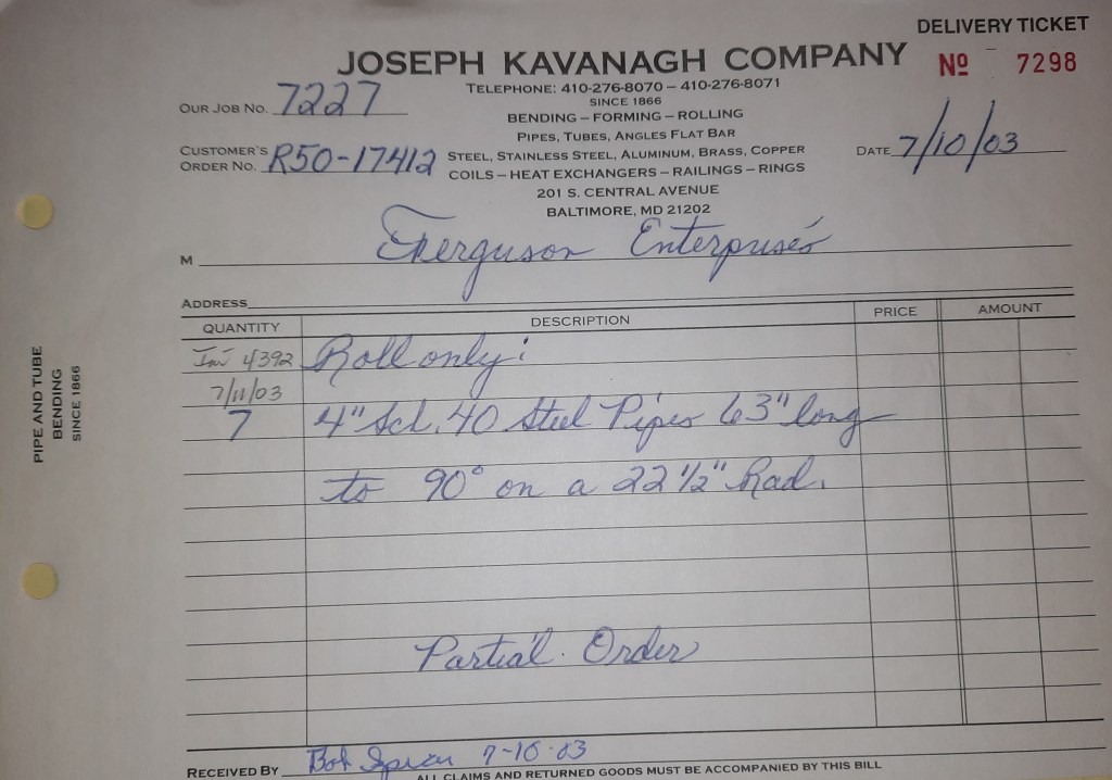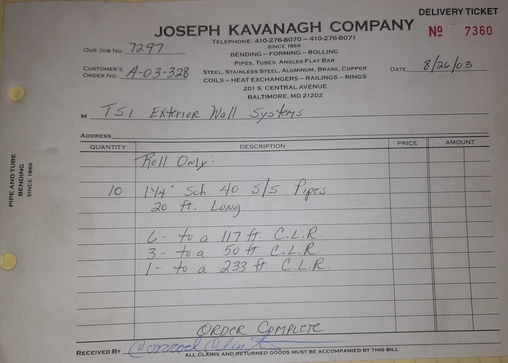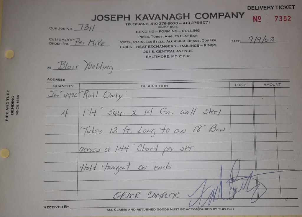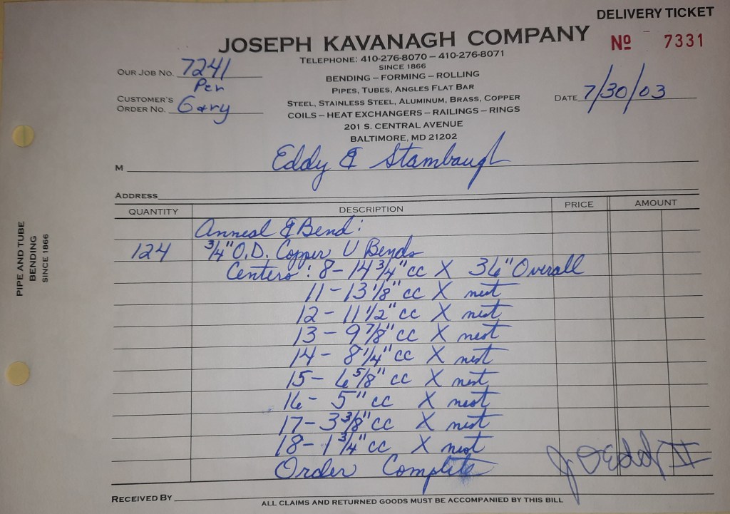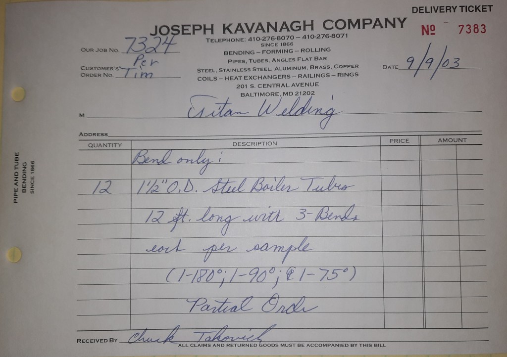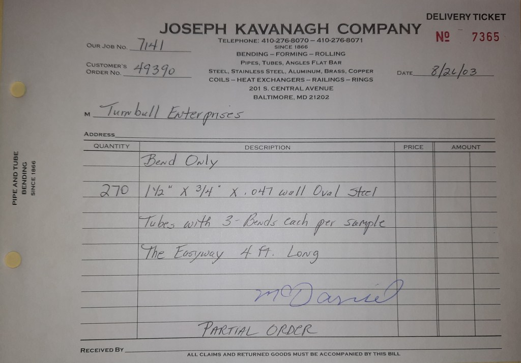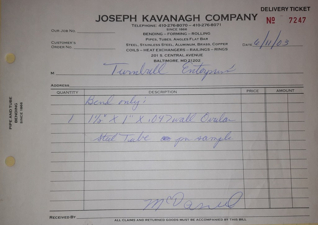 It’s a sunny day on Central Avenue and the summer has brought its typical uptick of work. The boys in the Shop are banging out a wide range of jobs mostly for our regulars. One of them, Turnbull Enterprises has some new samples for us to bend. They are ovular tubes and they furnish tools to bend them but I’m skeptical. Oval shapes have a lot of spots where marks or damage can appear in the bend. My brother Jack though takes it as a challenge. He works on them himself and surprisingly, they look good. Jack really knows his stuff and he handles any of the particularly challenging jobs. Turnbull picks them up and we’ll see what they say about them.